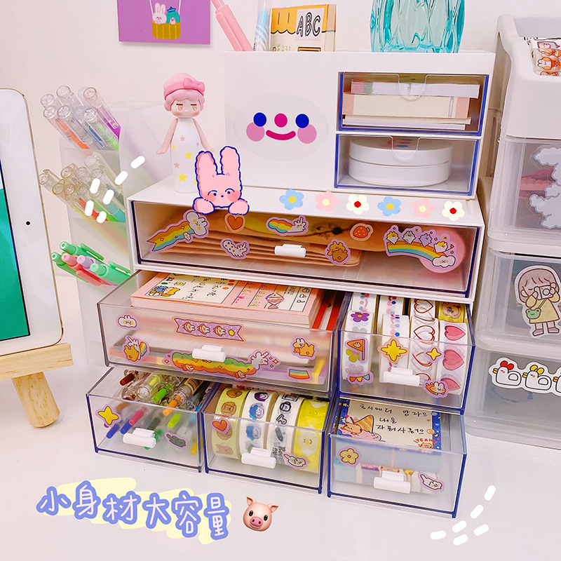 ins风新款抽屉式胶带收纳盒网红学生防尘桌面化妆品小盒子置物架
