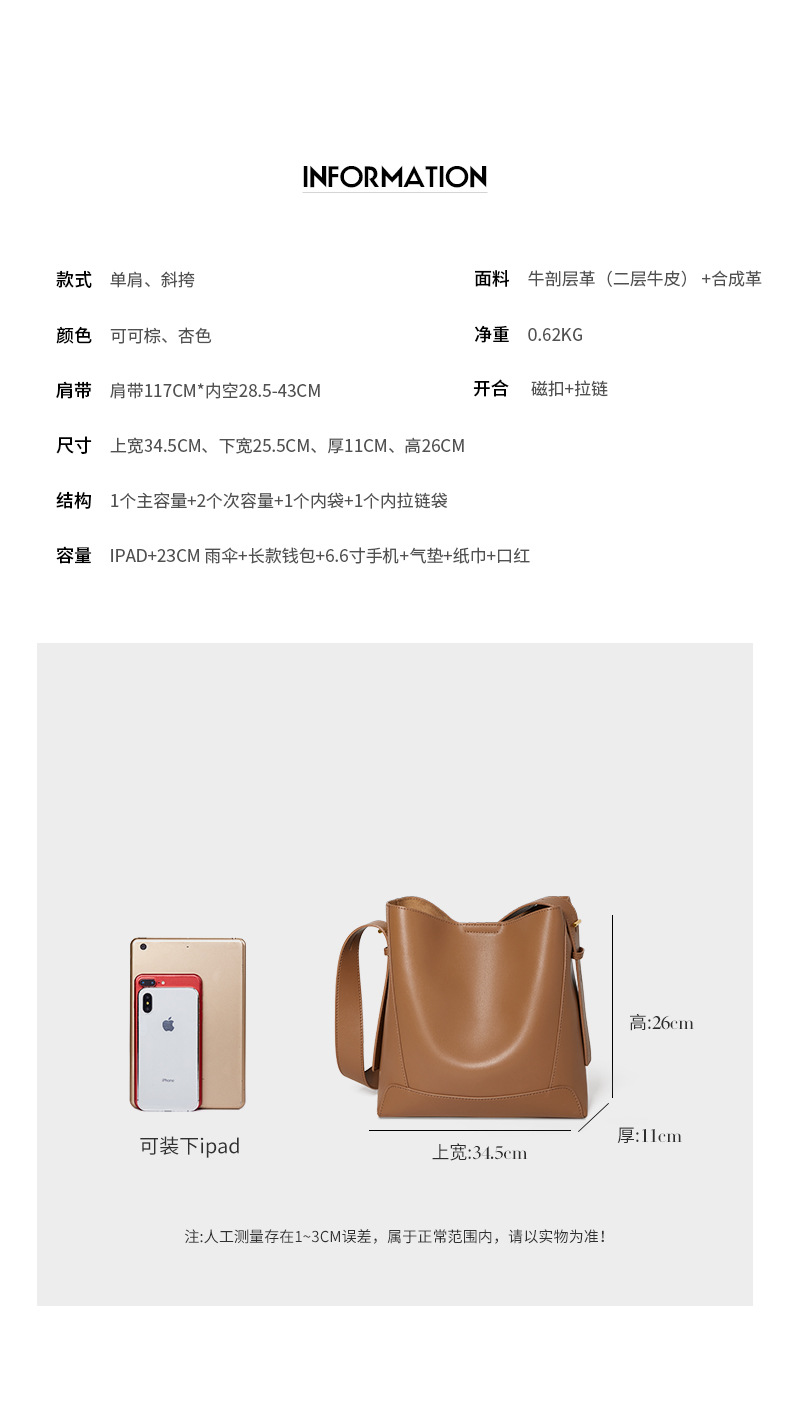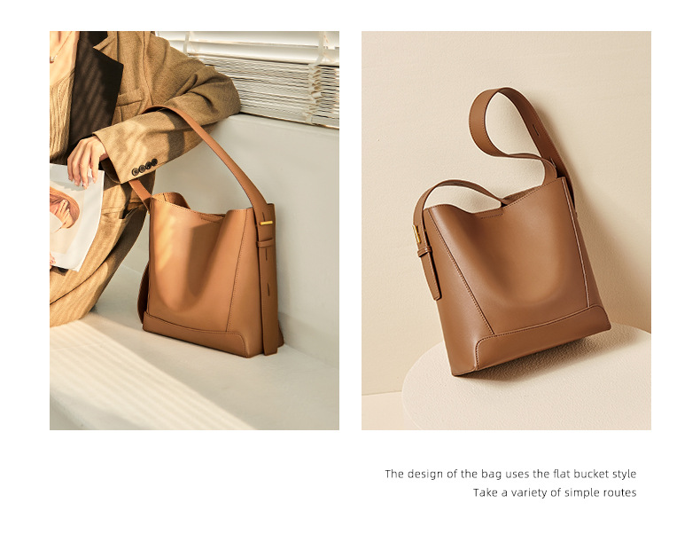 纳兰杜包包2024新款女包斜挎包百搭真皮单肩大容量通勤水桶包