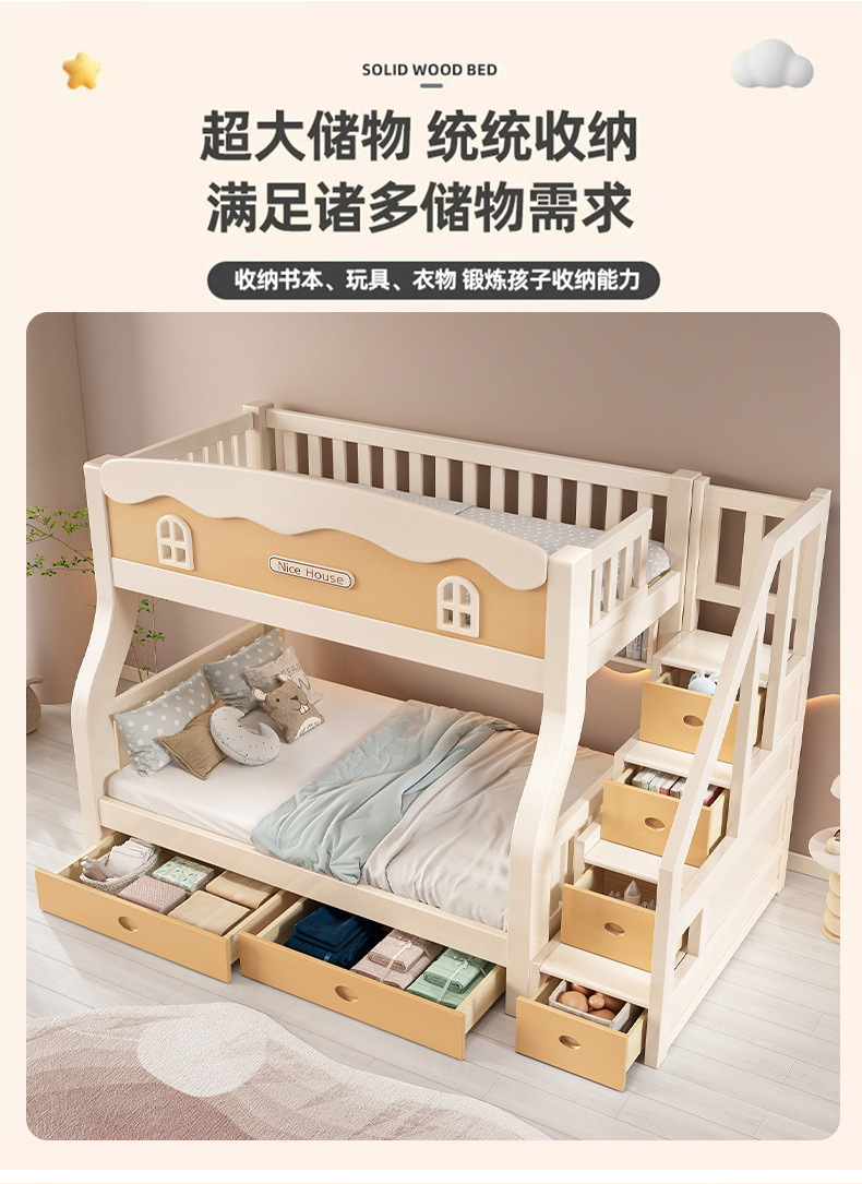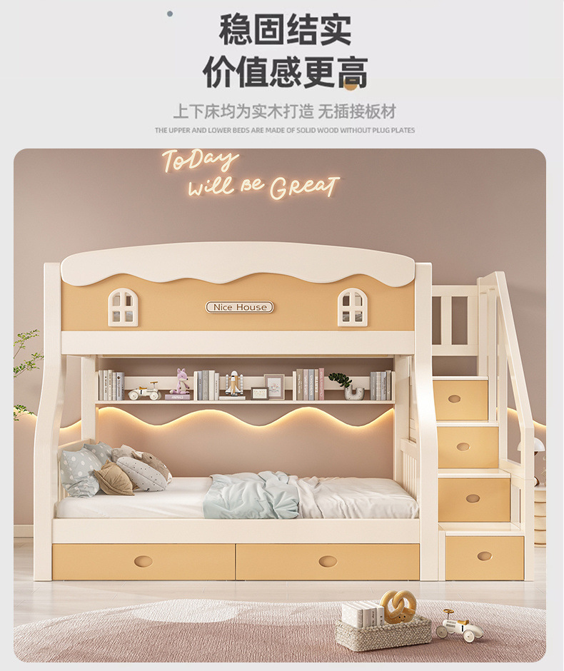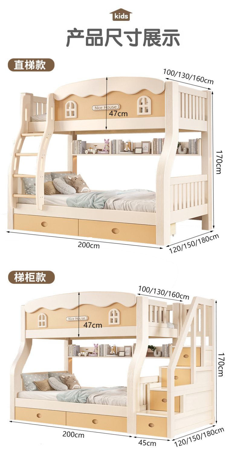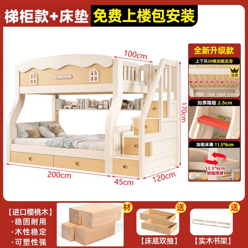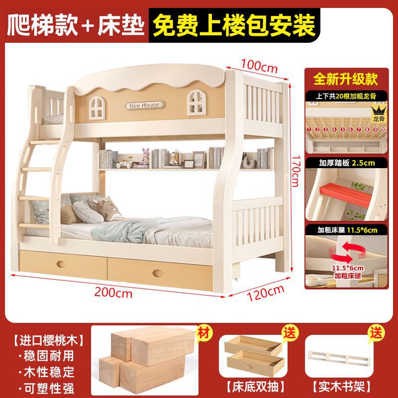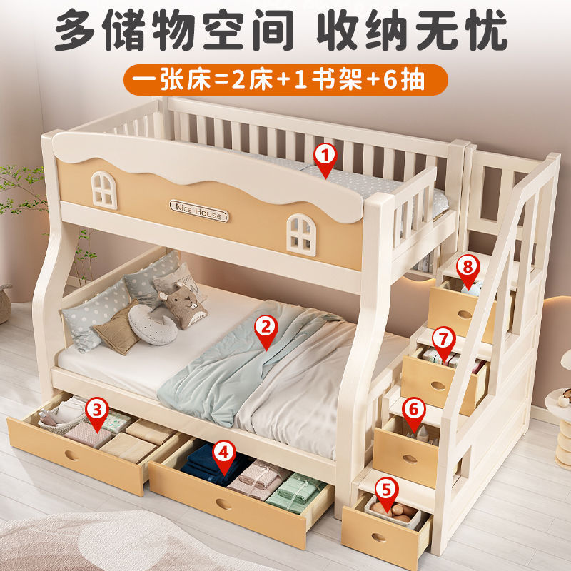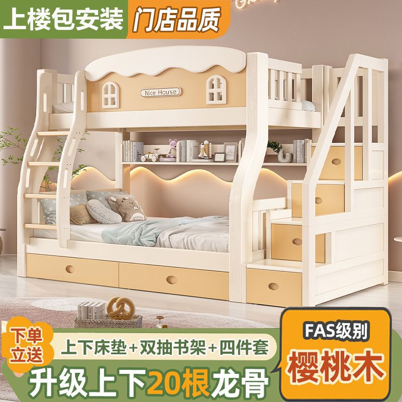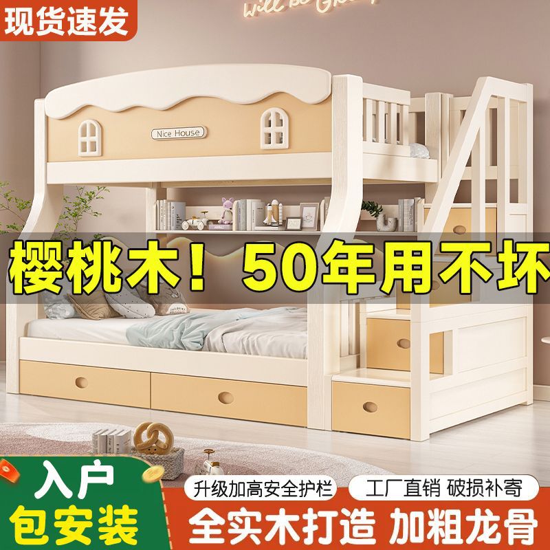 上下床双层床全实木高低床小户型大人两层子母床上下铺木床儿童床