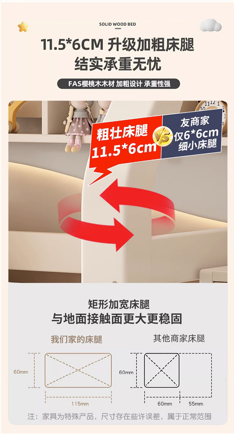 尺寸 上100下120送床垫*2,上130下150送床垫*2,上160下180送床垫*2,定制床架【樱桃木】