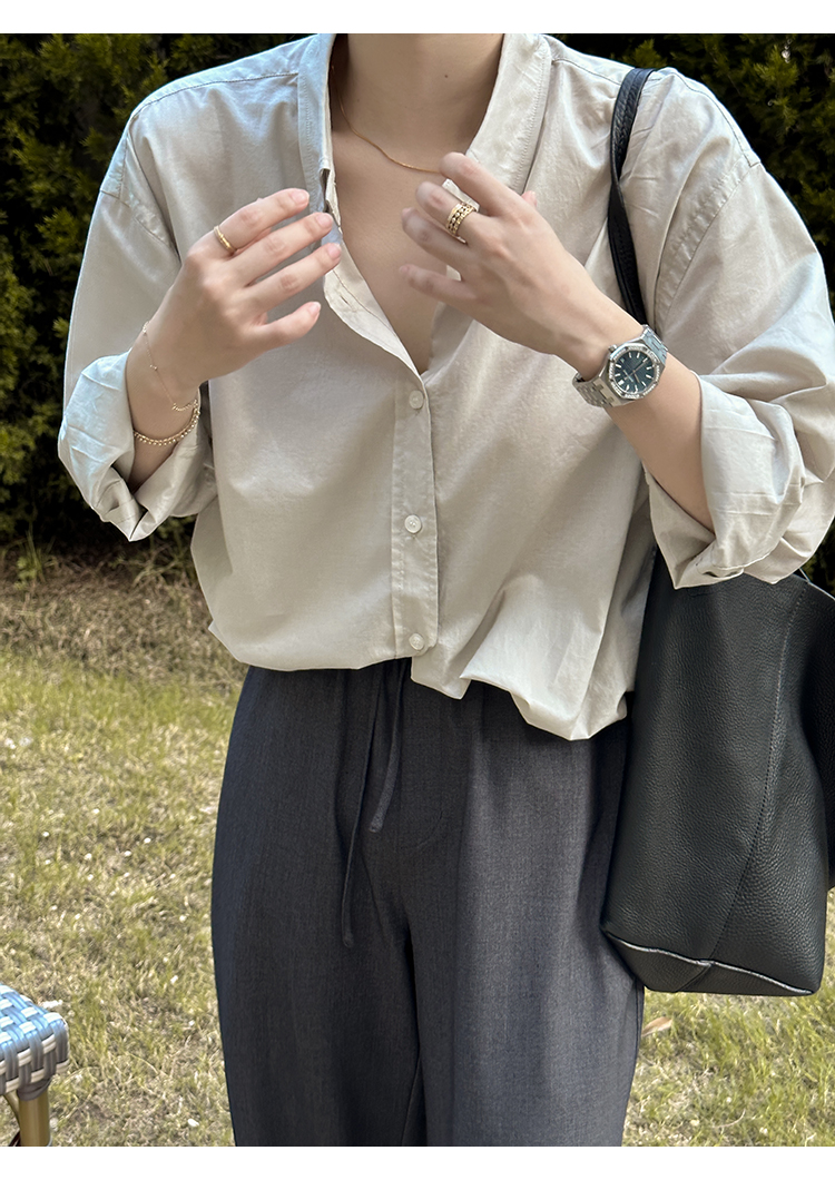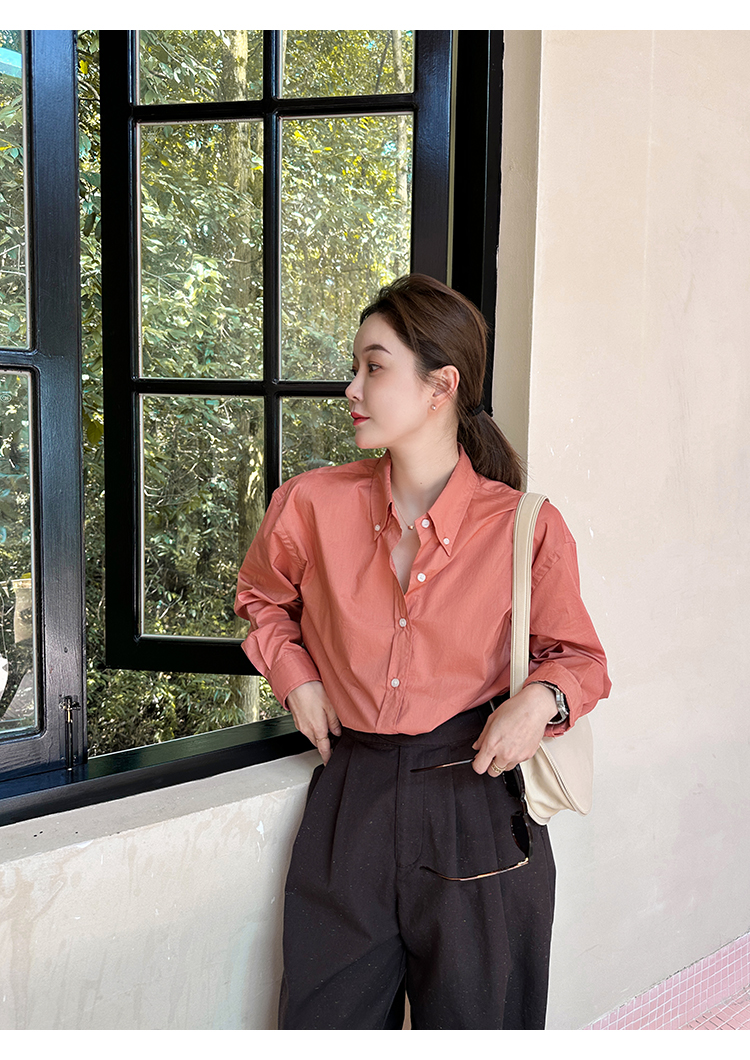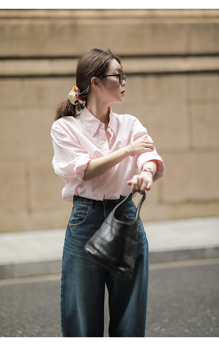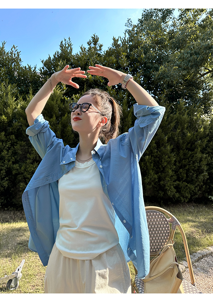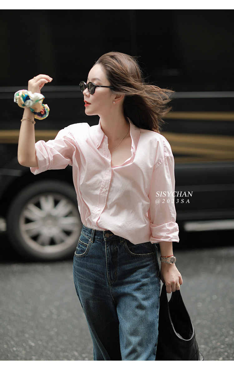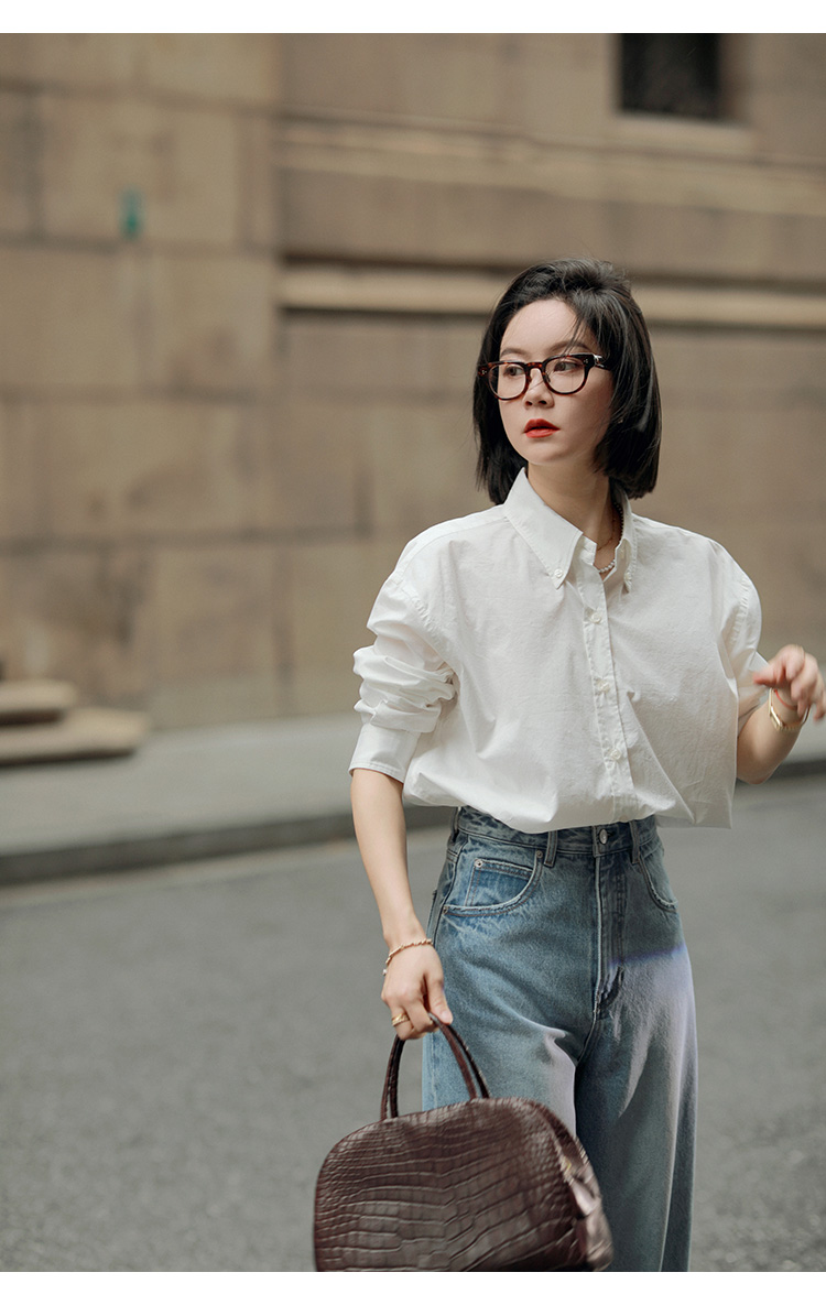 莉貝琳sisy【人生襯衫】60S精梳棉白色襯衣女長袖寬鬆翻領上衣秋