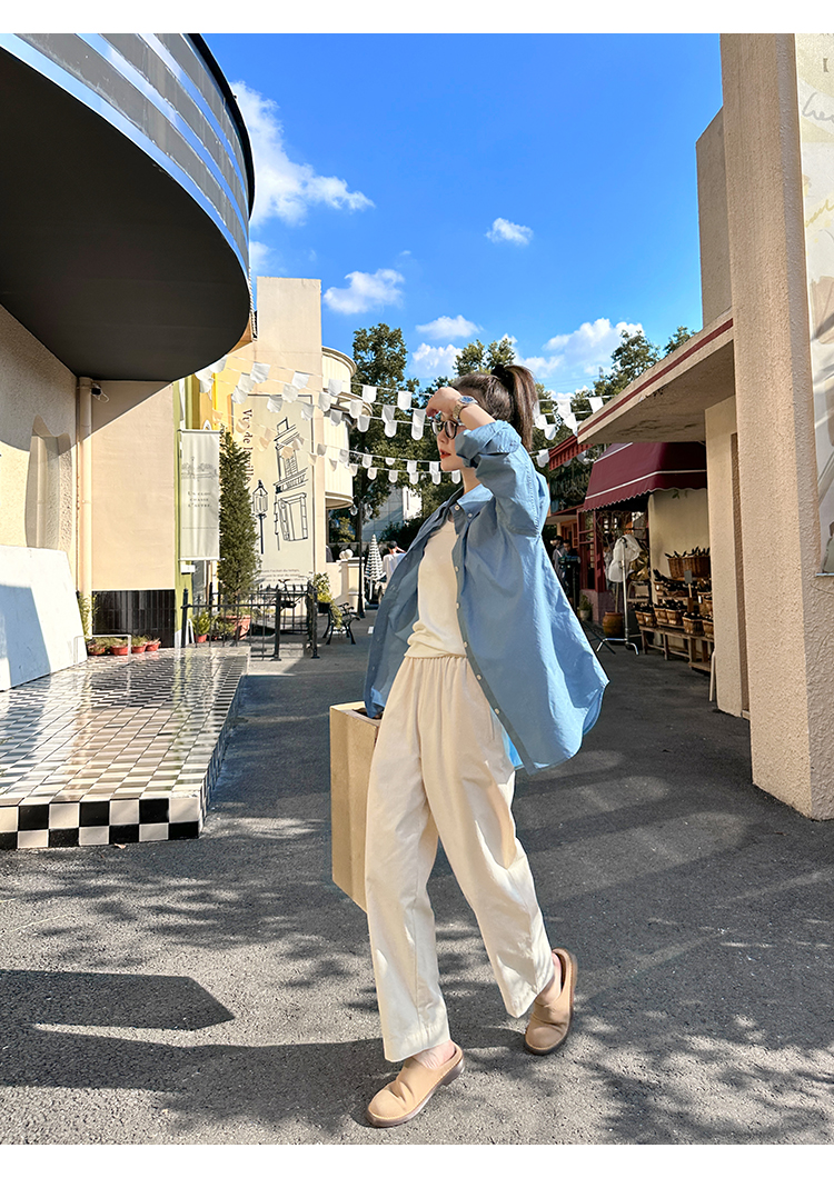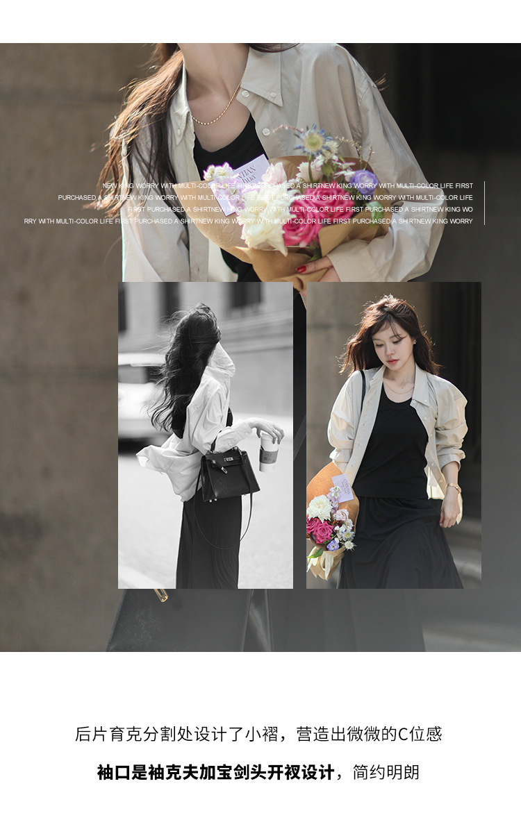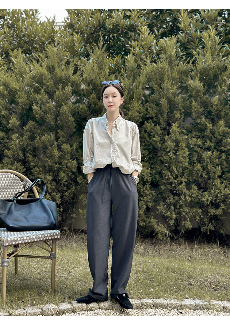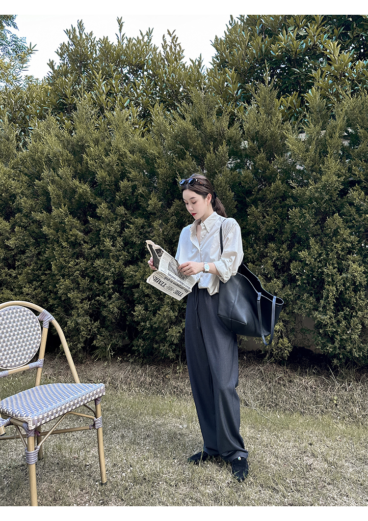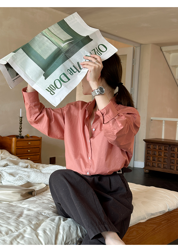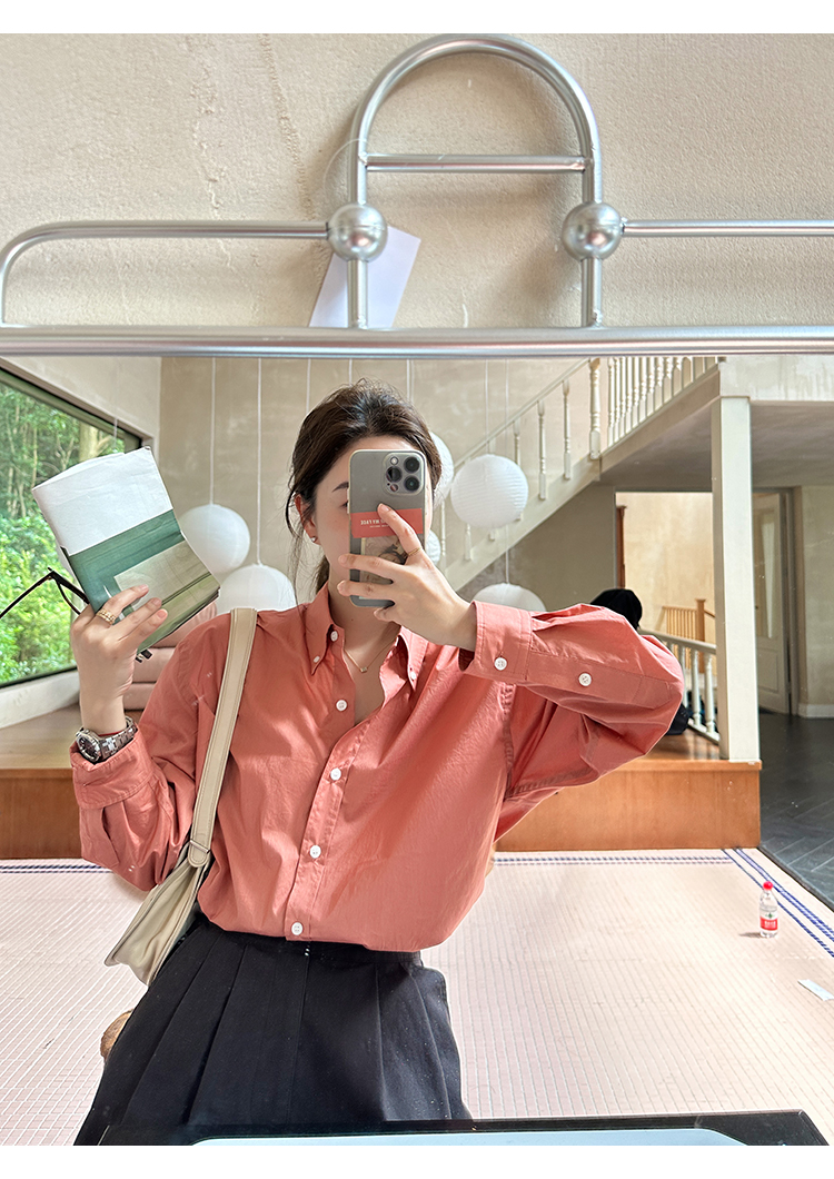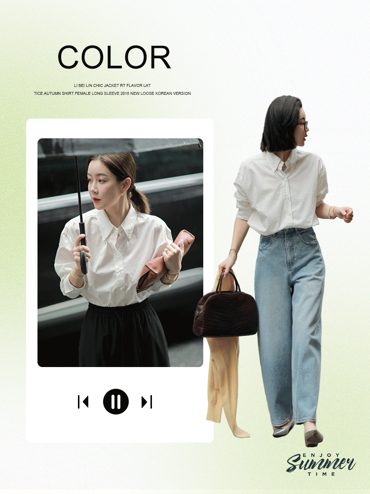莉貝琳sisy【人生襯衫】60S精梳棉白色襯衣女長袖寬鬆翻領上衣秋