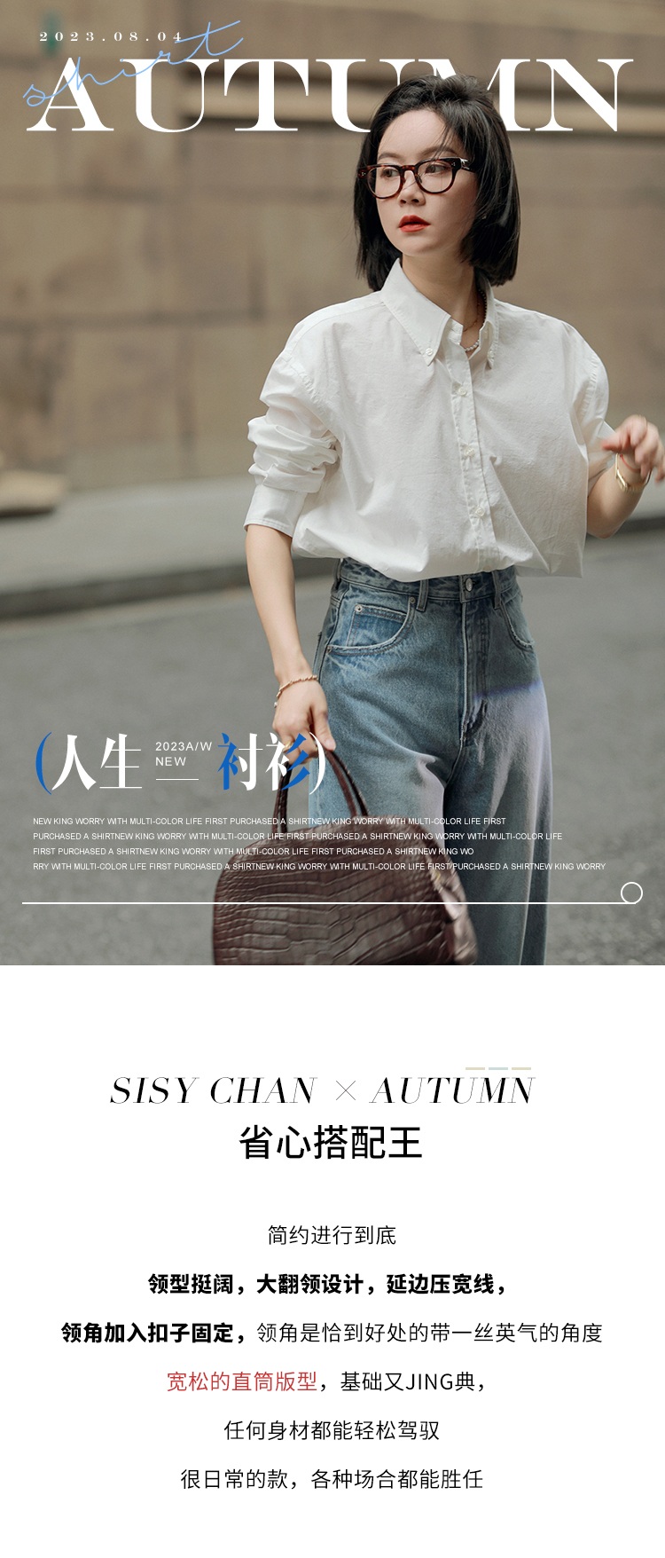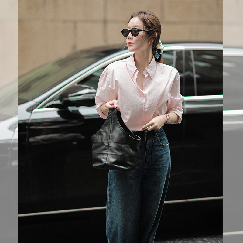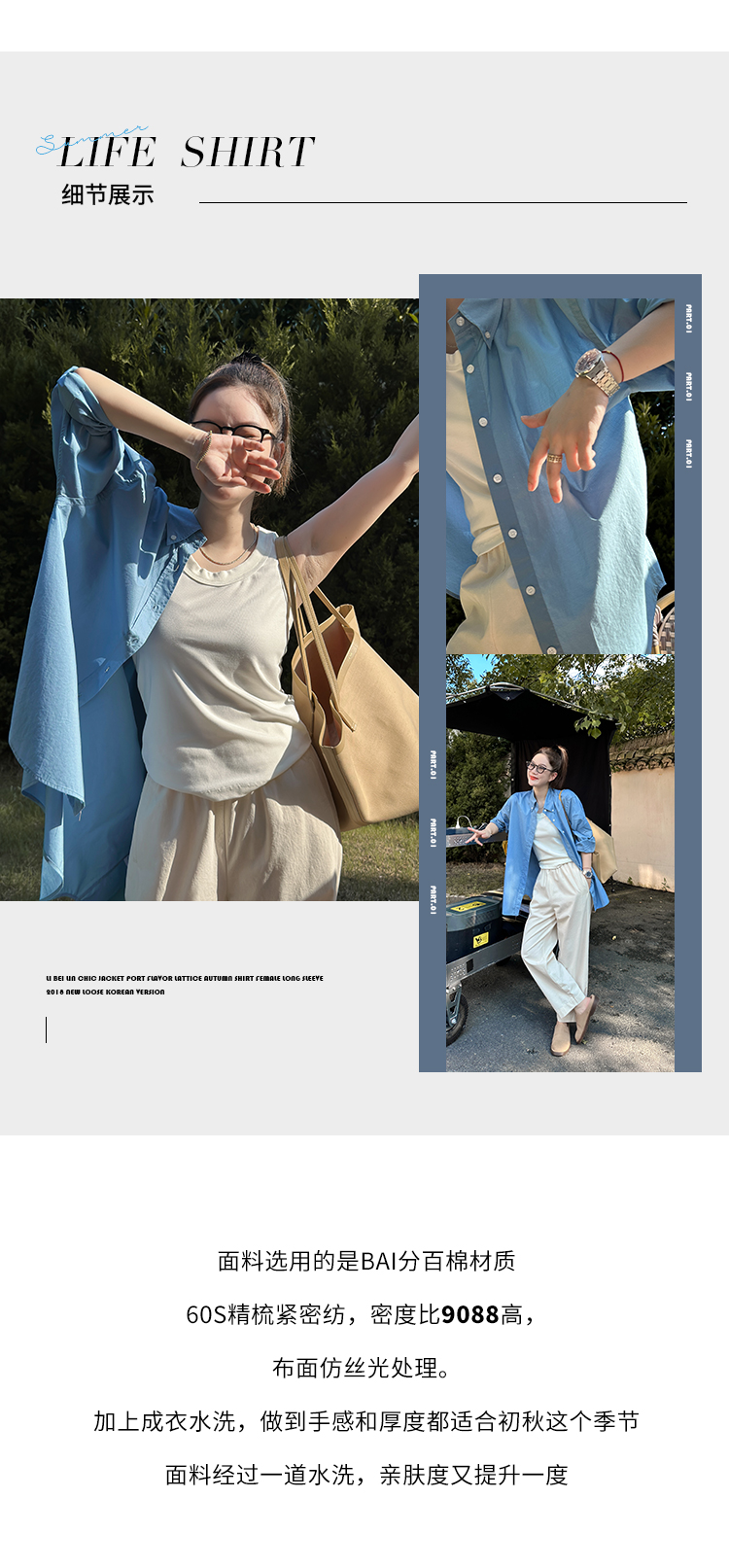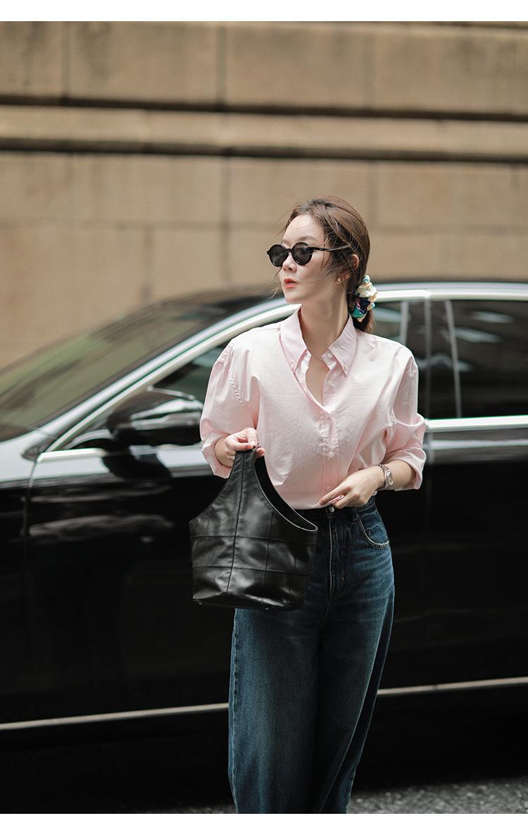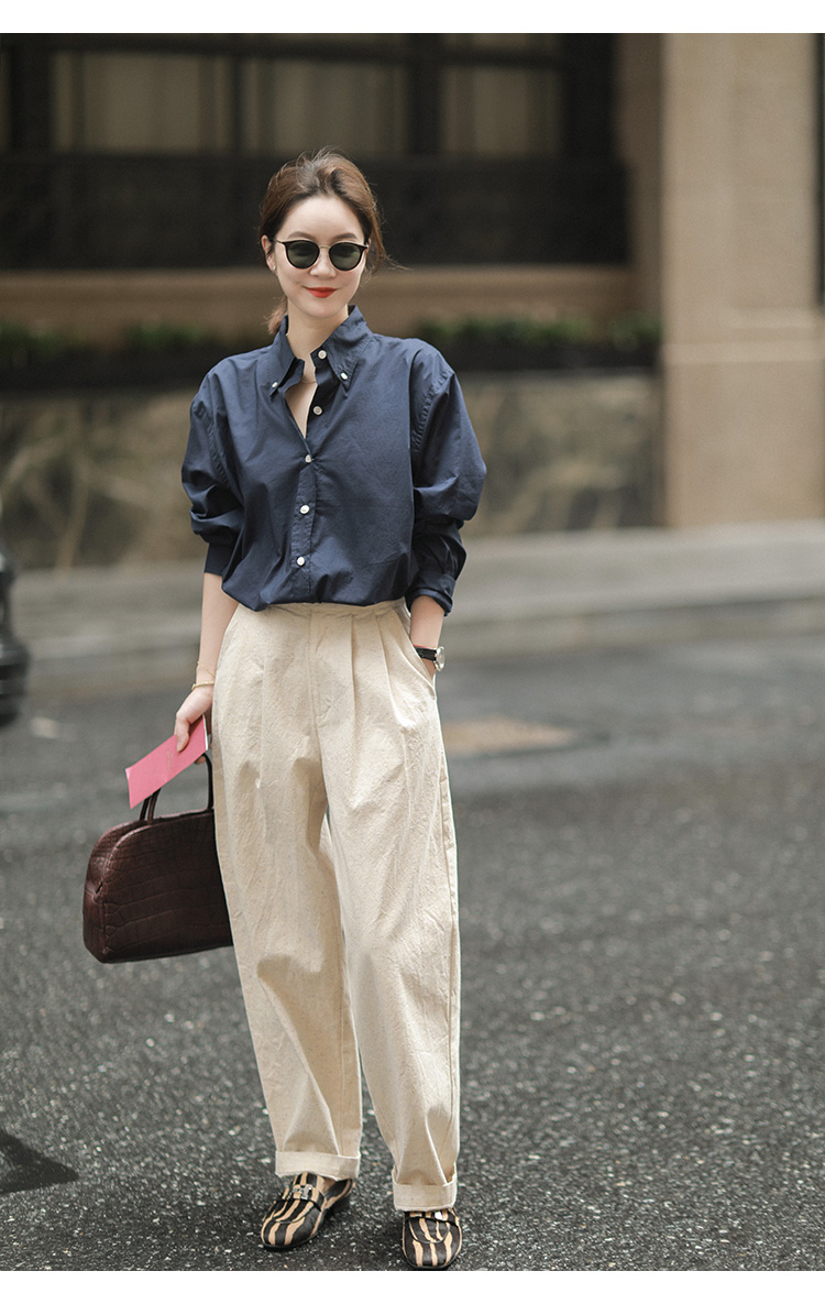 莉貝琳sisy【人生襯衫】60S精梳棉白色襯衣女長袖寬鬆翻領上衣秋