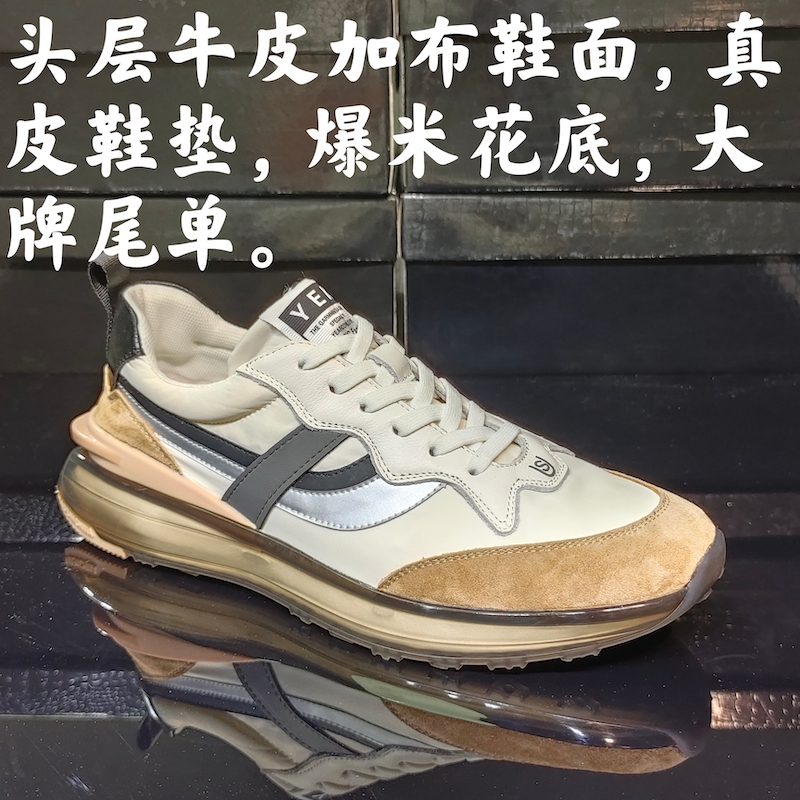稀缺外貿尾單品牌撤櫃剪標男鞋爆米花真皮運動鞋透氣休閒百搭潮鞋