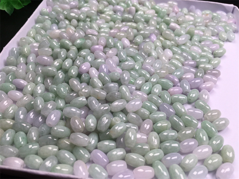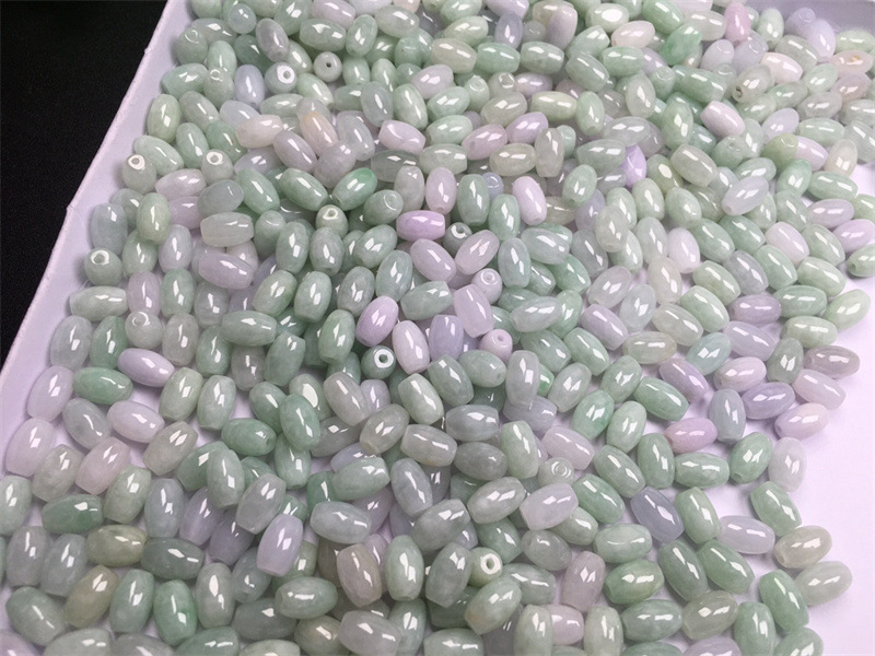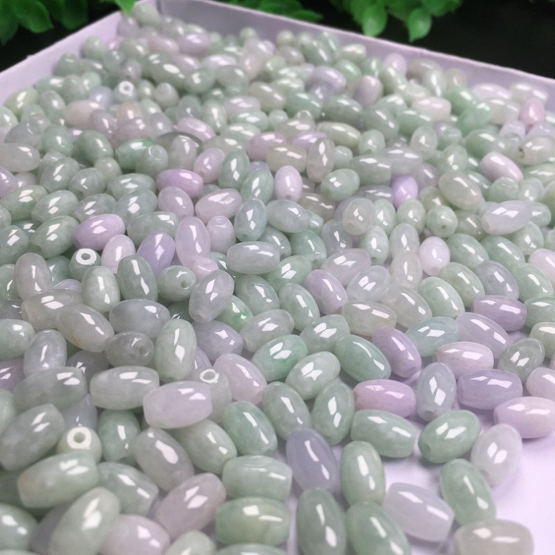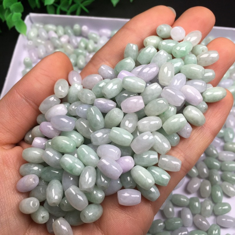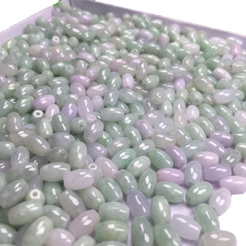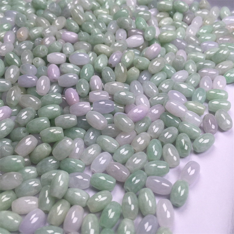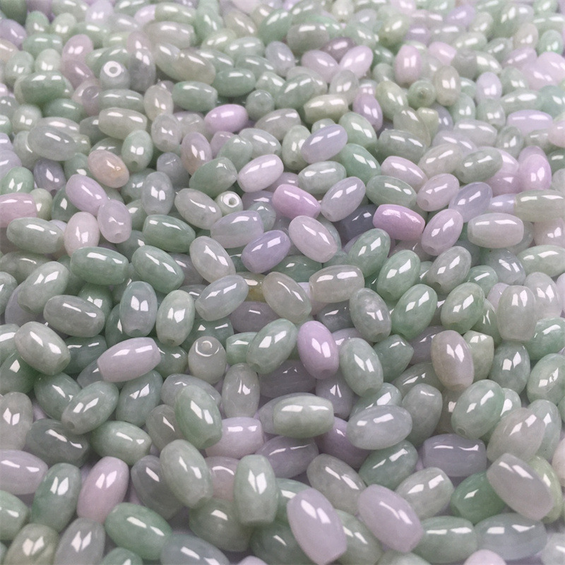 缅甸翡翠a货散珠糯冰种豆绿6x9mm长珠 玉珠子diy编织配珠配件批发