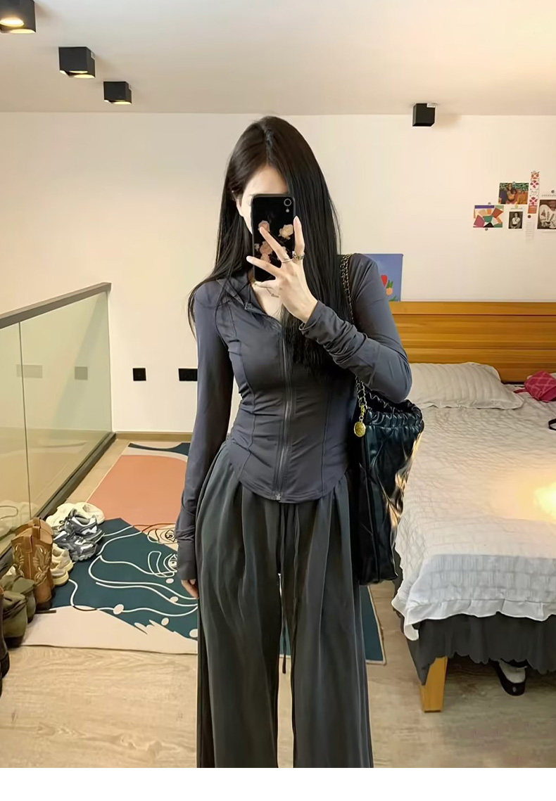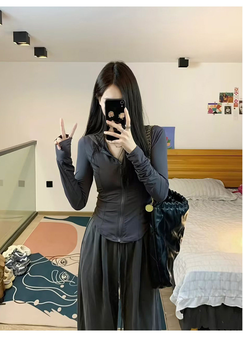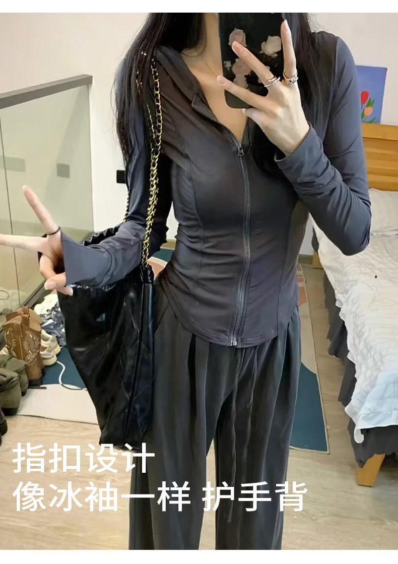 黑色修身緊身防曬衣女款夏季2023新款套裝冰絲外套女孩瑜伽服上衣