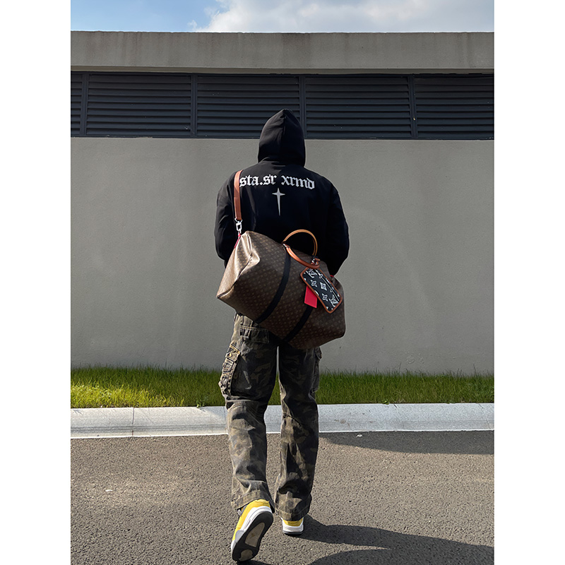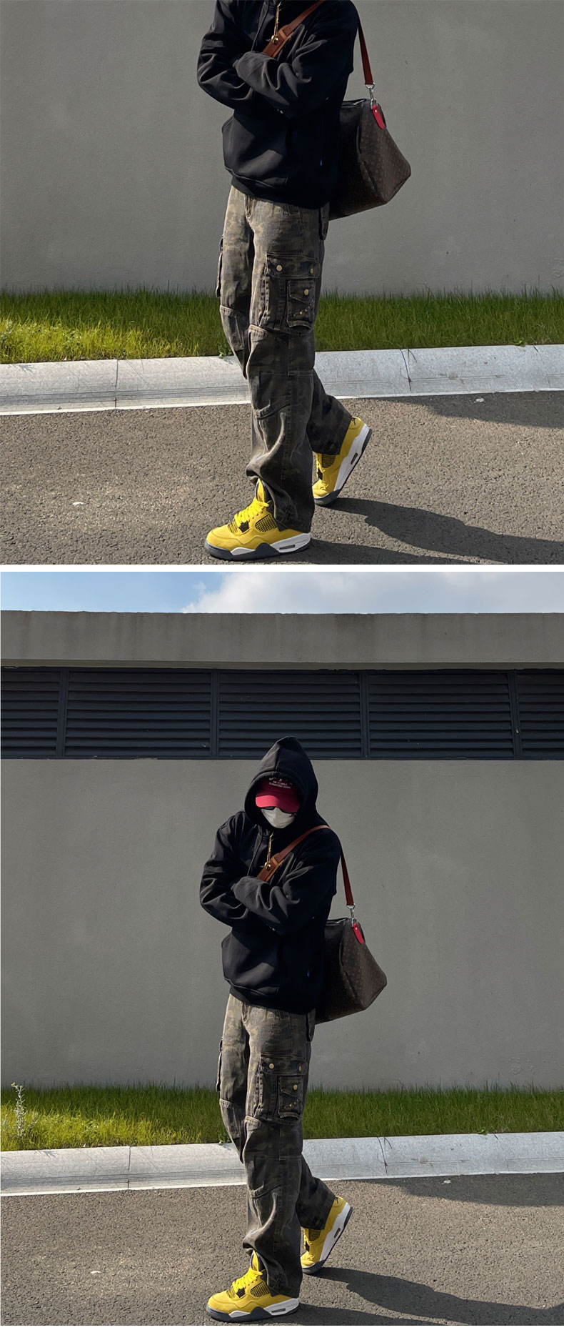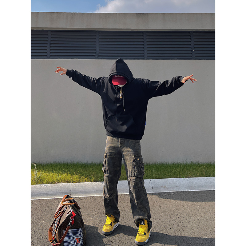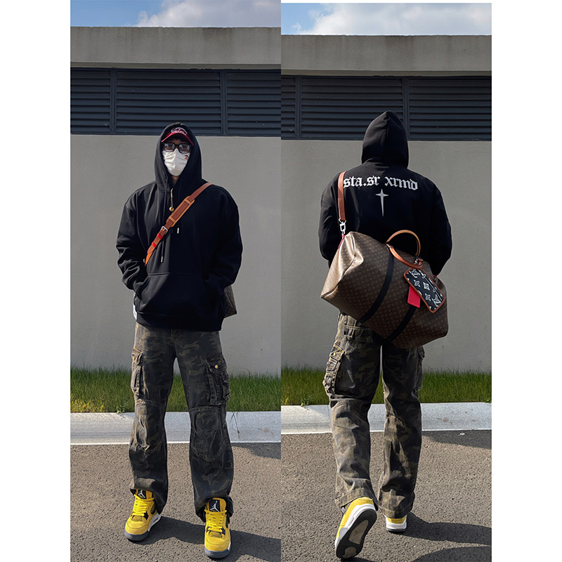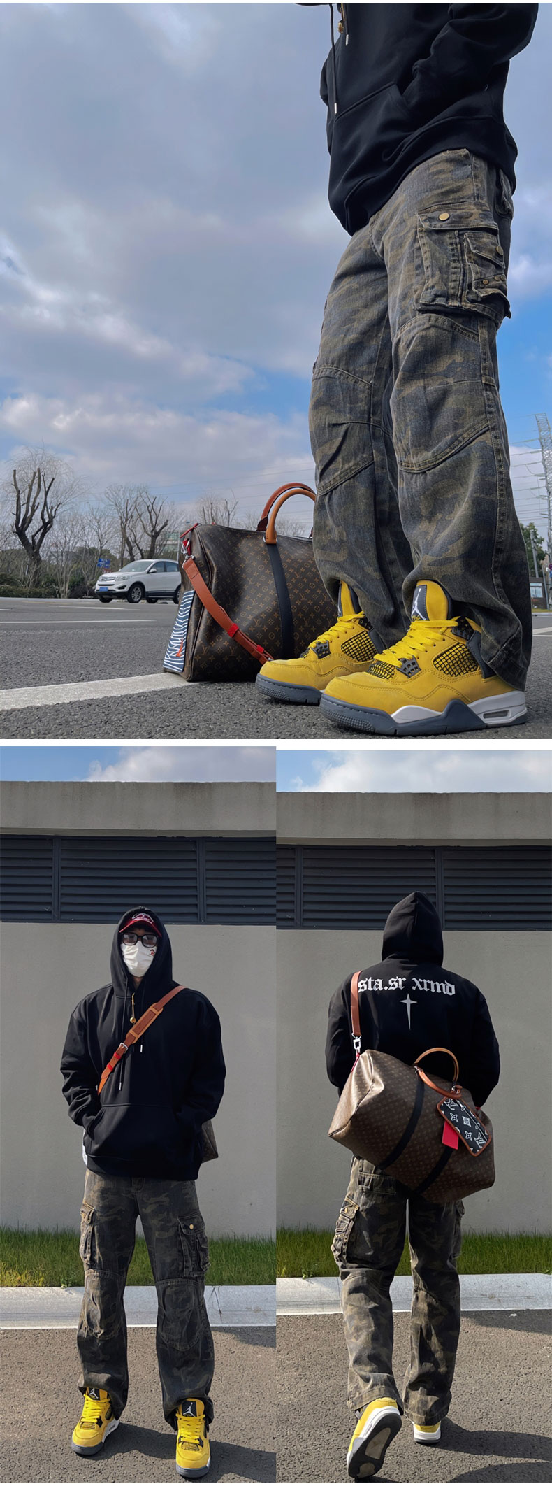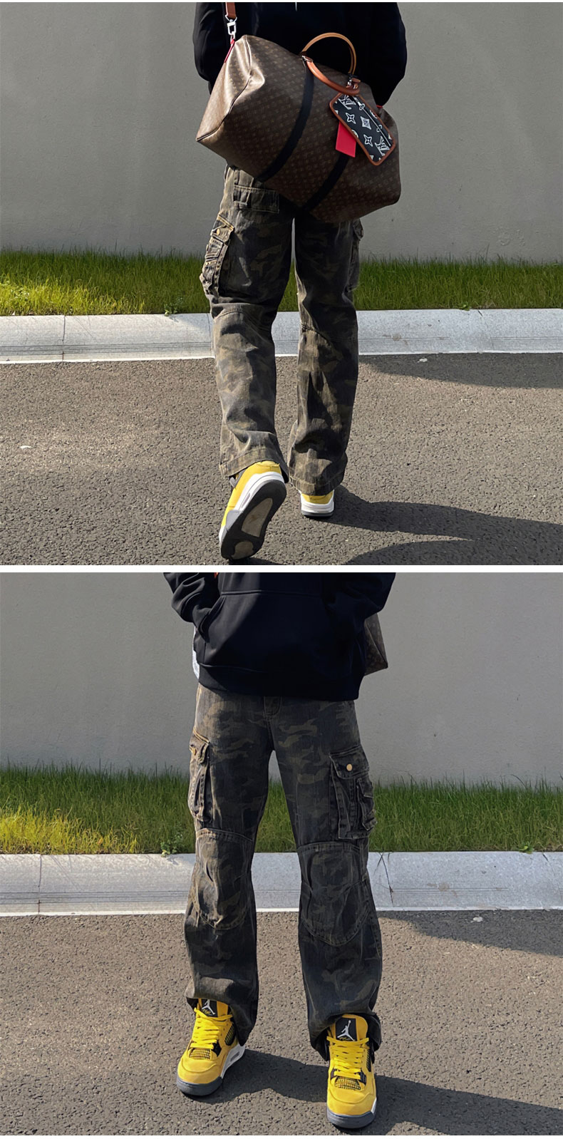 美式復古褲子vibe高街潮牌迷彩多口袋工裝褲hiphop寬鬆直筒牛仔褲