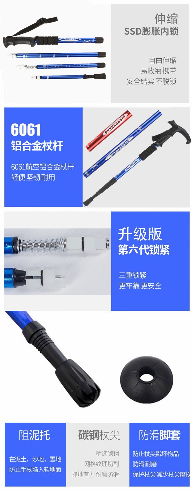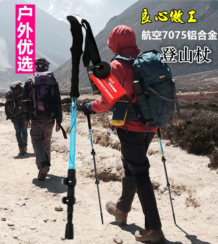 超輕鋁合金登山杖伸縮外鎖行山杆徒步爬山手杖非碳素戶外防滑柺杖