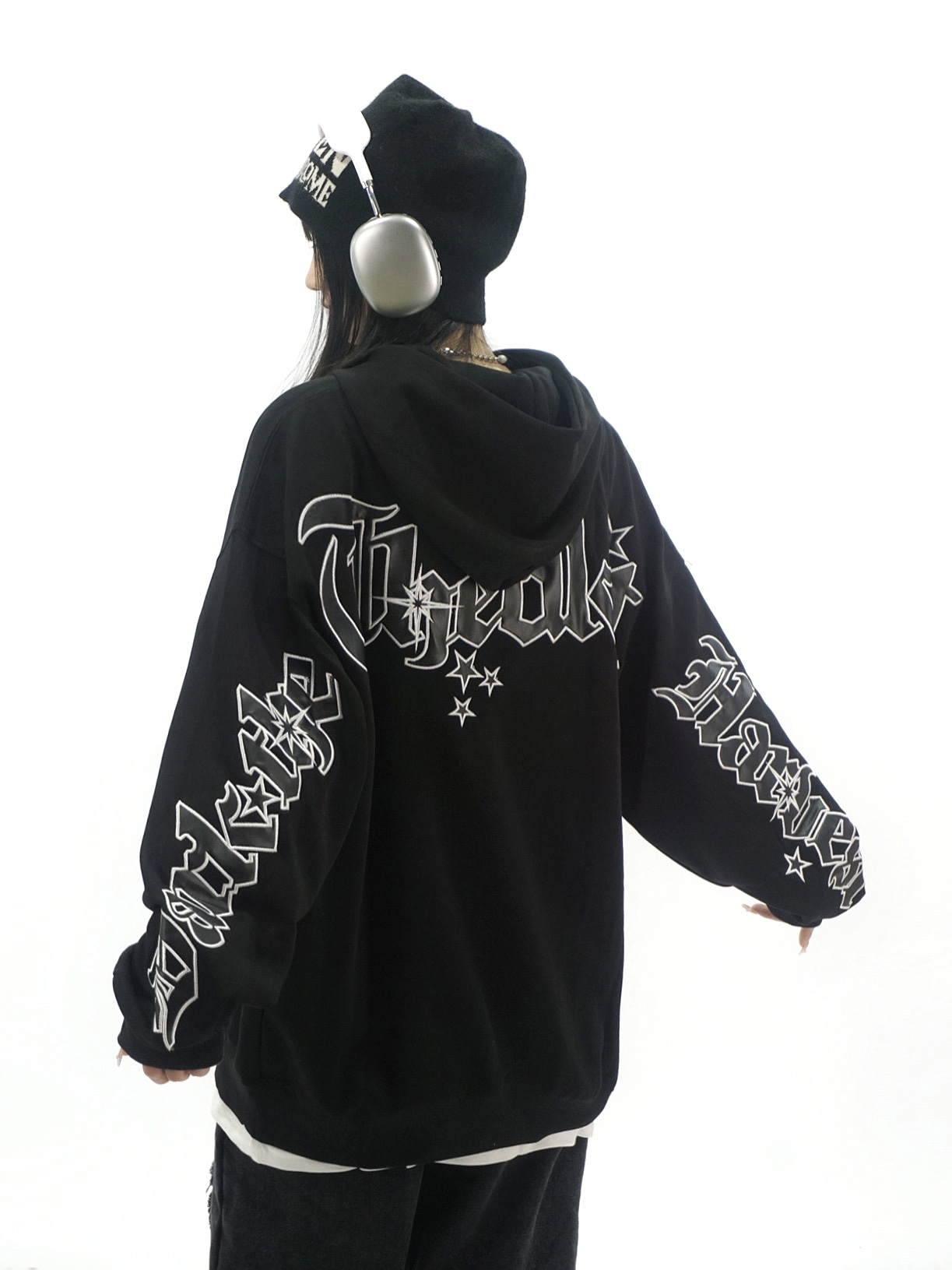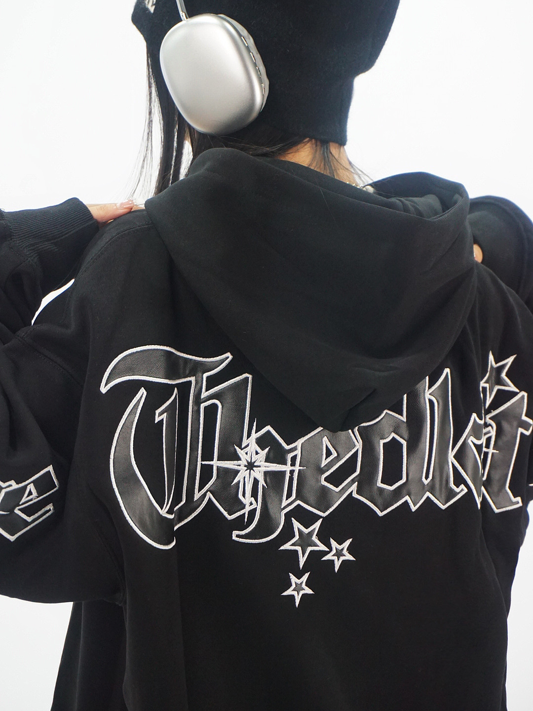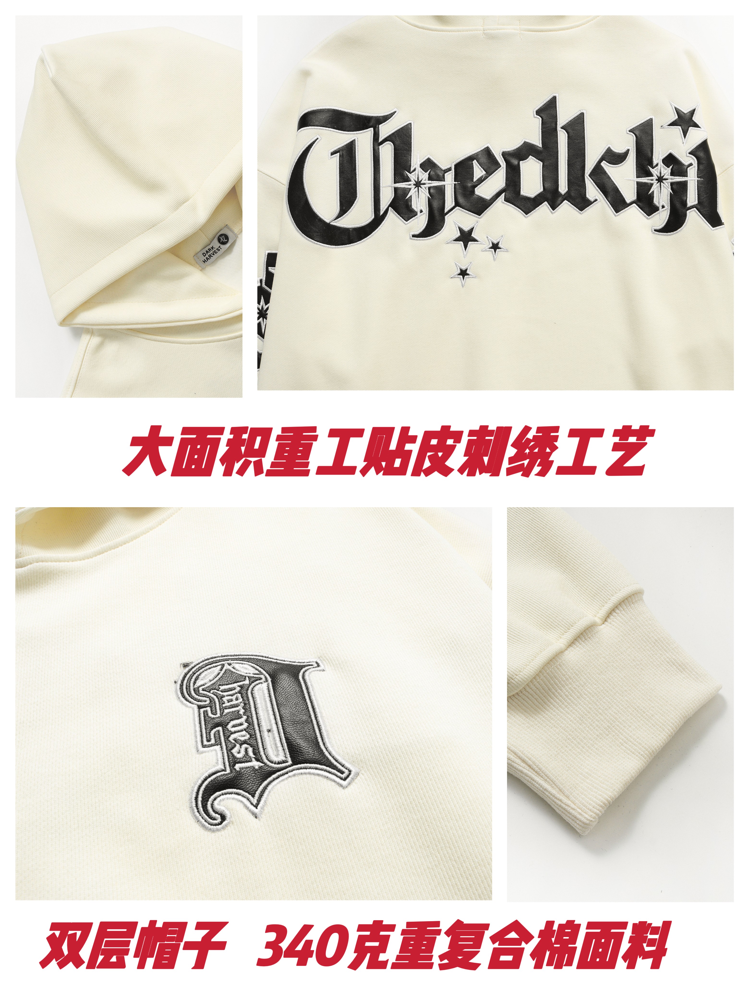 Amoeba美式復古重工刺繡連帽運動衫寬鬆男女春季國潮小眾設計感帽衫