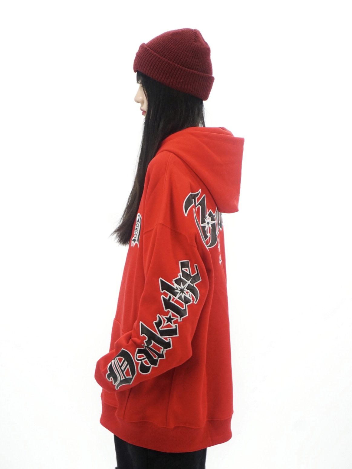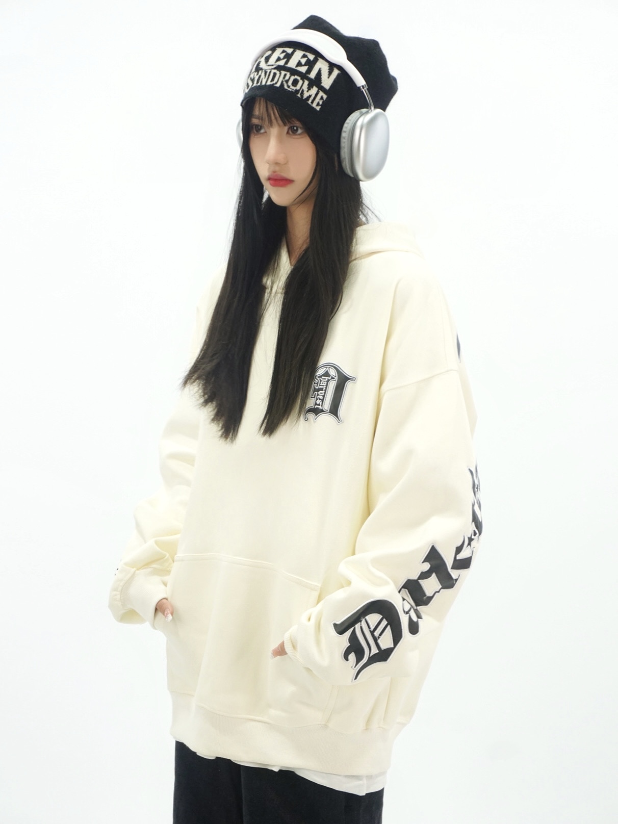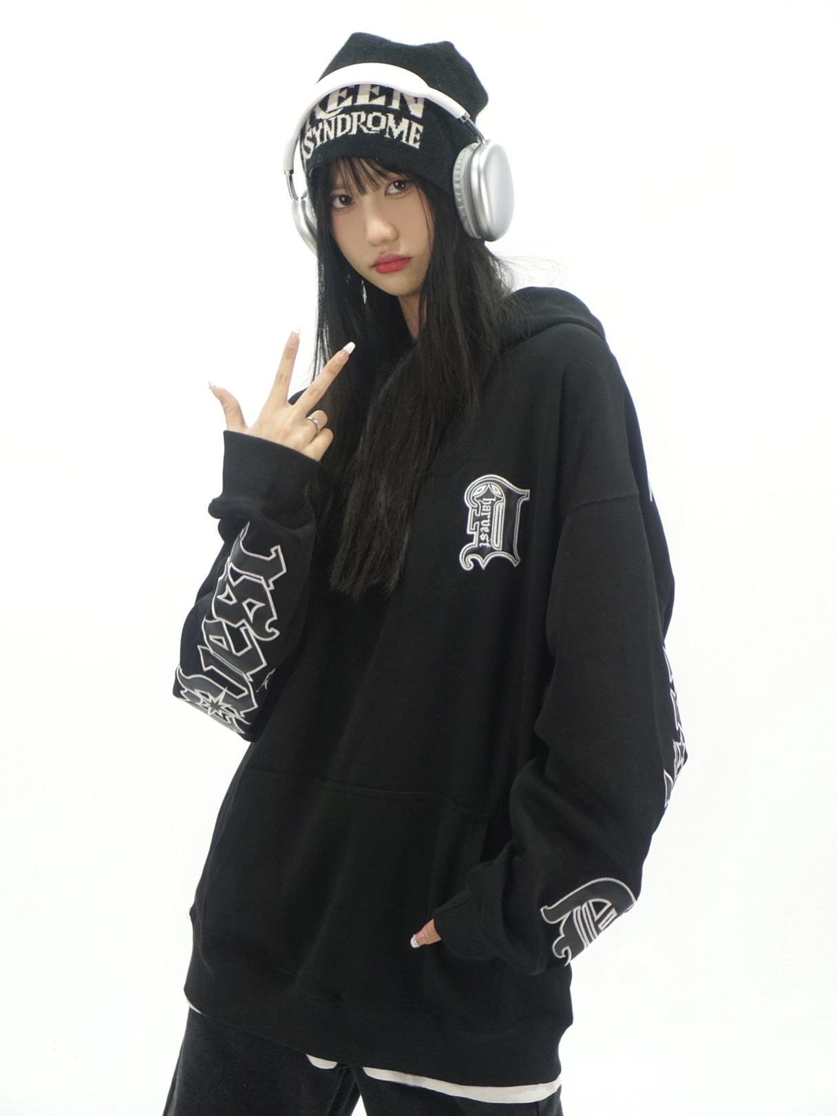 Amoeba美式復古重工刺繡連帽運動衫寬鬆男女春季國潮小眾設計感帽衫