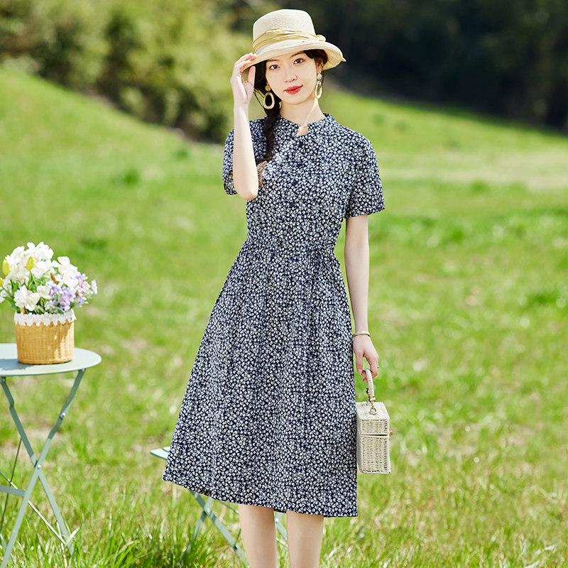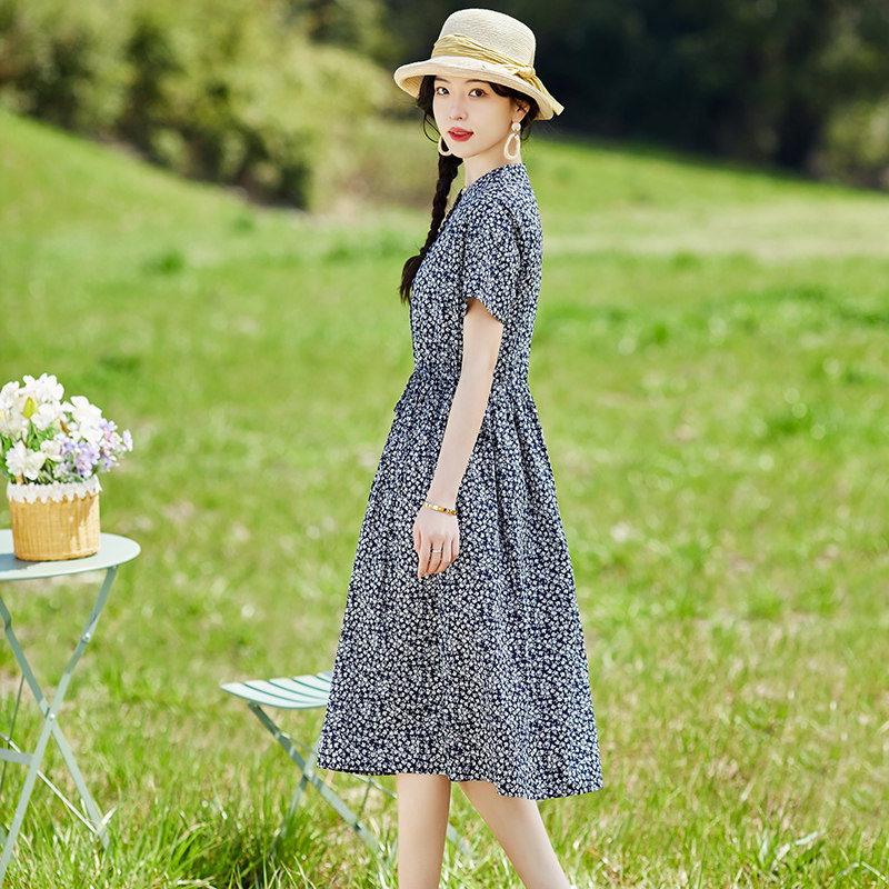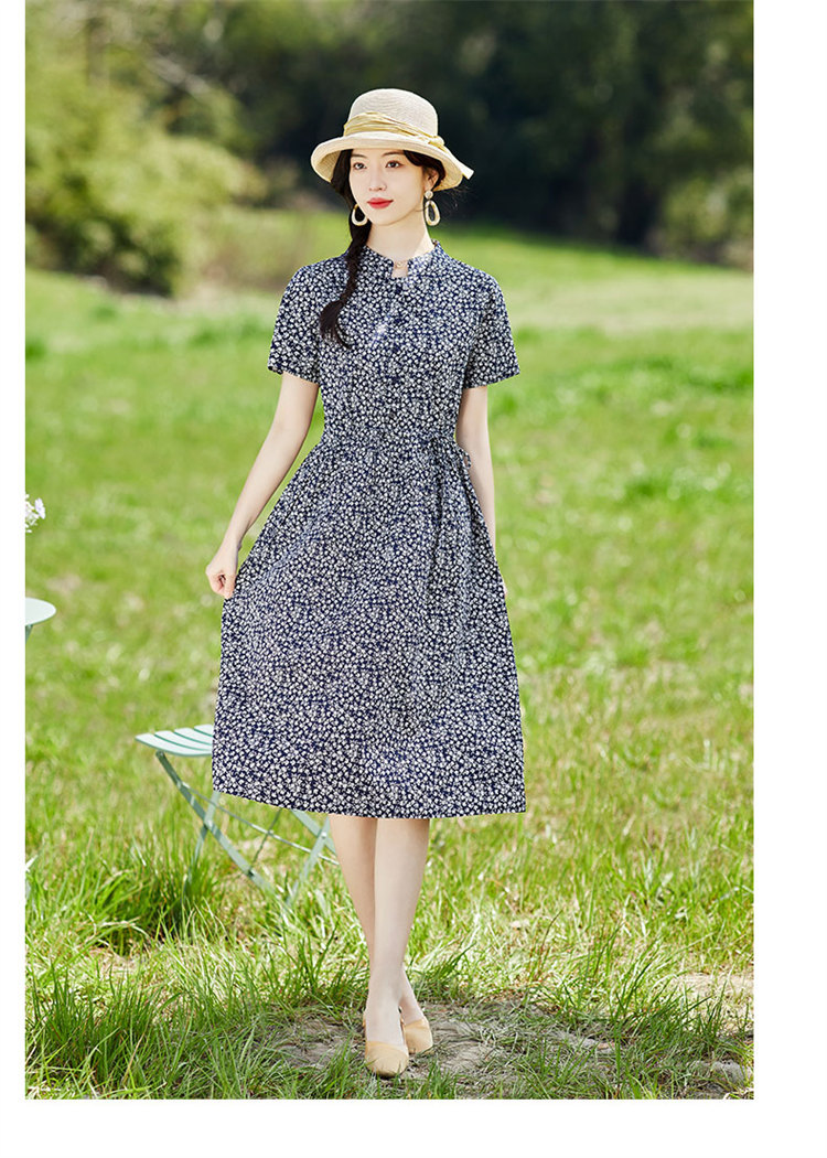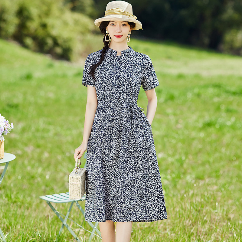 复古洋气减龄碎花棉质连衣裙女夏季2023新款中年妈妈遮肚显瘦裙子