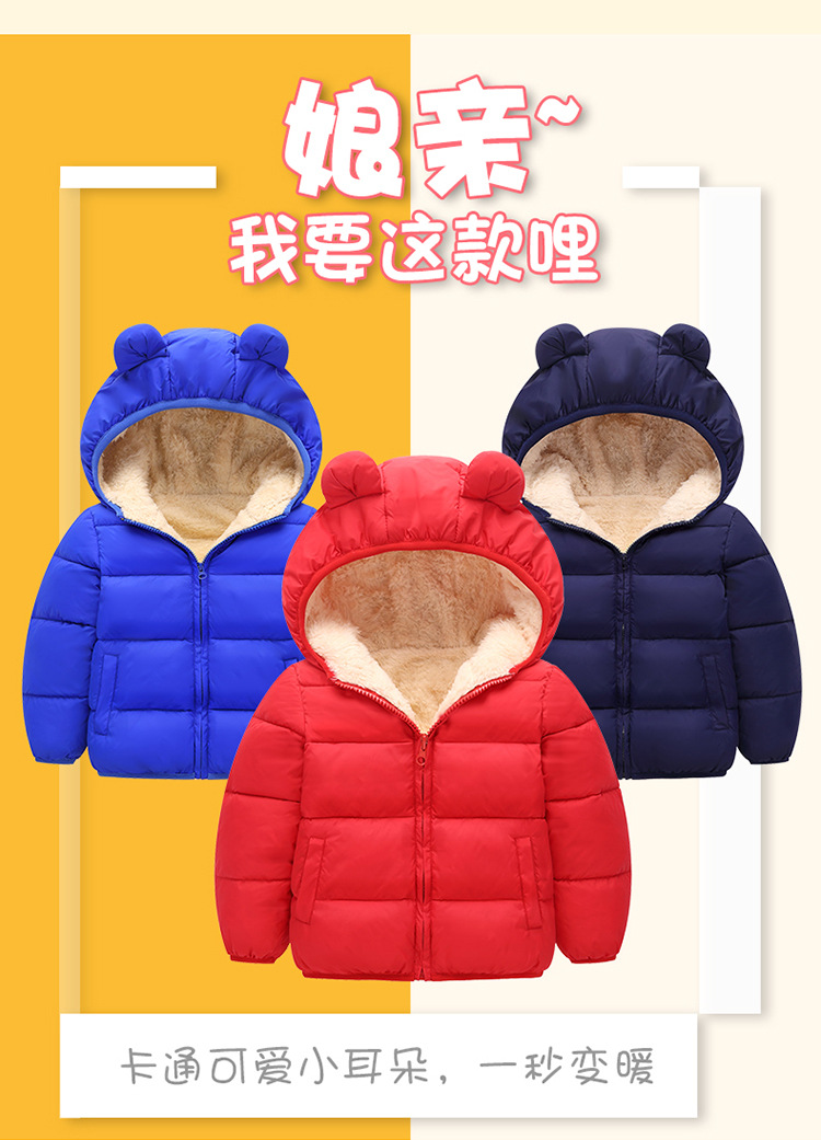 冬装新款儿童羊羔绒棉衣男童女童兔耳加厚中小童棉袄宝宝棉服