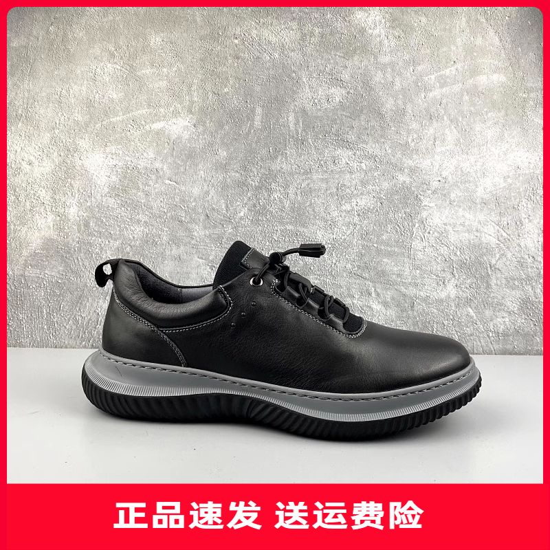 2023秋季撤櫃斷碼處理男鞋真皮平底鬆緊帶真皮牛皮青年日常單鞋
