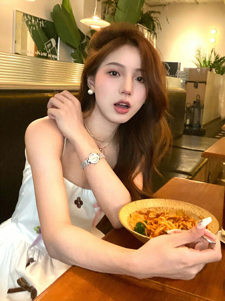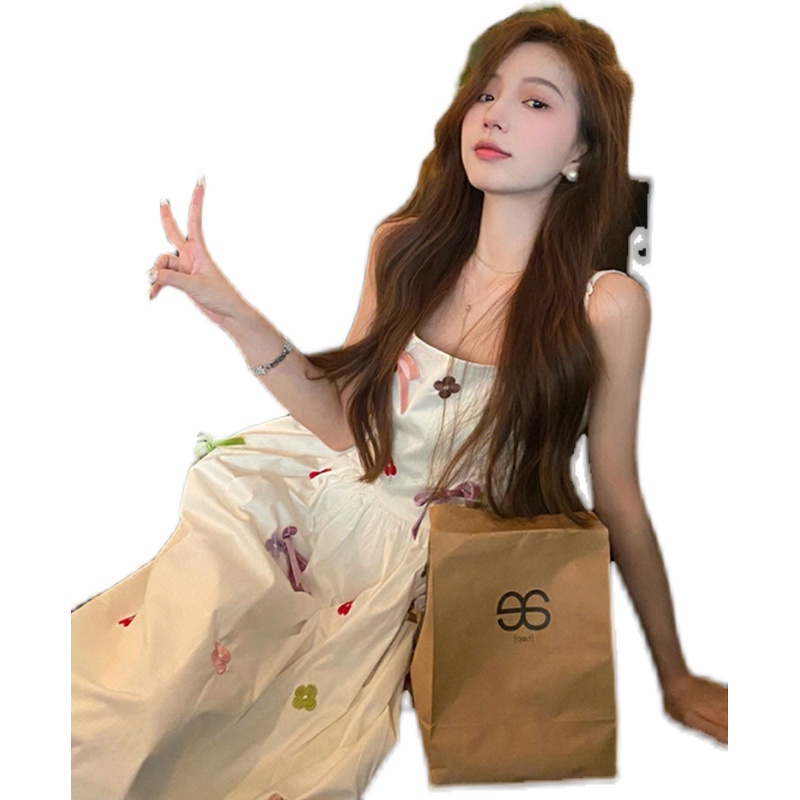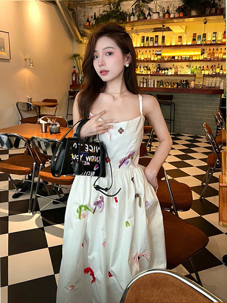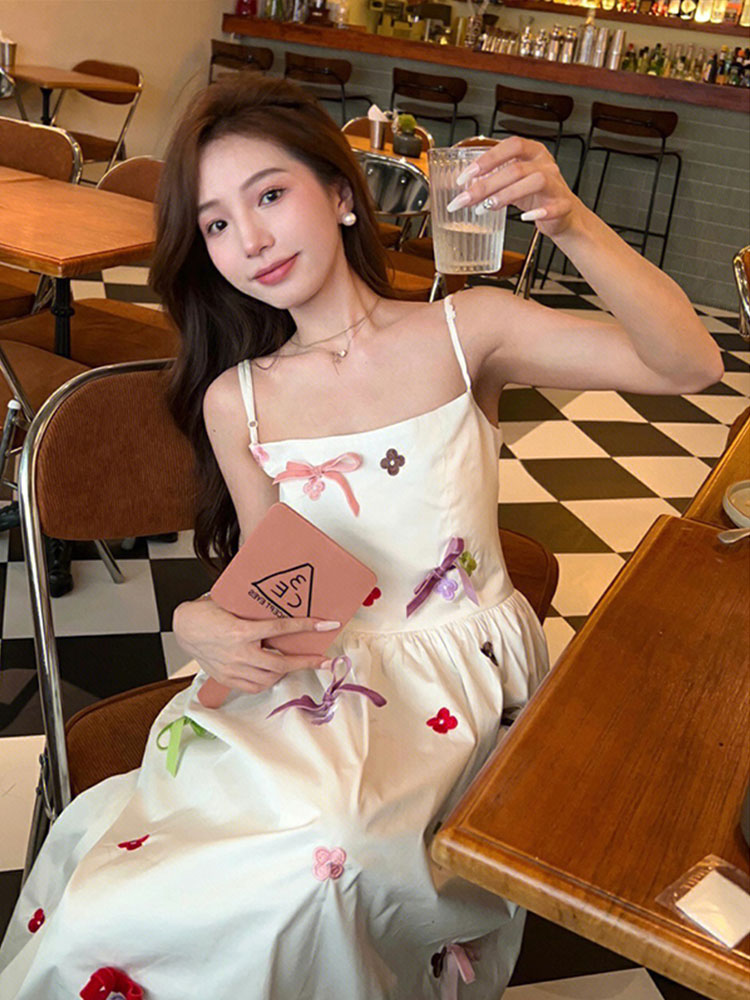 OOTD塘小裏白色刺繡花朵吊帶洋裝多巴胺海灘海邊三亞度假裙子夏