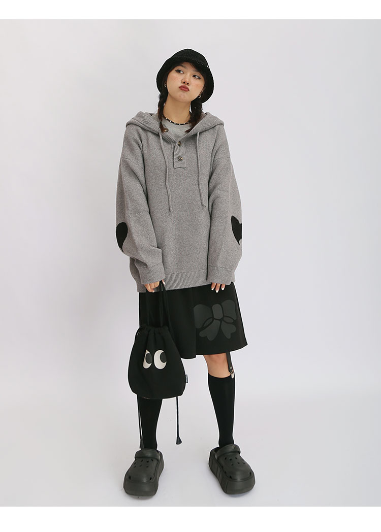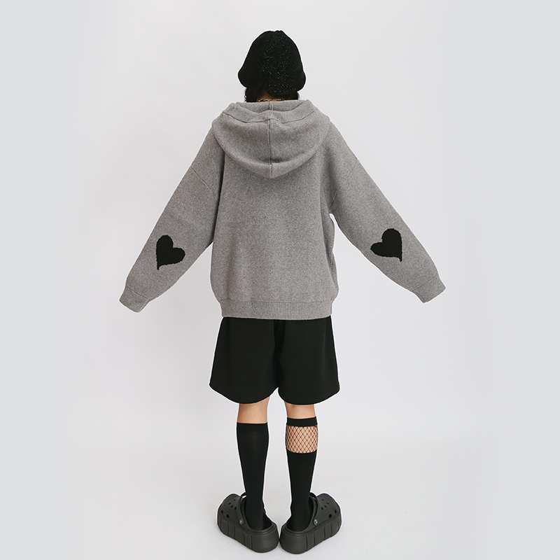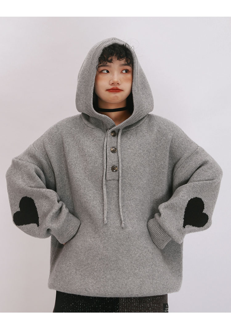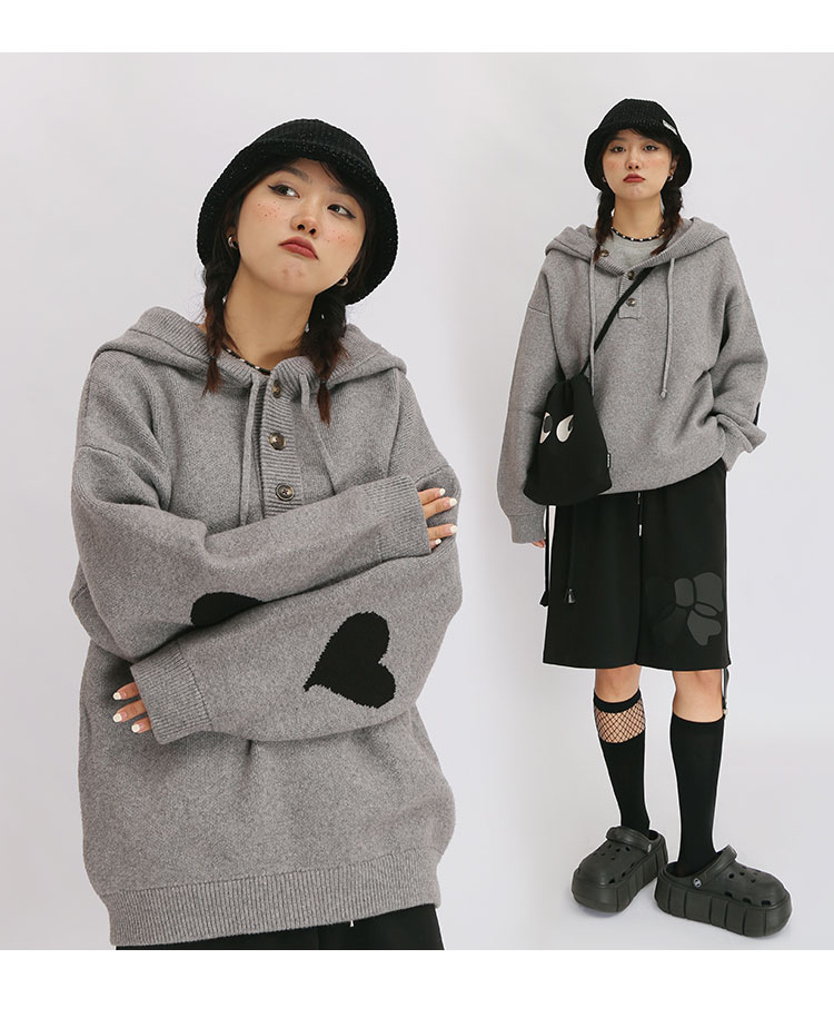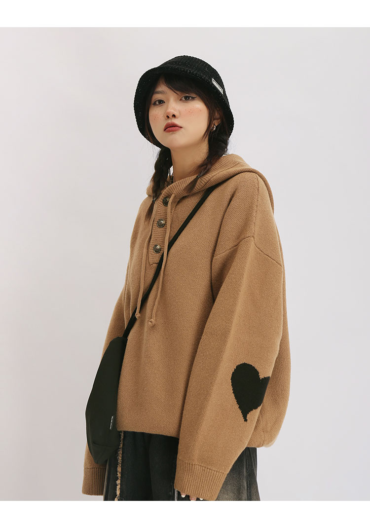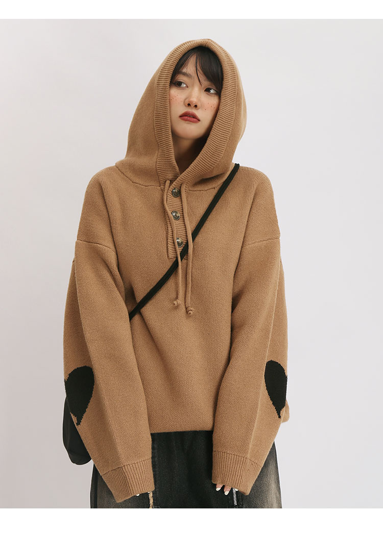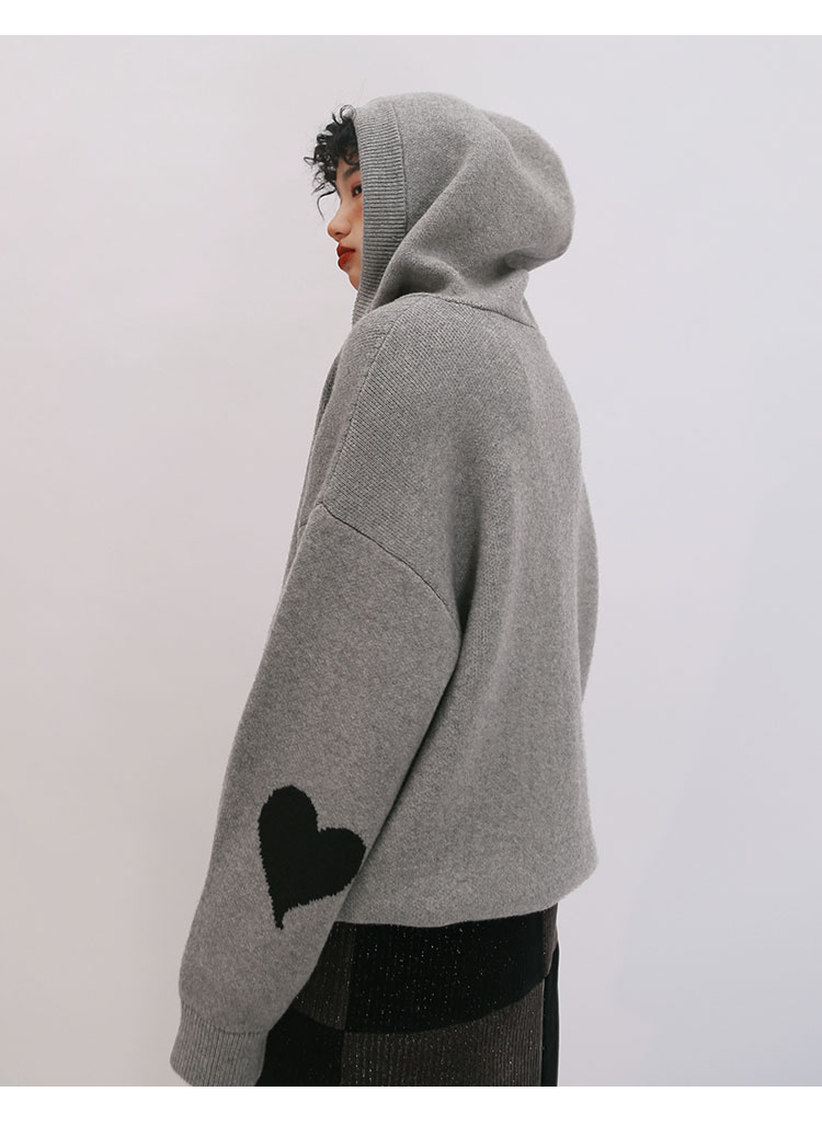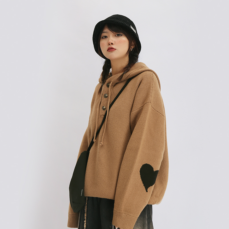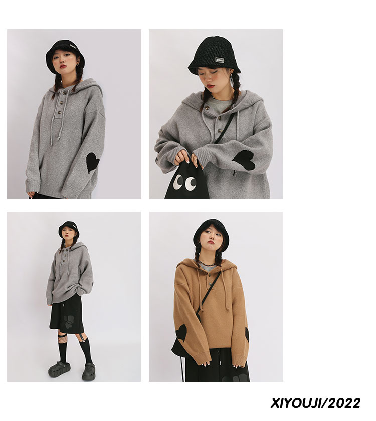 嬉遊記原創2022秋新款寬鬆慵懶愛心連帽毛衣女軟糯舒適針織衫衛衣