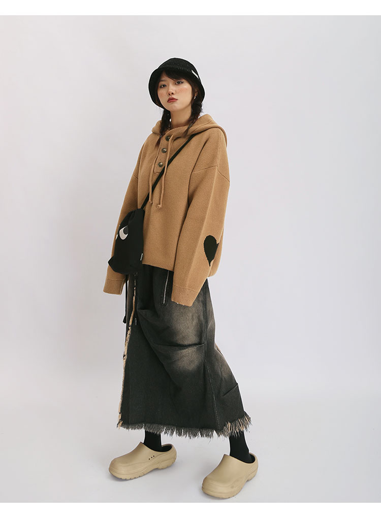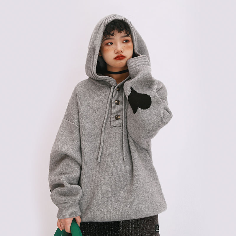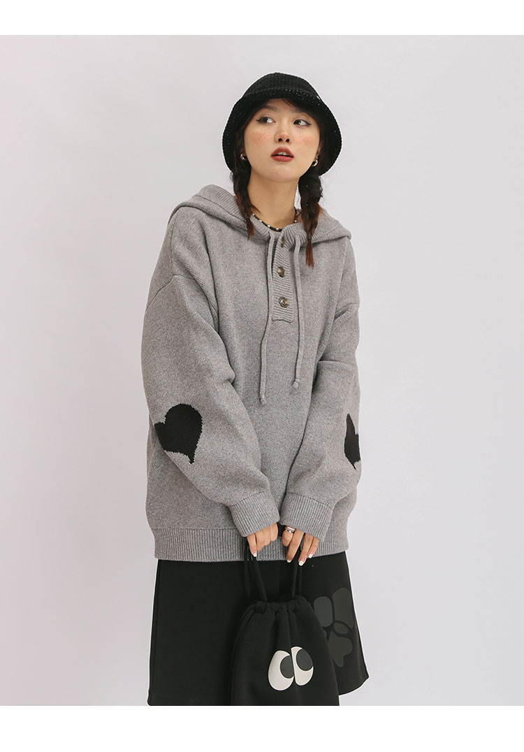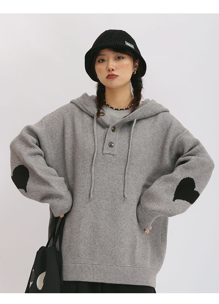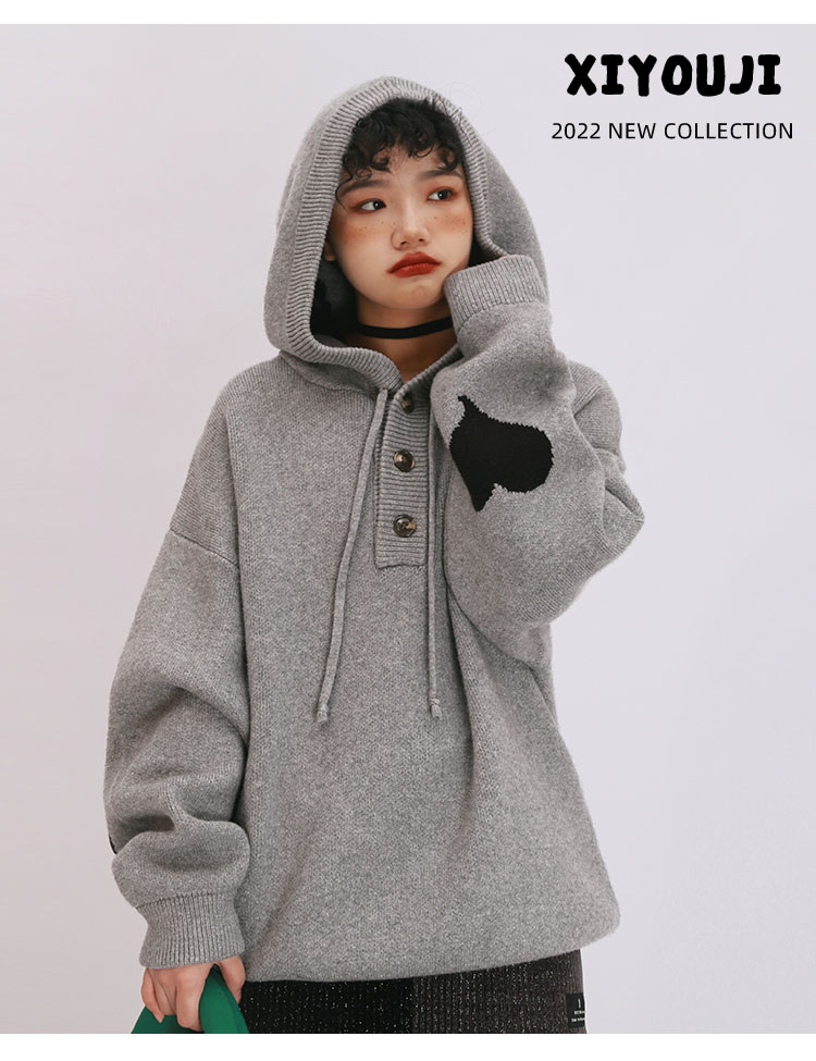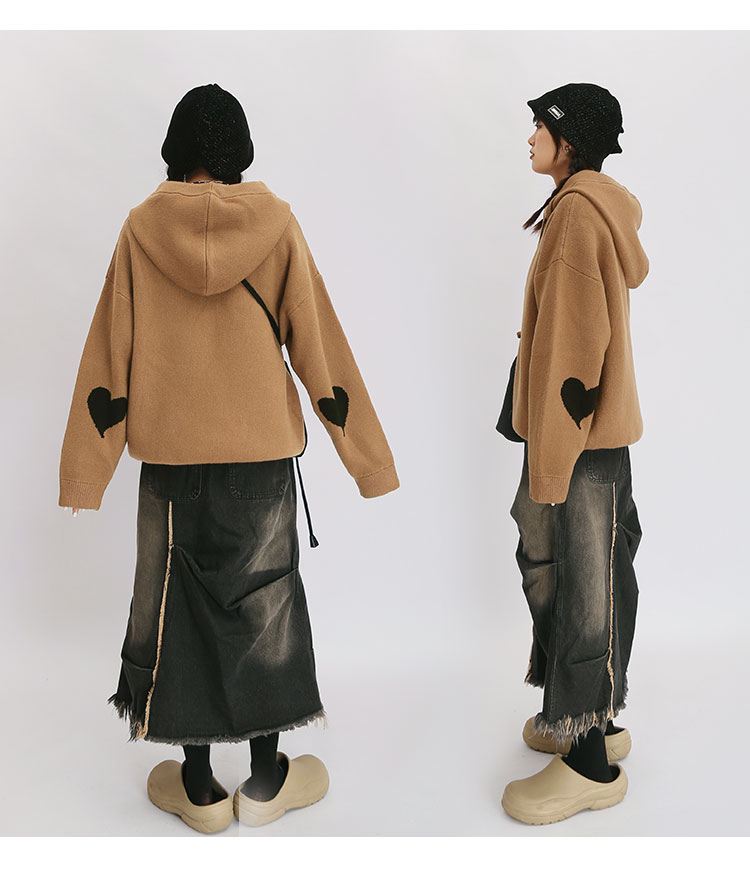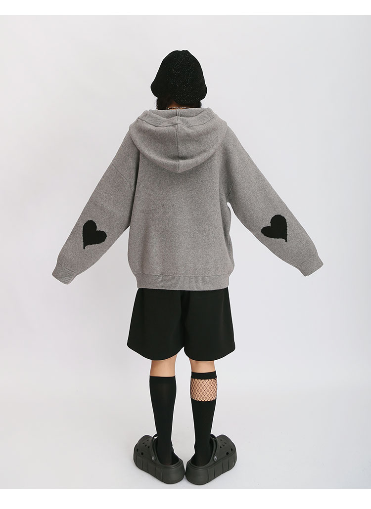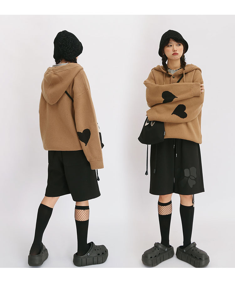 嬉遊記原創2022秋新款寬鬆慵懶愛心連帽毛衣女軟糯舒適針織衫衛衣