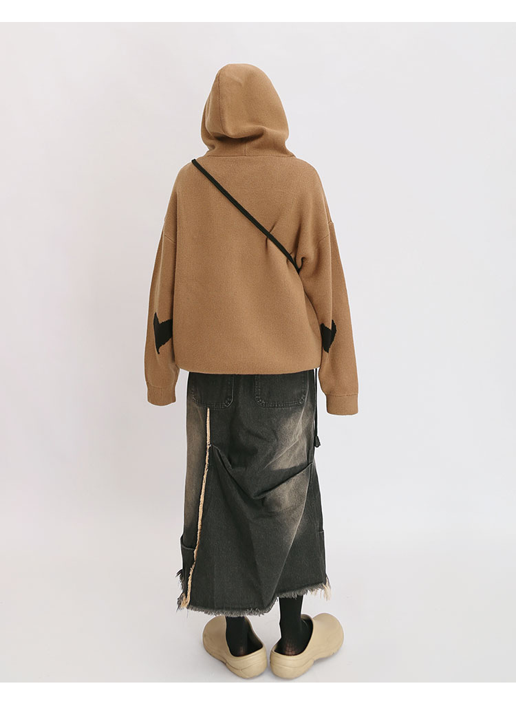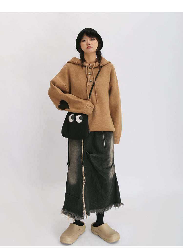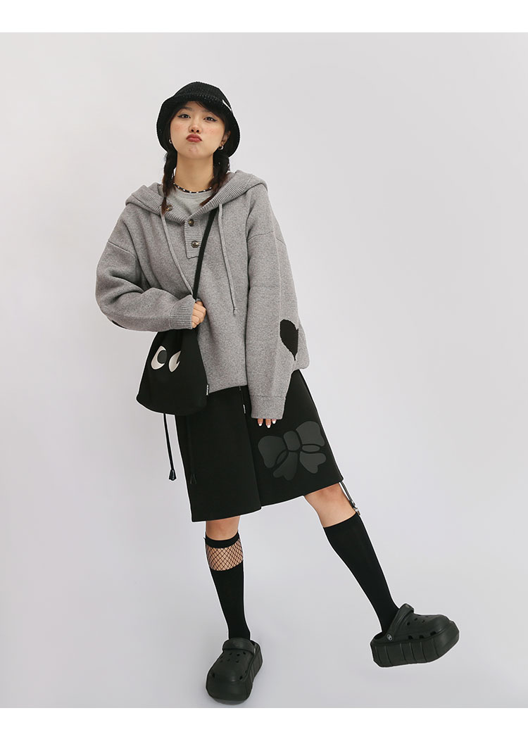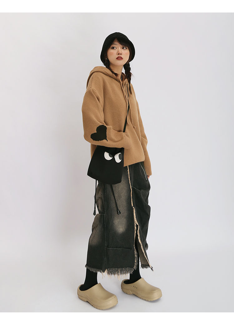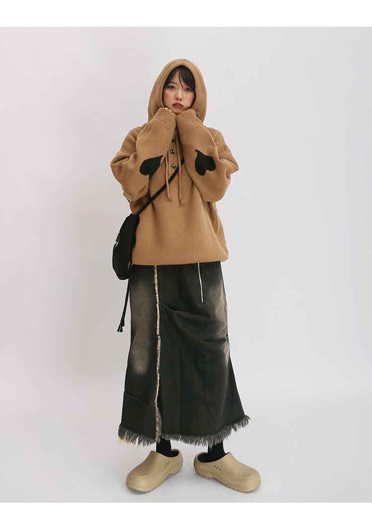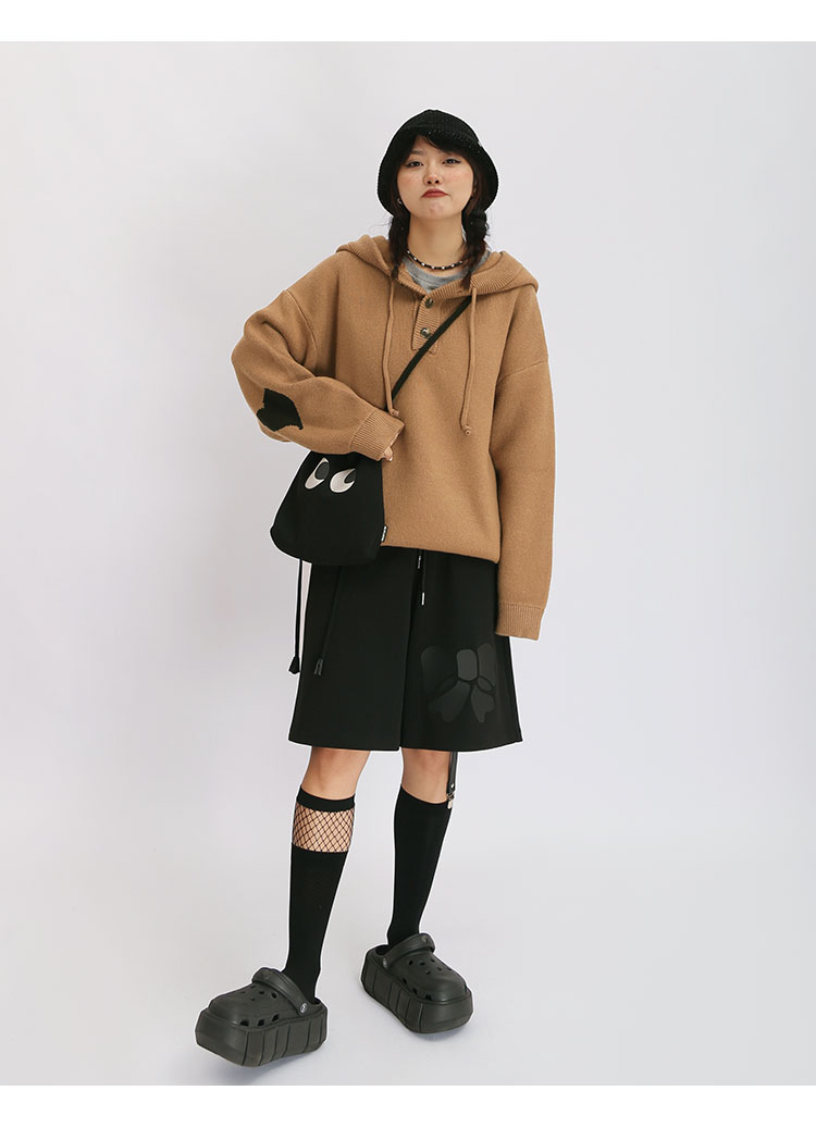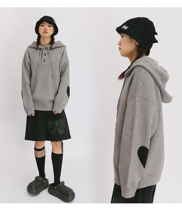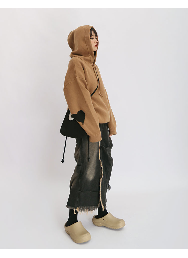 嬉遊記原創2022秋新款寬鬆慵懶愛心連帽毛衣女軟糯舒適針織衫衛衣