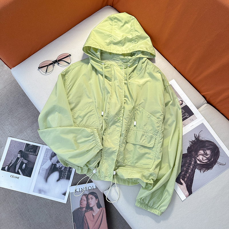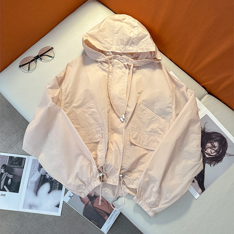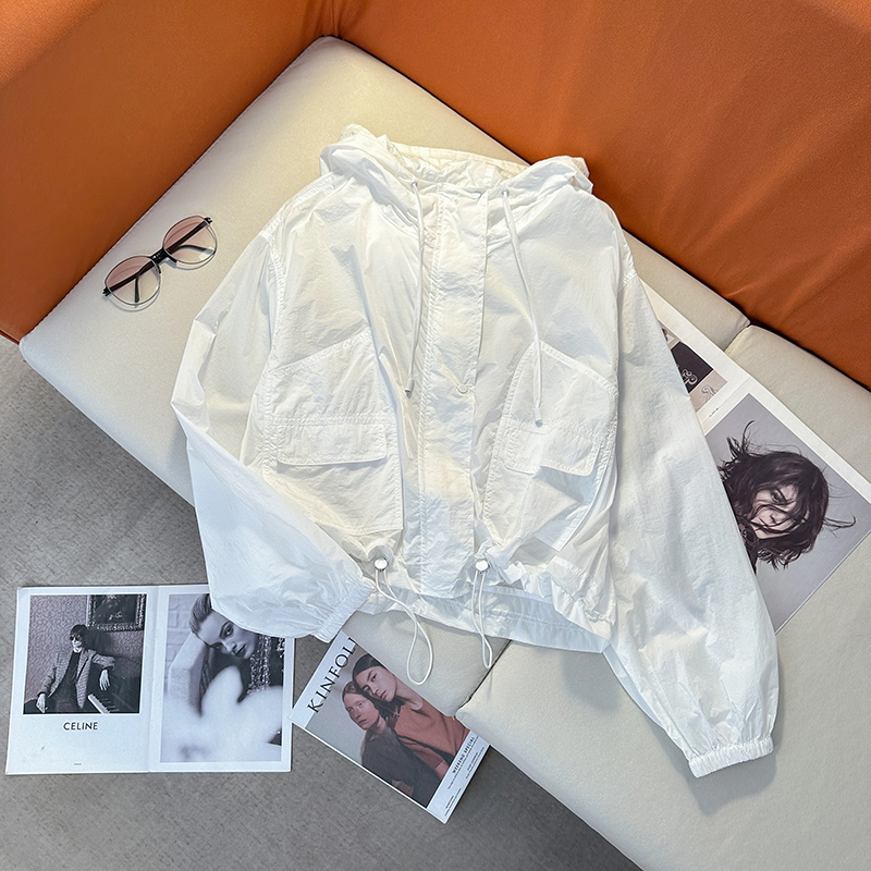 藍色長袖防曬衫外套女夏季輕薄短款小個子抗紫外線防曬衣連帽上衣