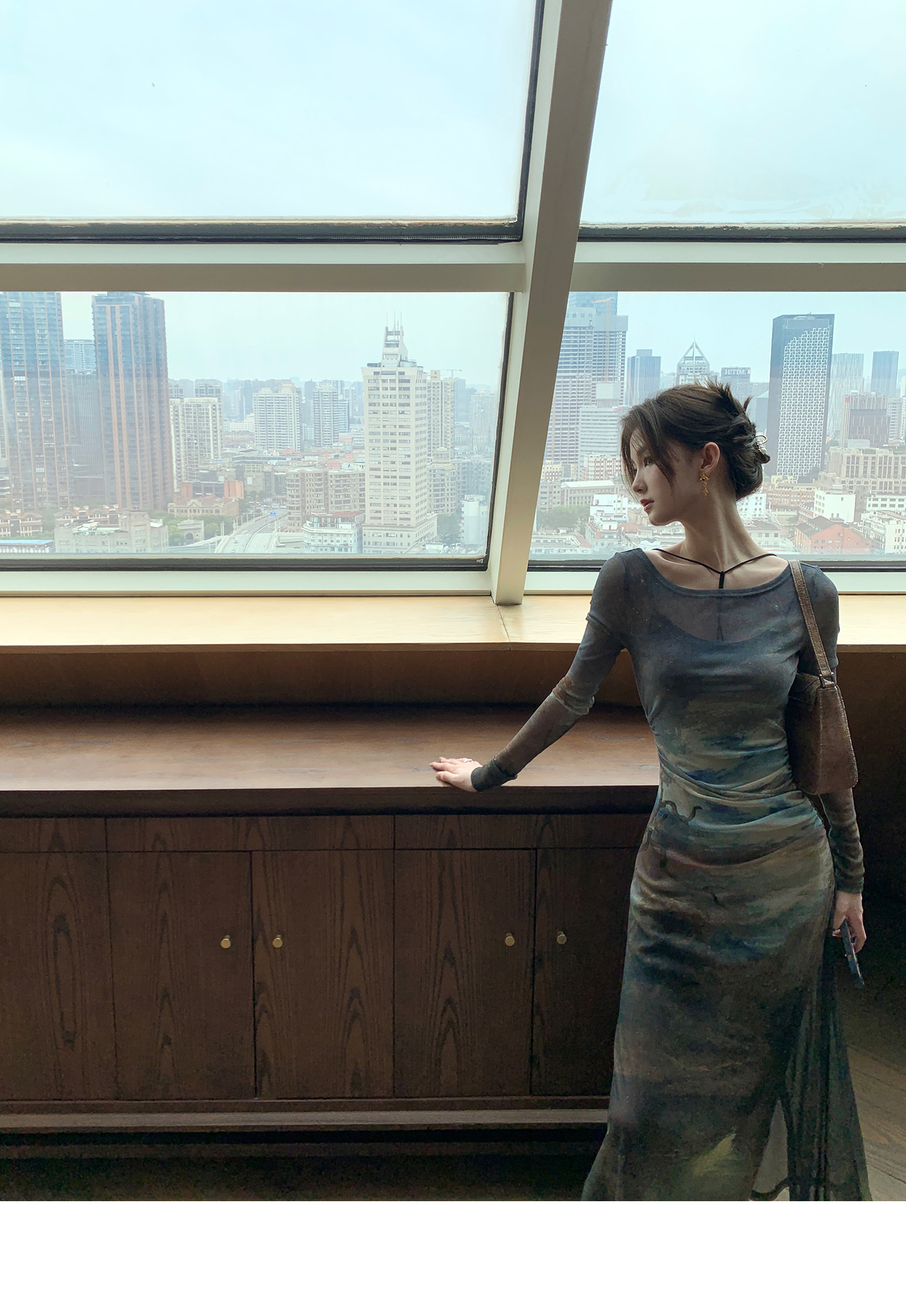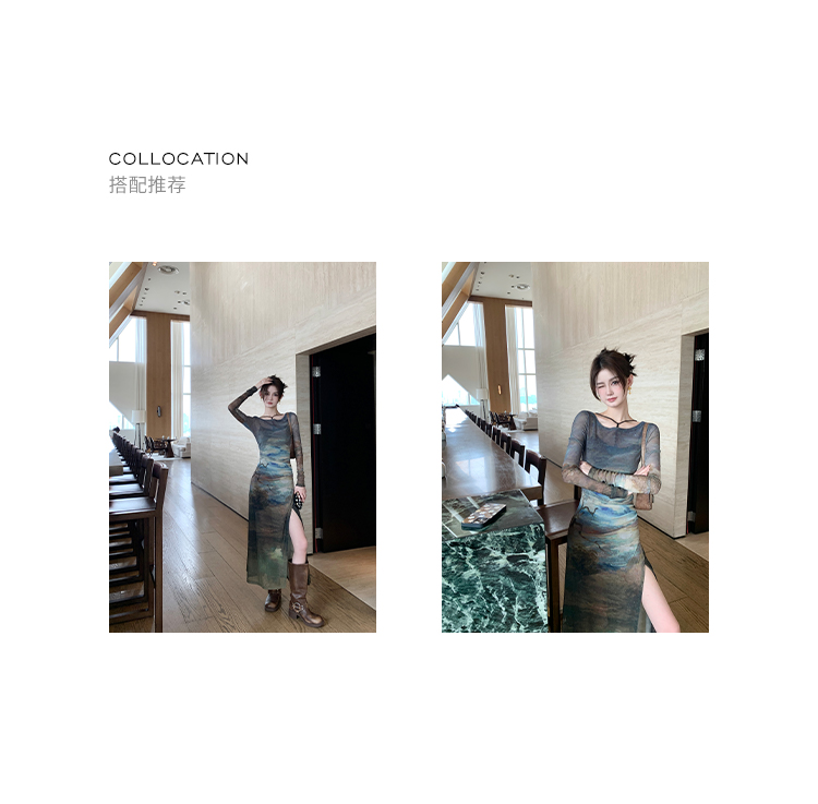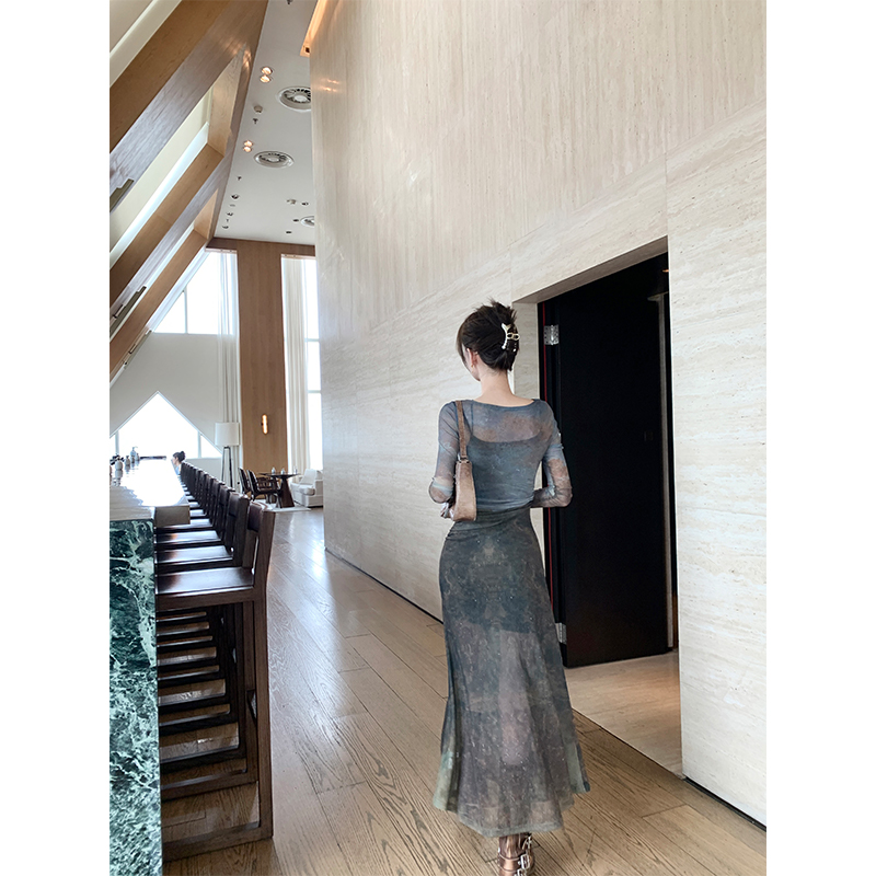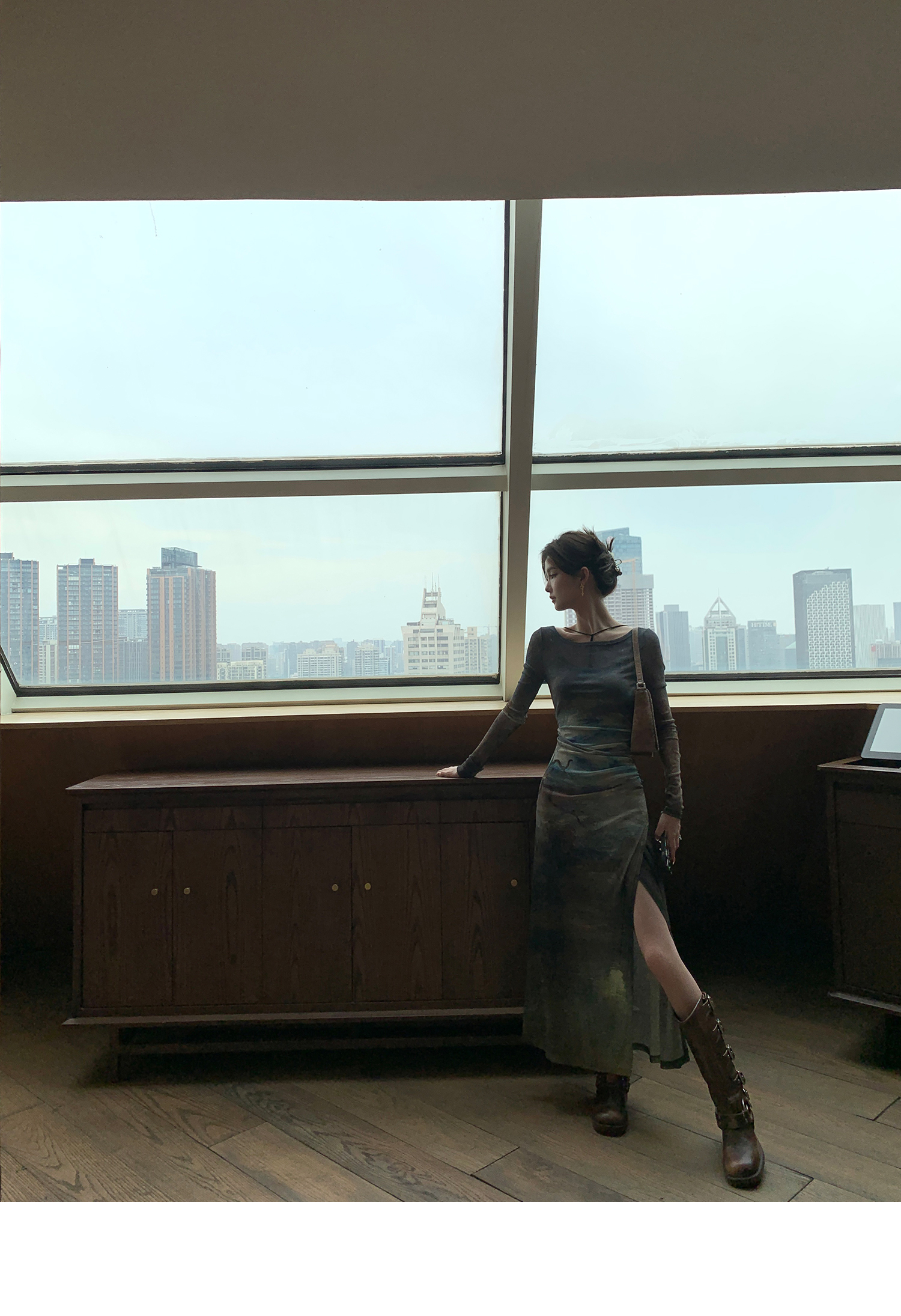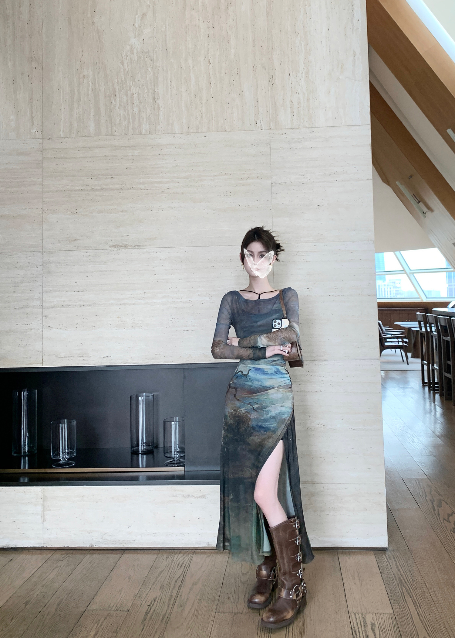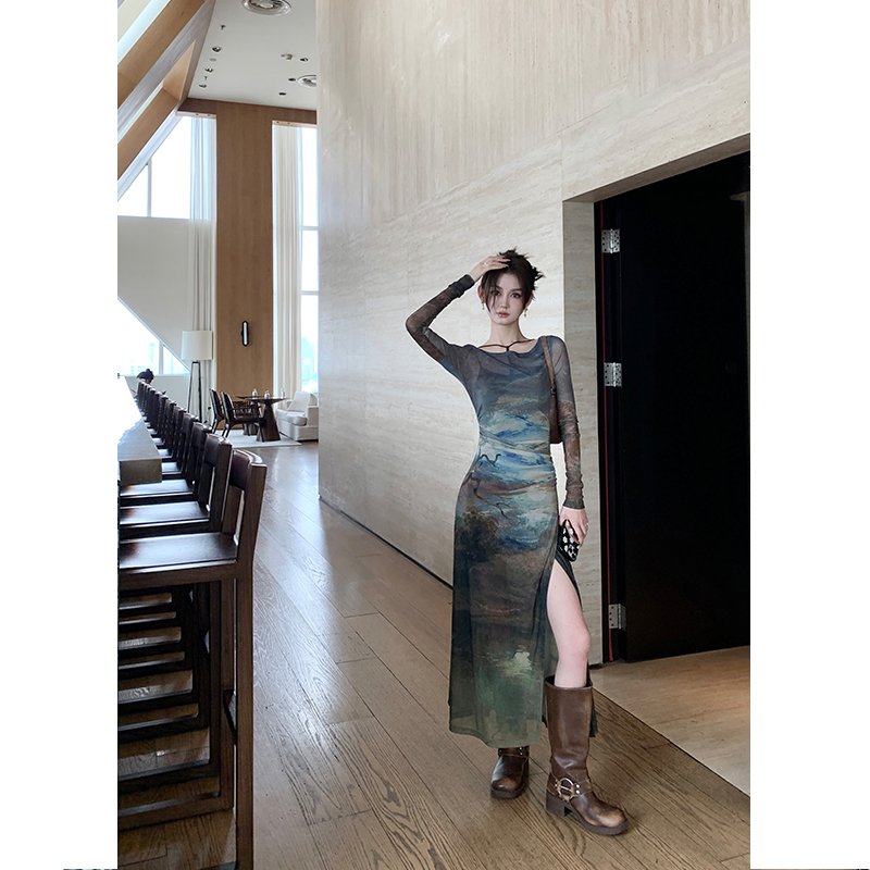 NIMOWANG【日落洋裝】吊帶兩件套長裙女秋季高級感辣妹長袖裙子