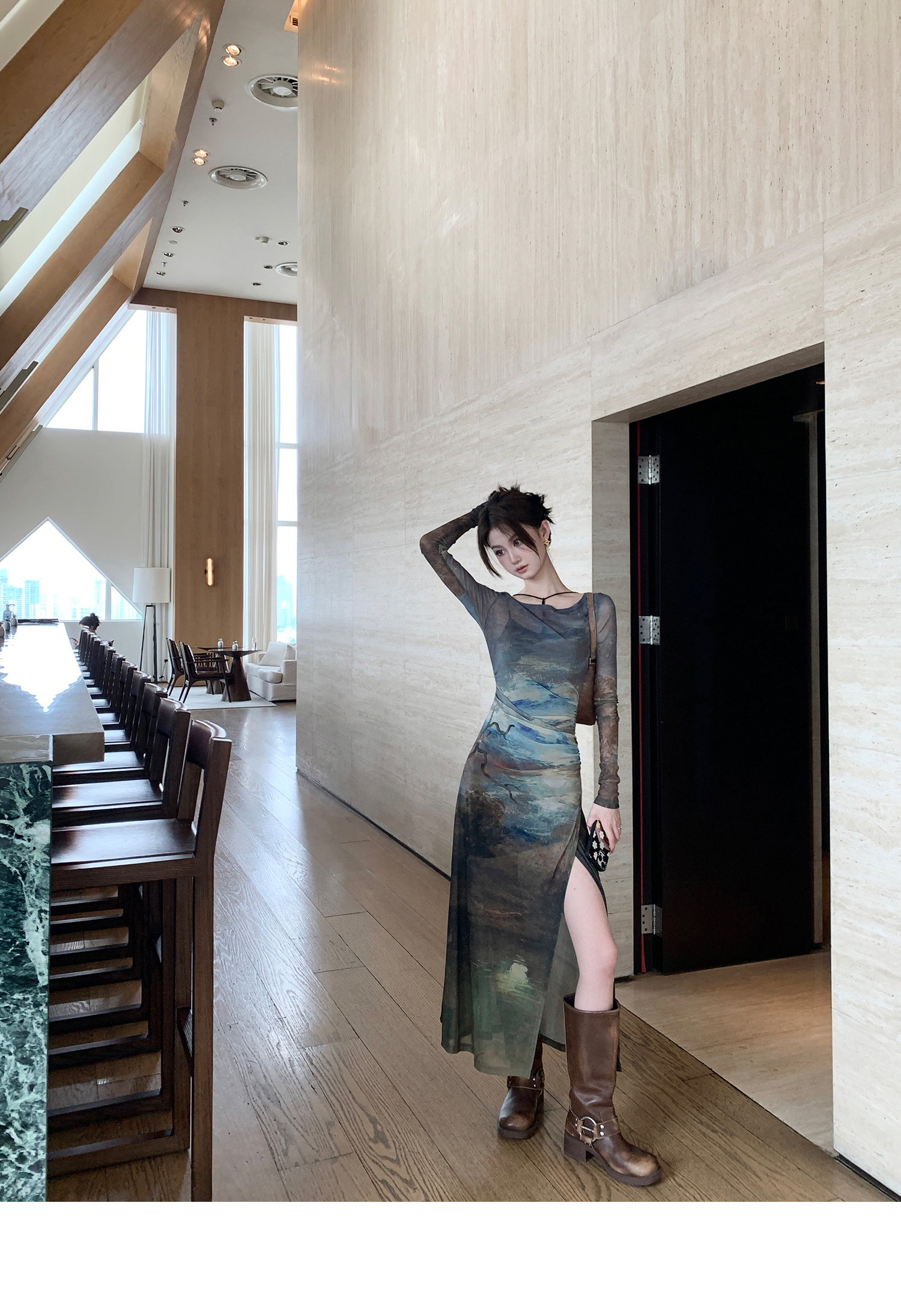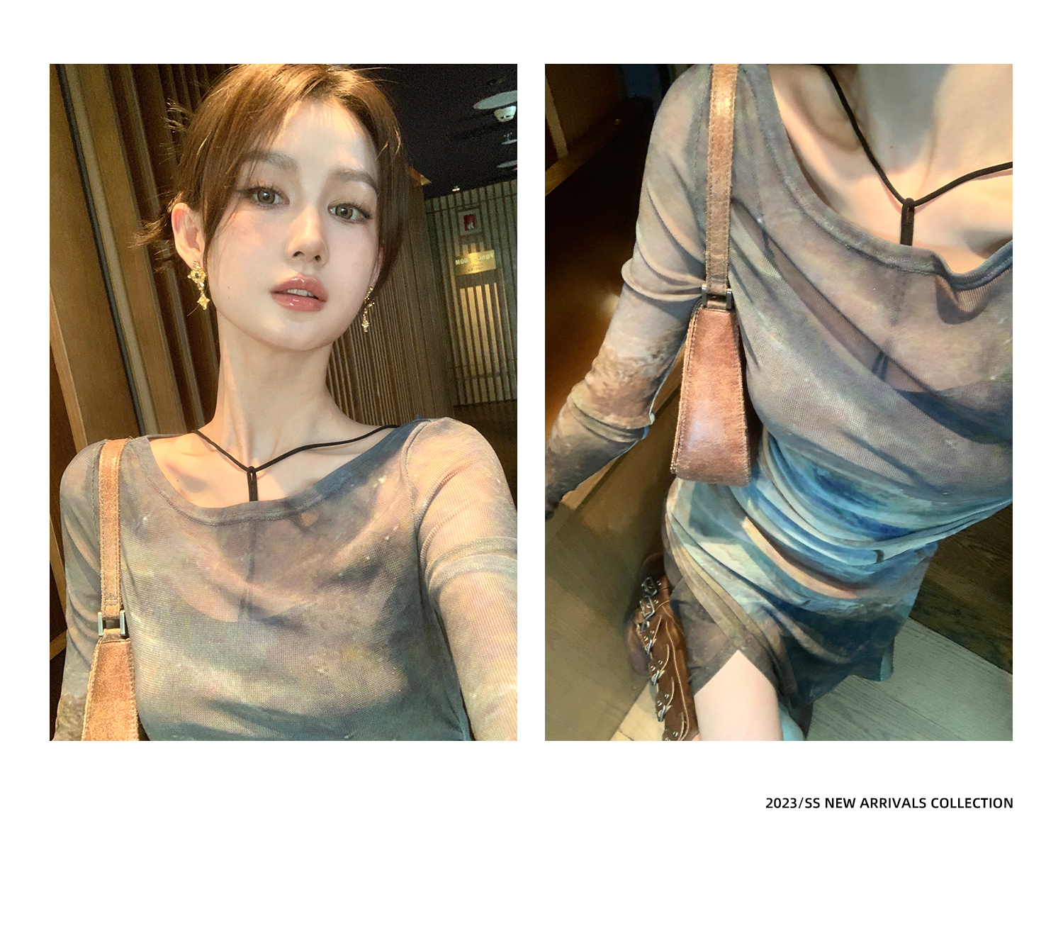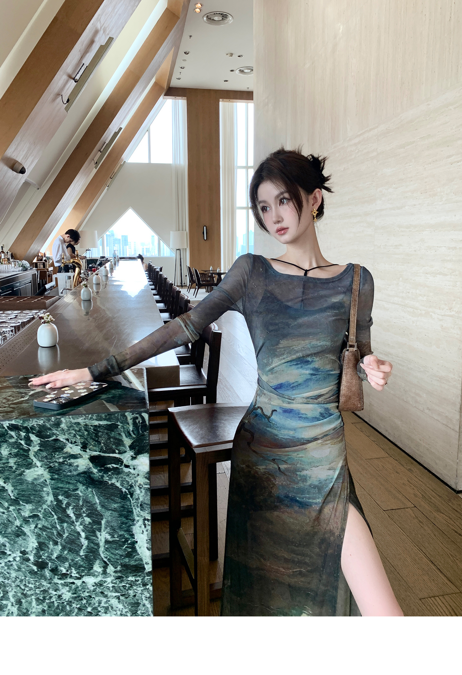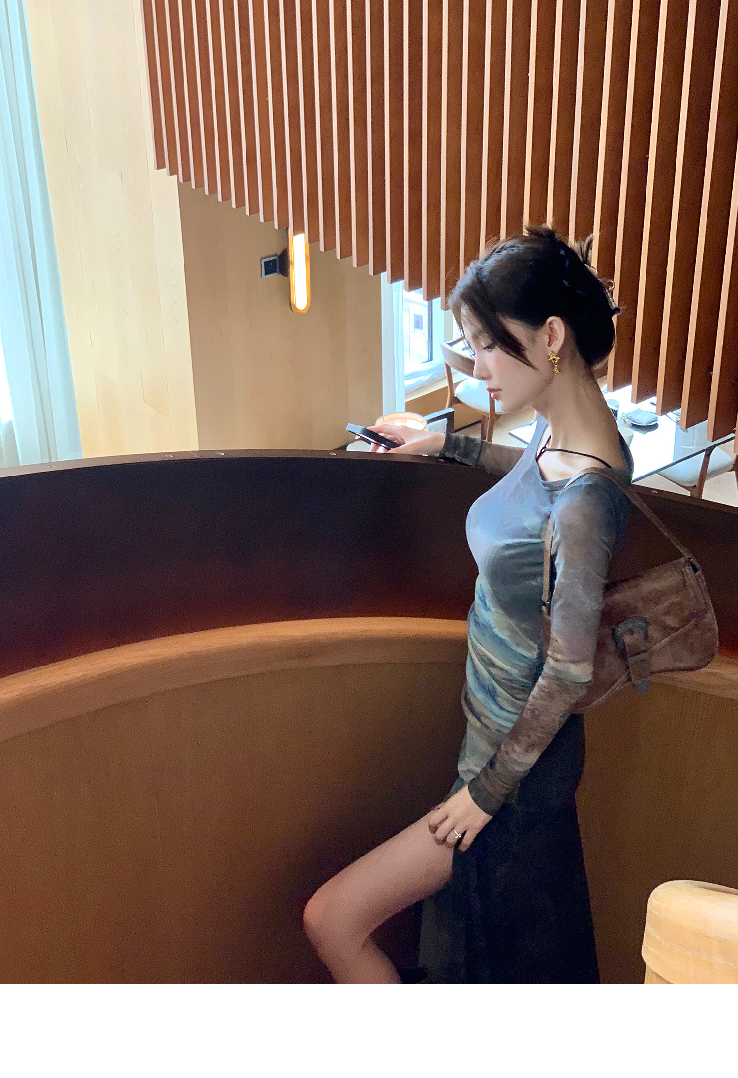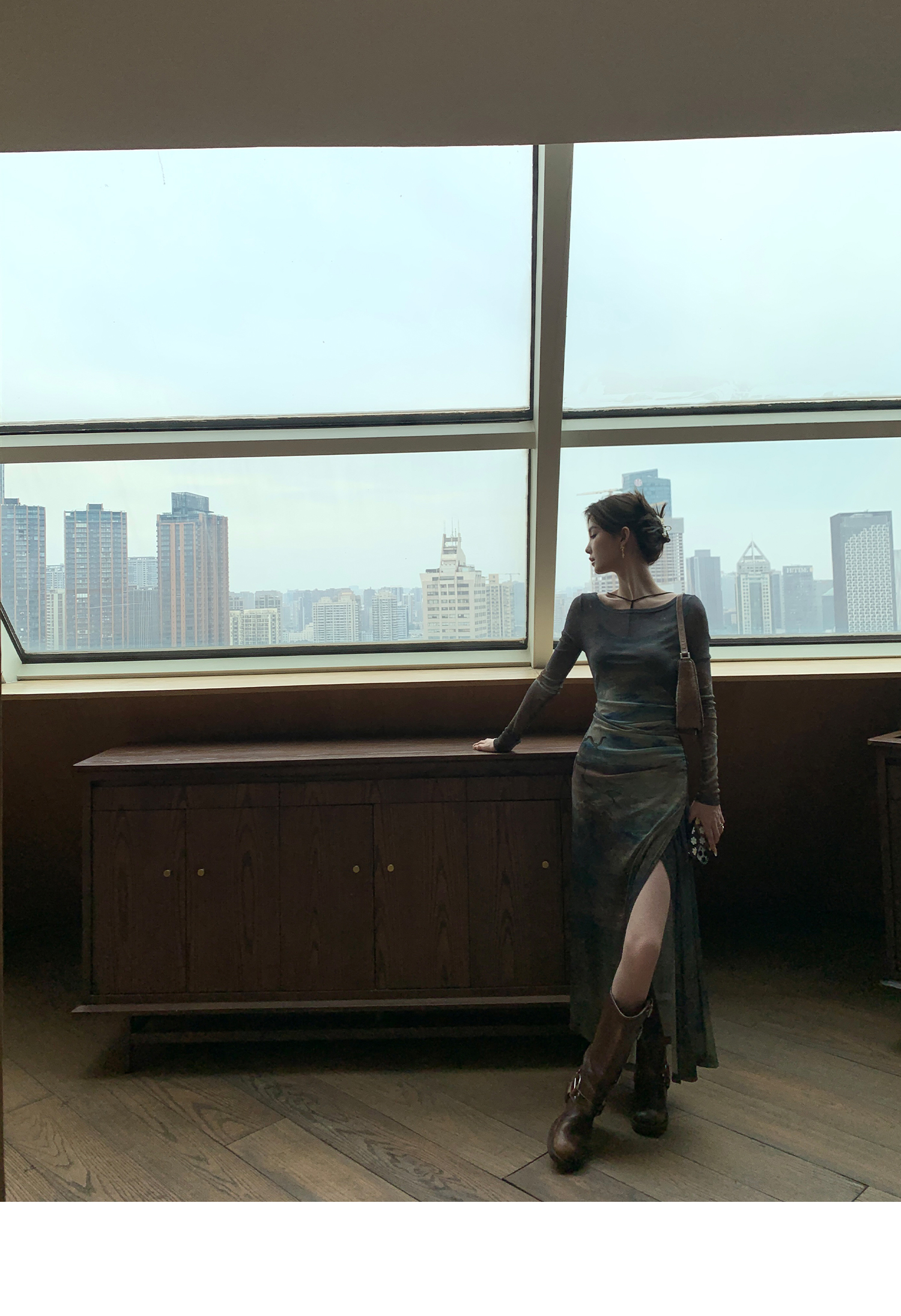 NIMOWANG【日落洋裝】吊帶兩件套長裙女秋季高級感辣妹長袖裙子