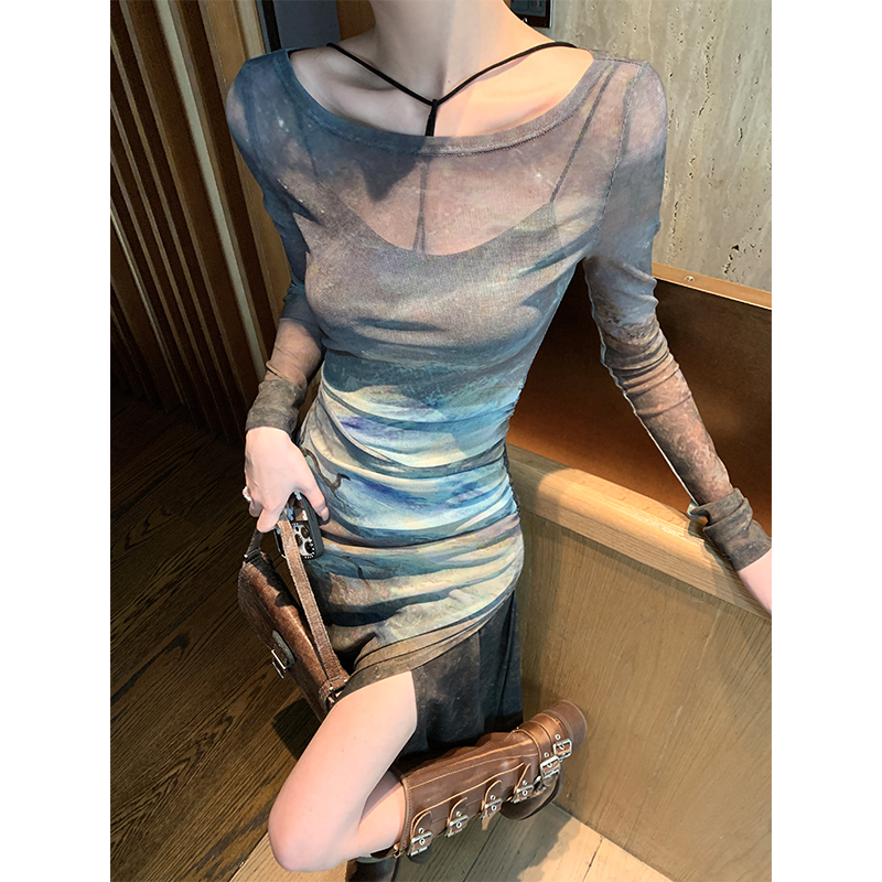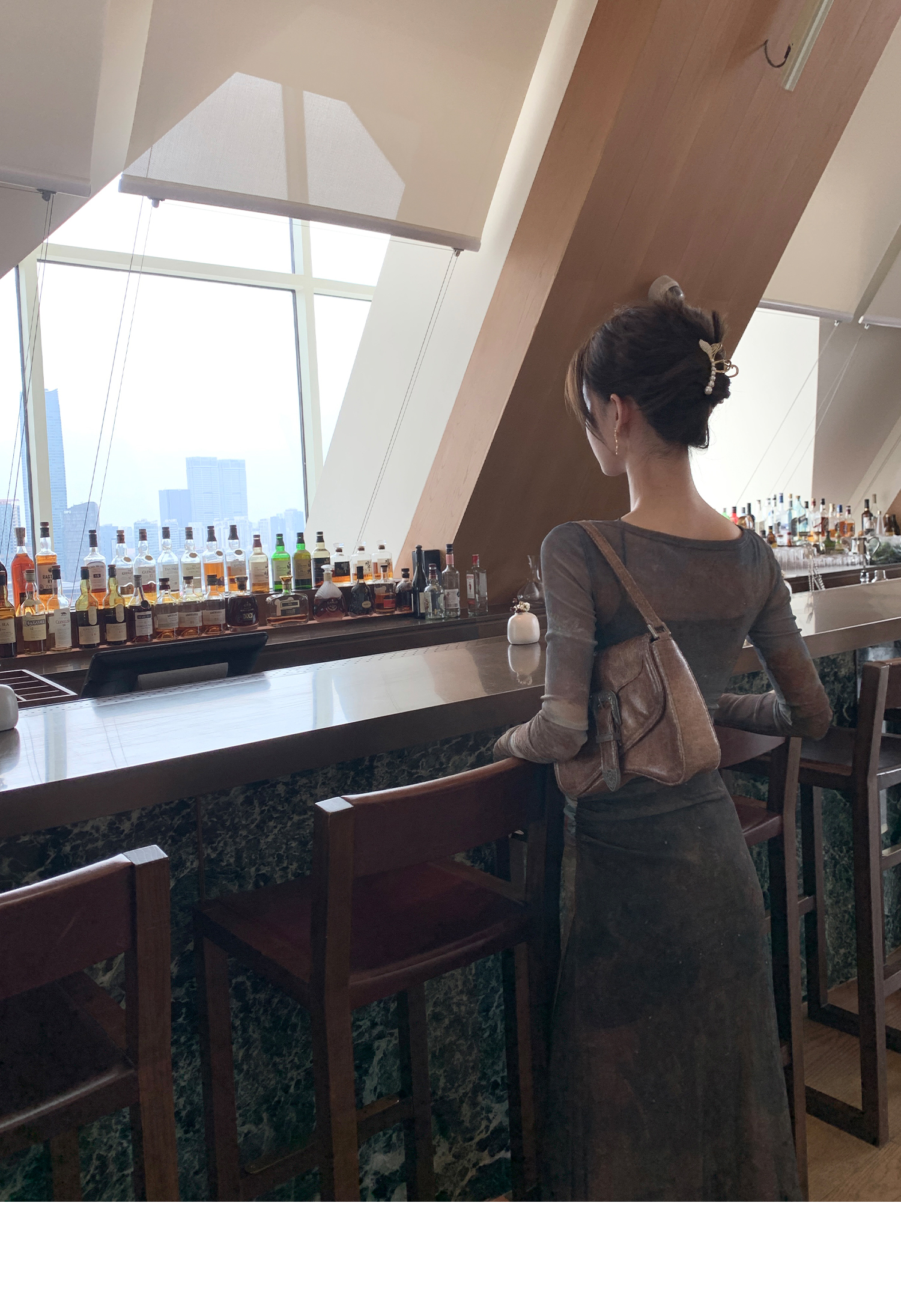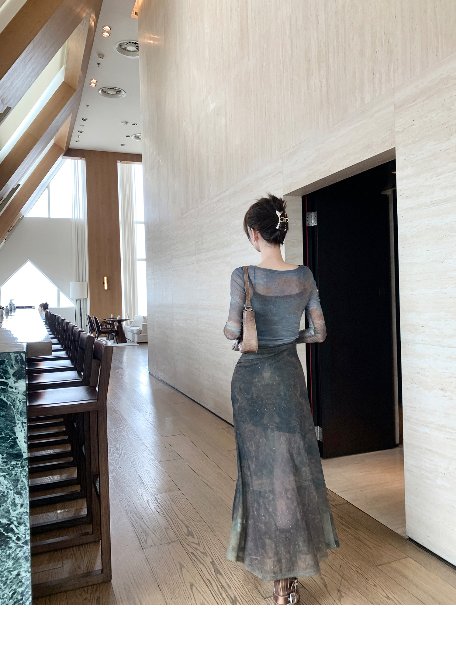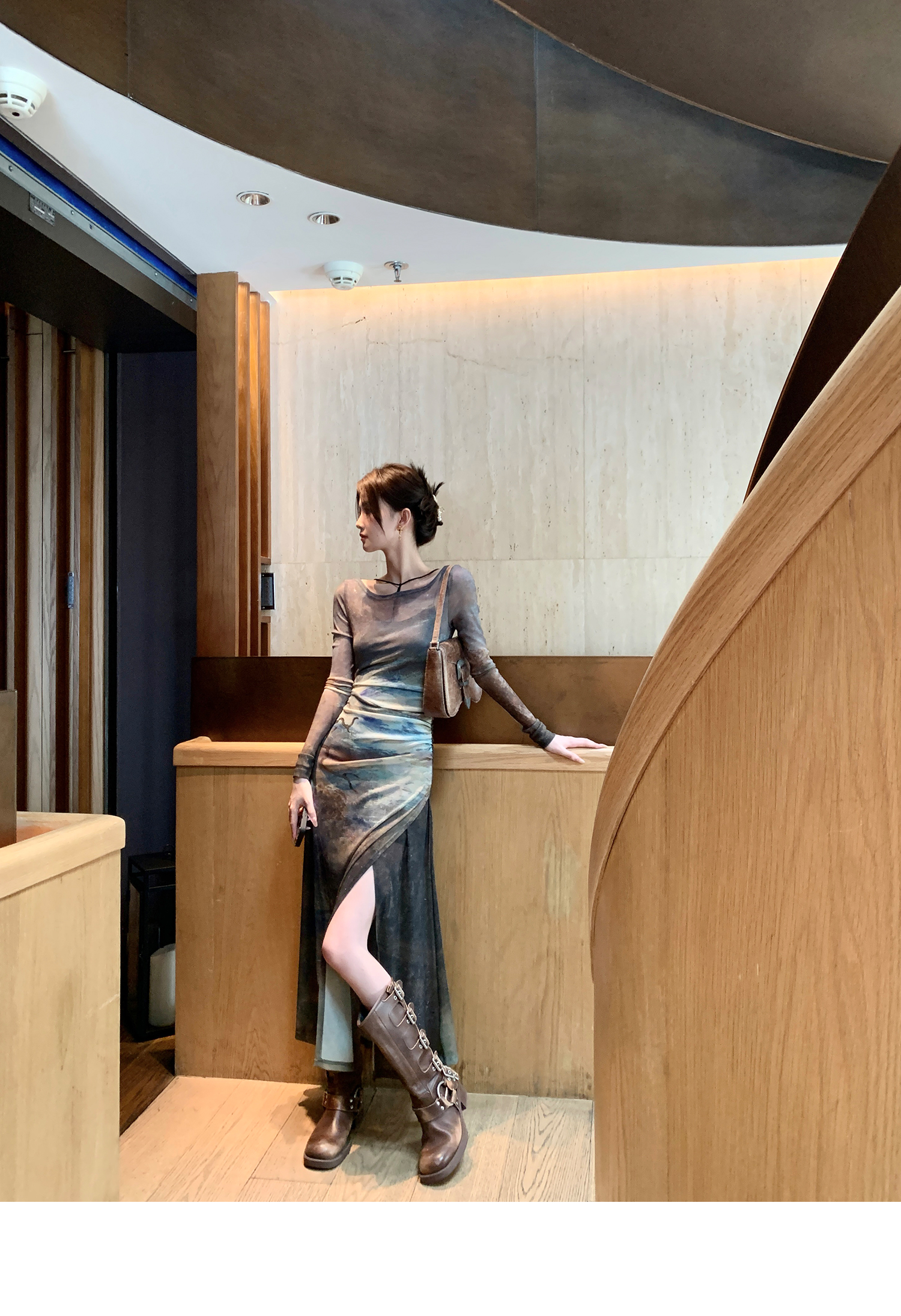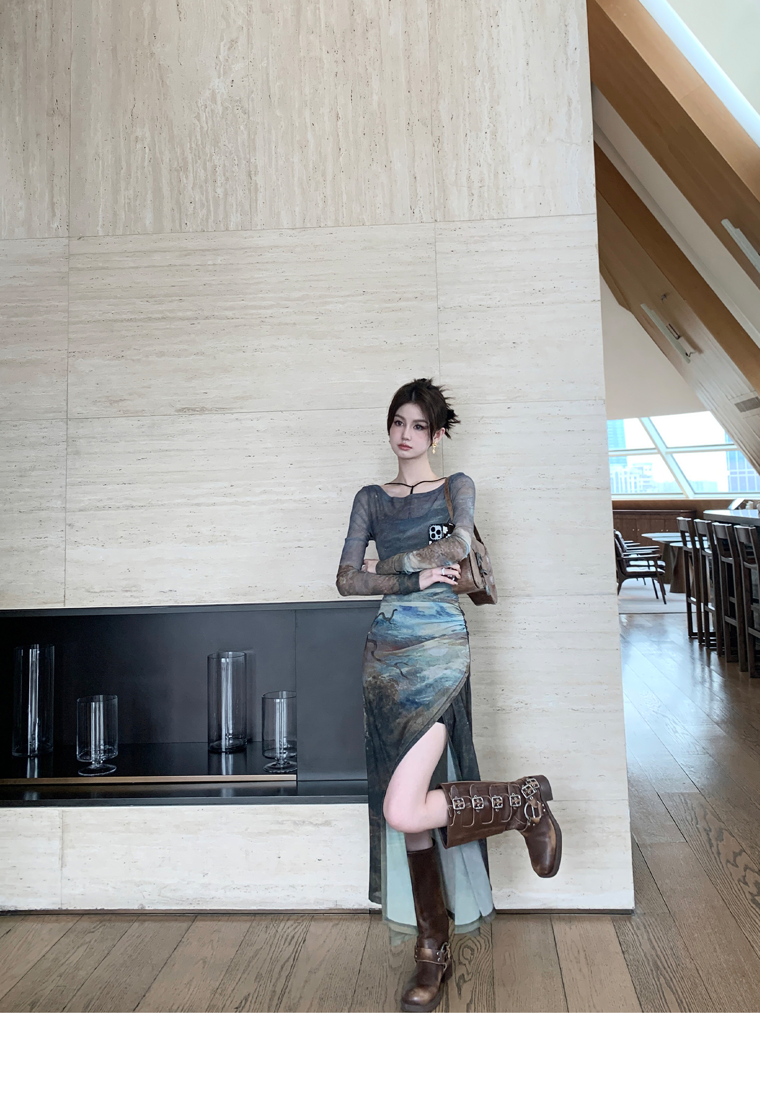 NIMOWANG【日落洋裝】吊帶兩件套長裙女秋季高級感辣妹長袖裙子