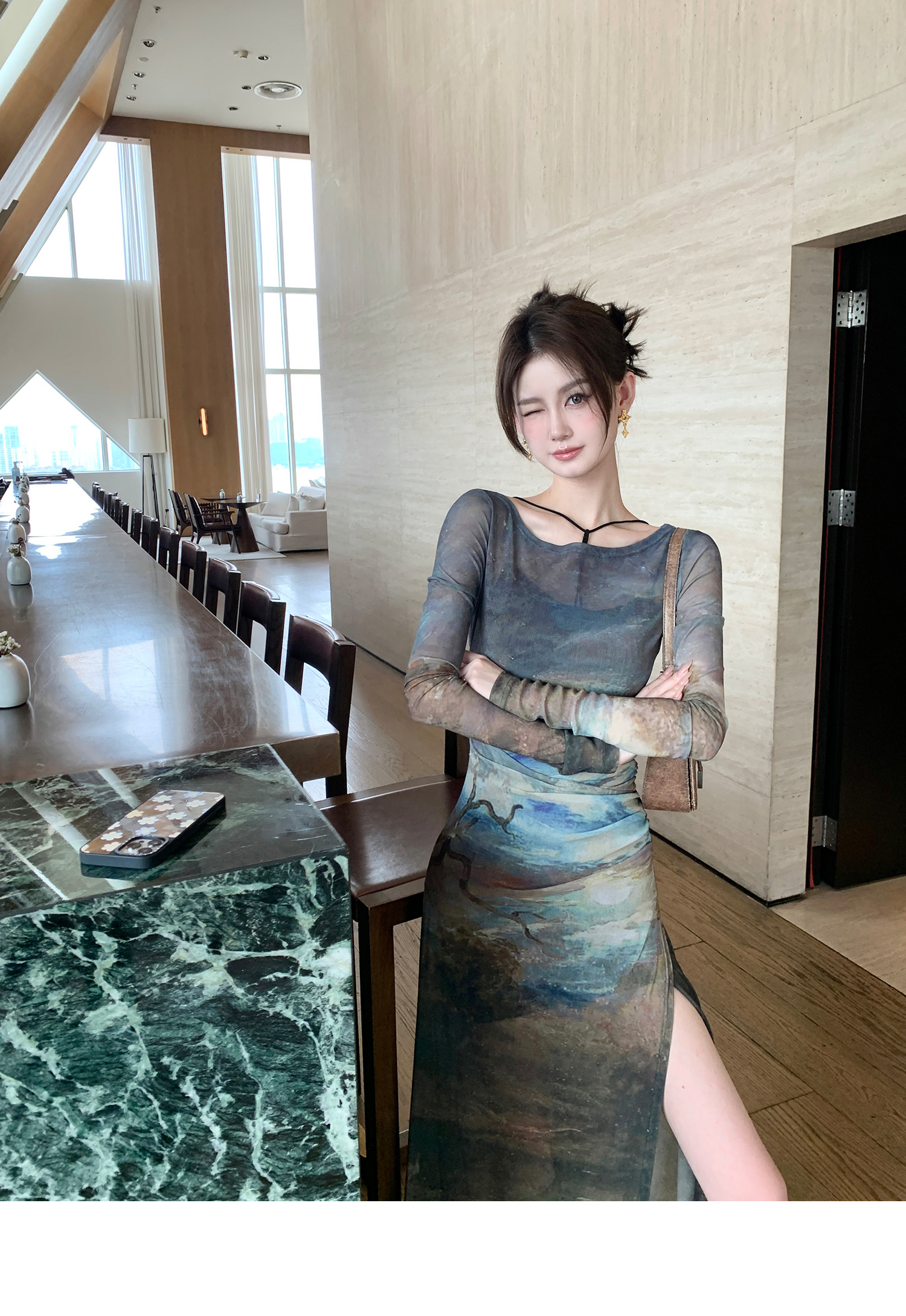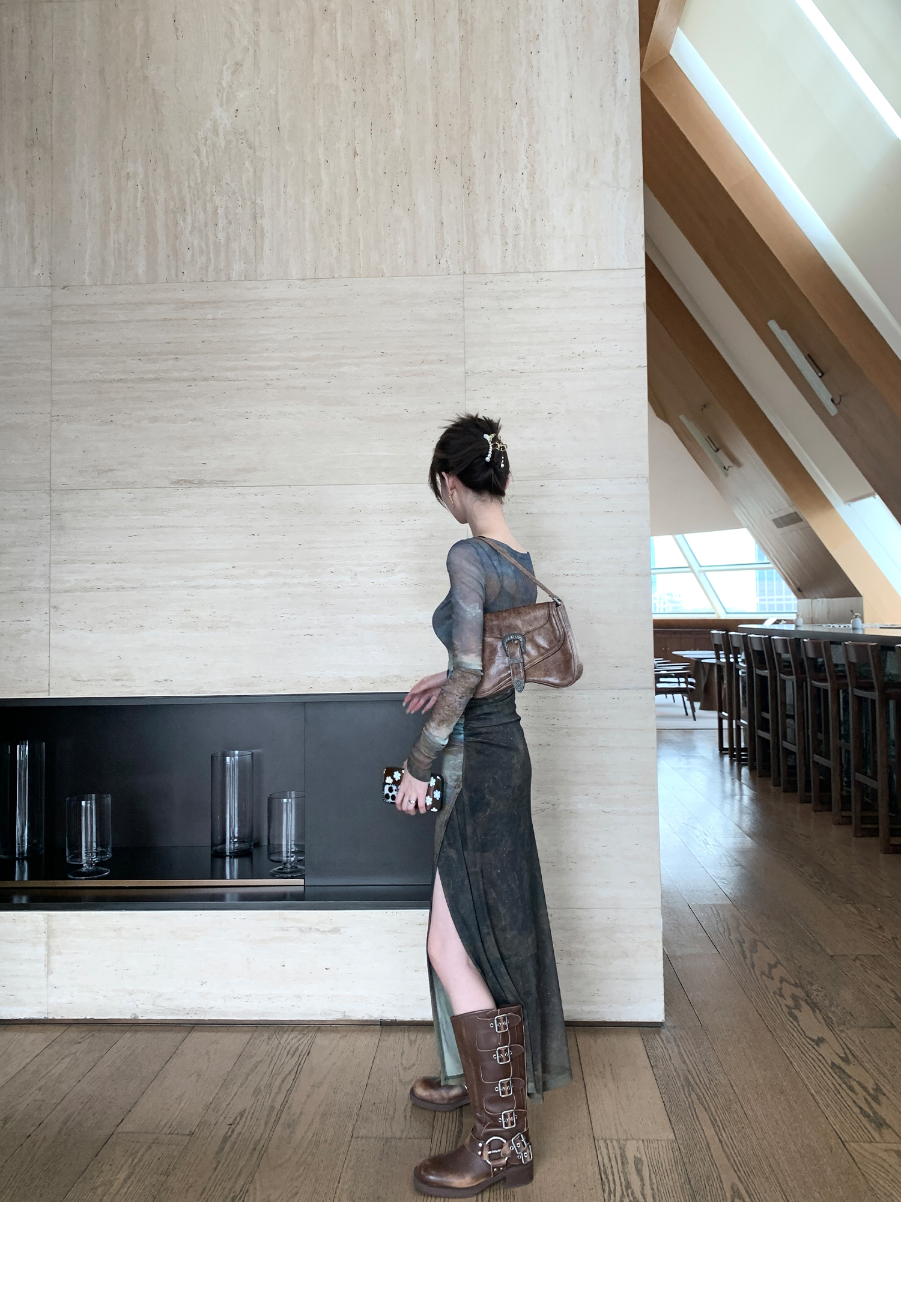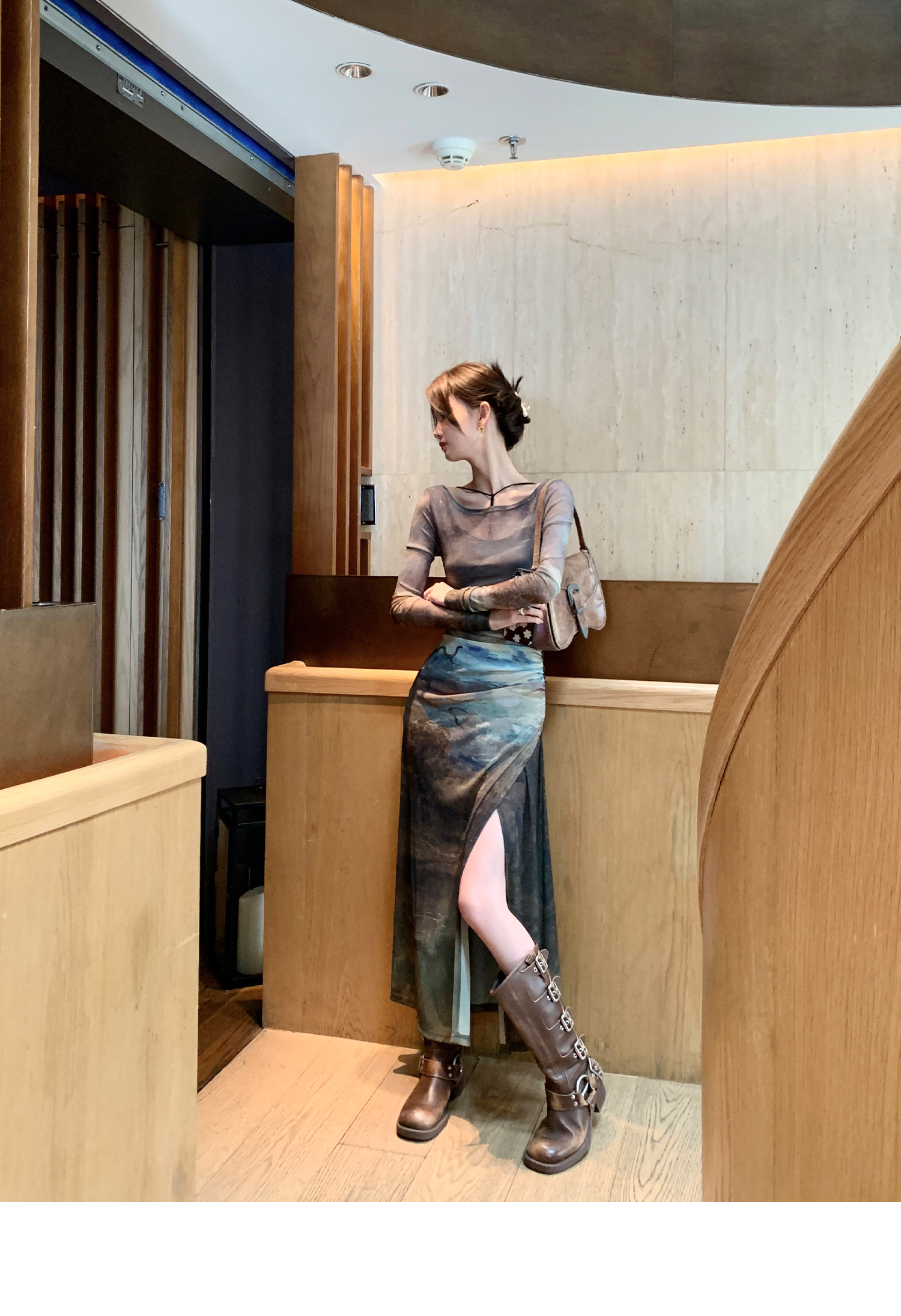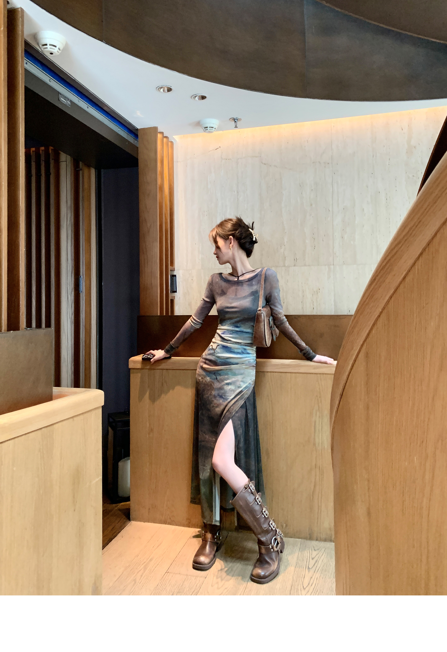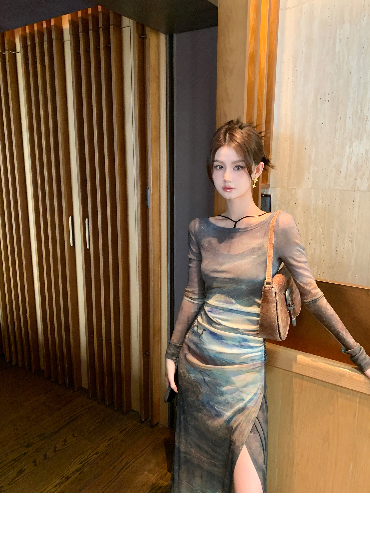 NIMOWANG【日落洋裝】吊帶兩件套長裙女秋季高級感辣妹長袖裙子