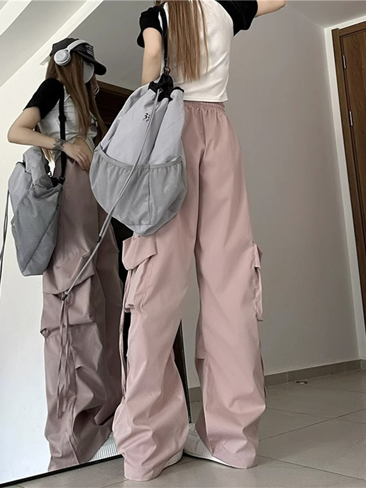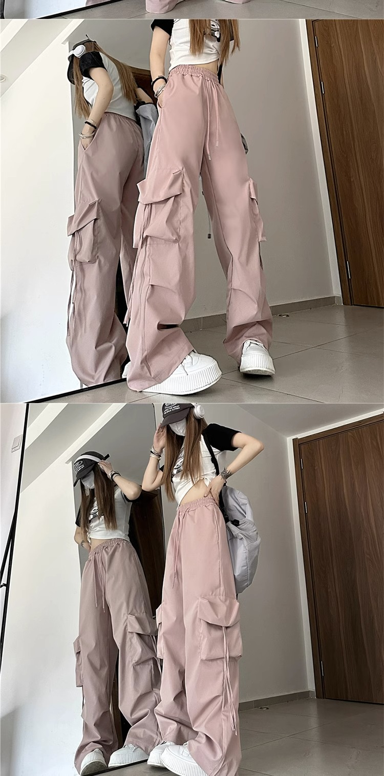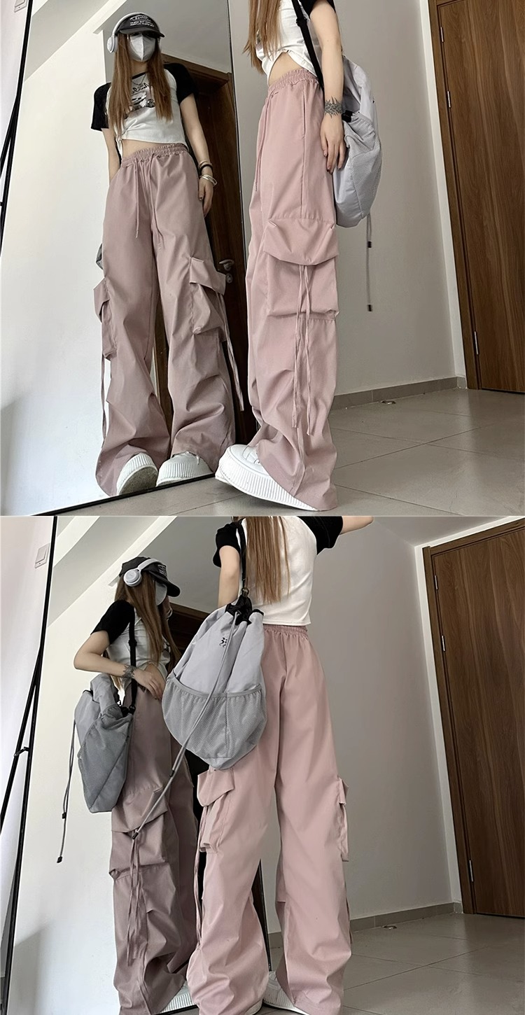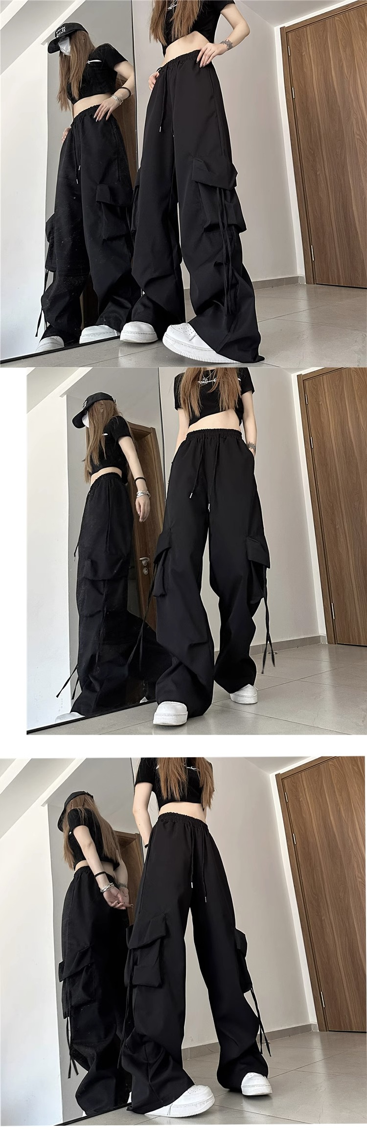 美式黑色高腰直筒工裝褲女夏季垂感寬鬆闊腿褲小個子休閒拖地褲子