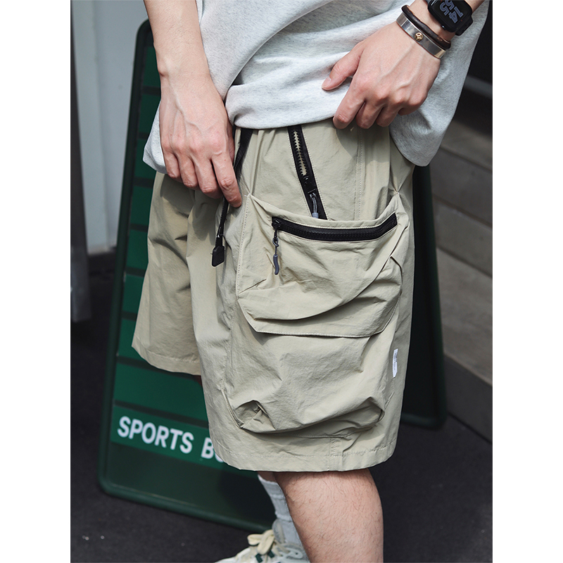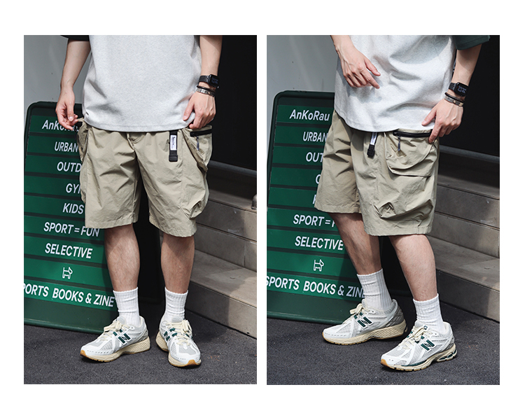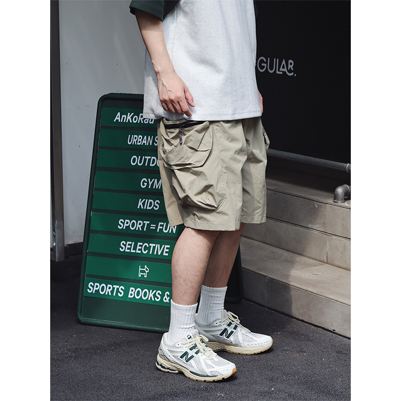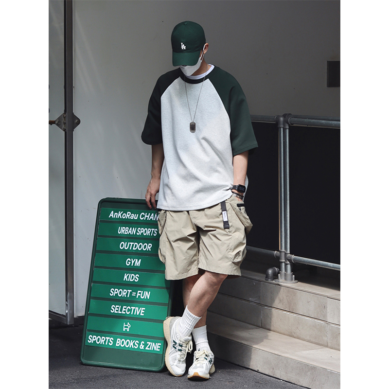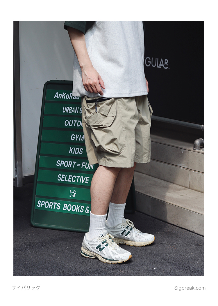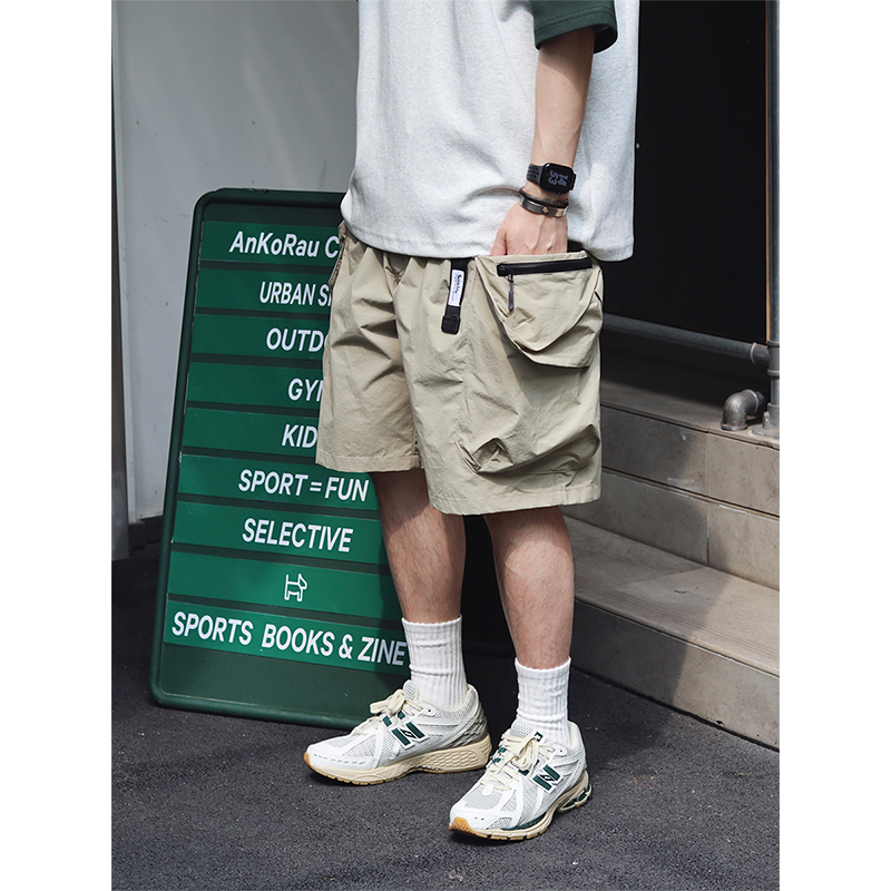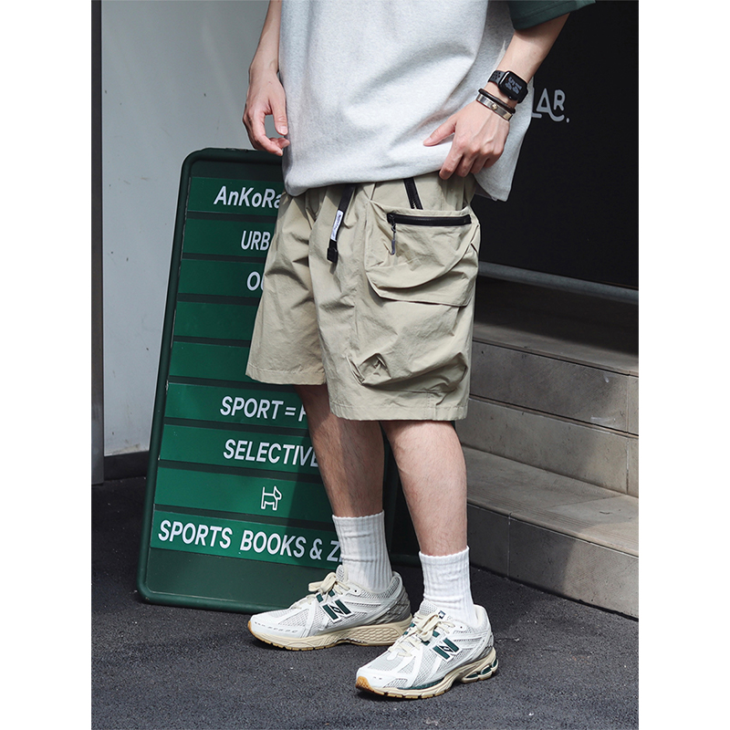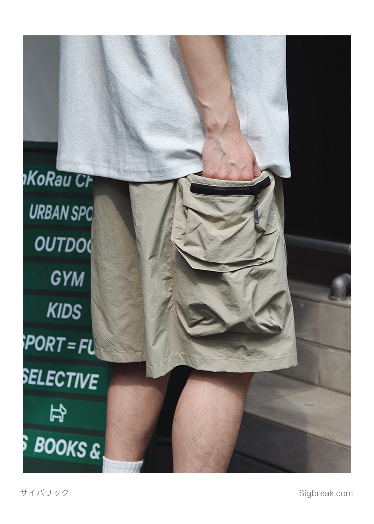 Sigbreak日系cityboy夏季工裝休閒鬆緊腰帶多口袋寬鬆機能短褲男