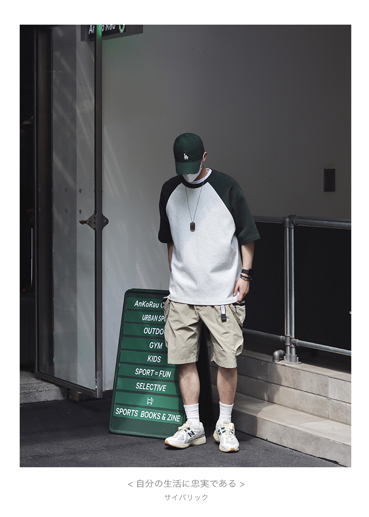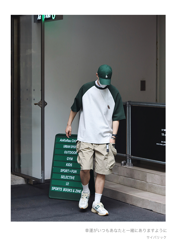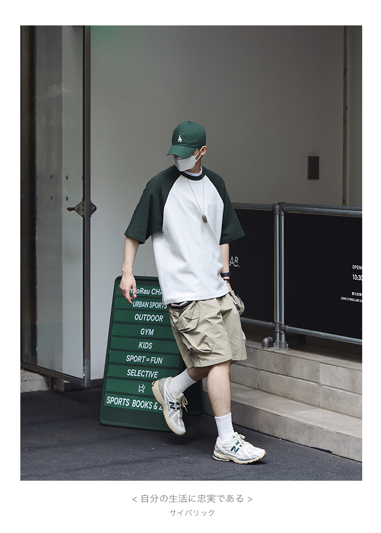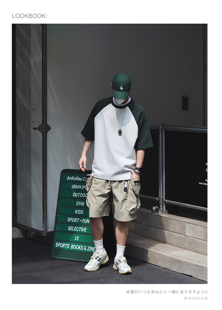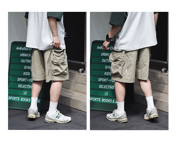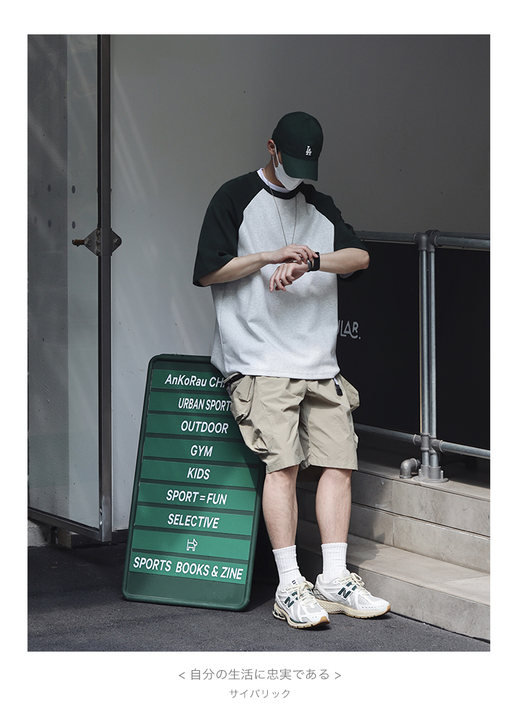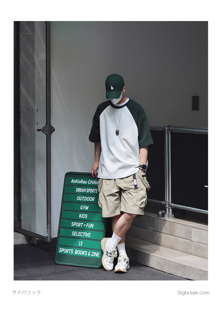 Sigbreak日系cityboy夏季工裝休閒鬆緊腰帶多口袋寬鬆機能短褲男