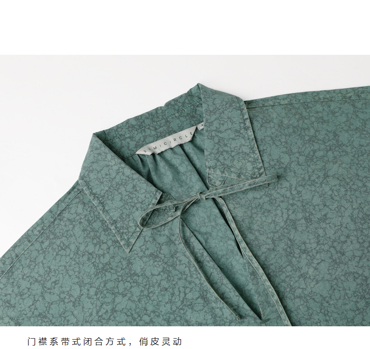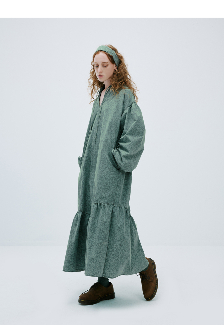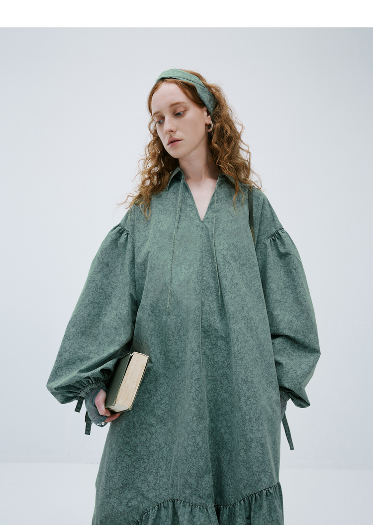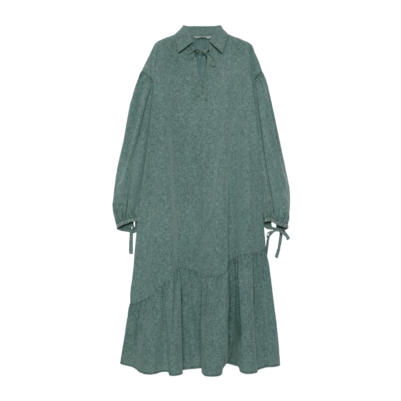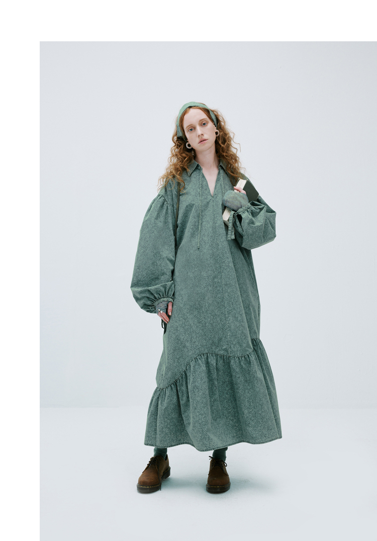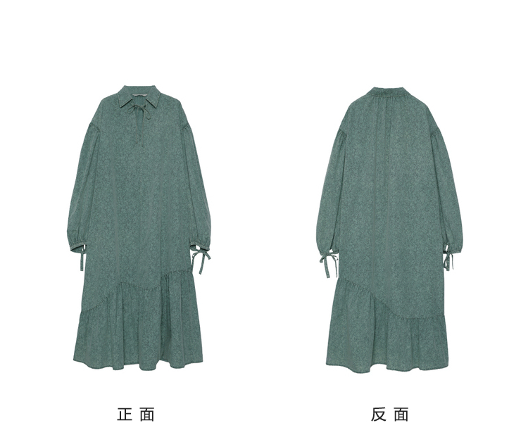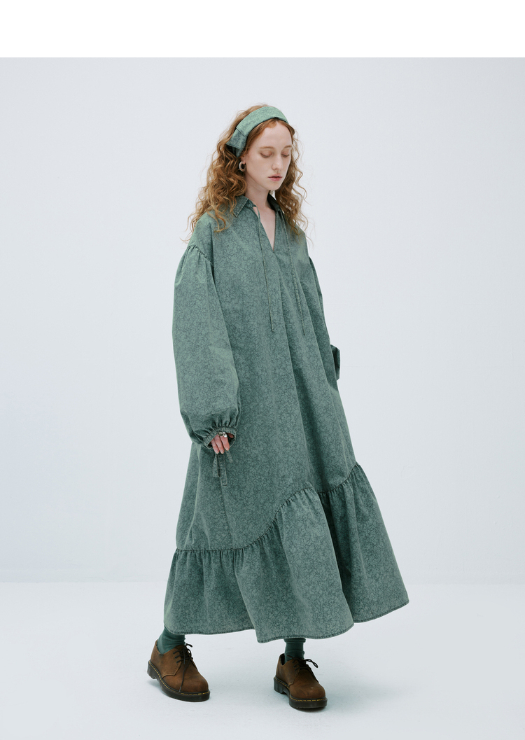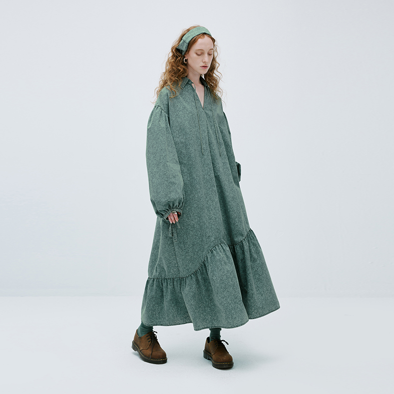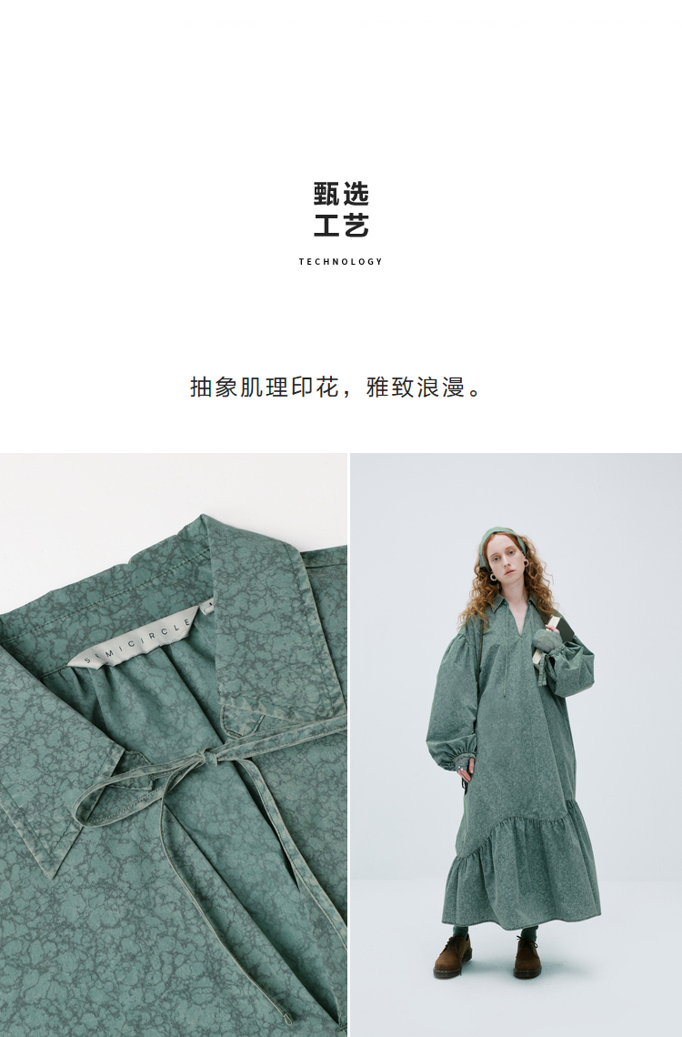 成衣水洗半圓原創設計2023春季新款印花洋裝軟糯親膚褶皺下擺