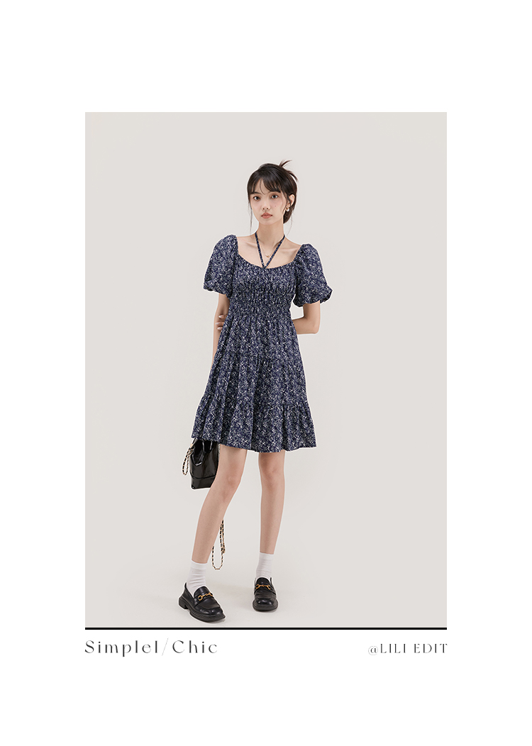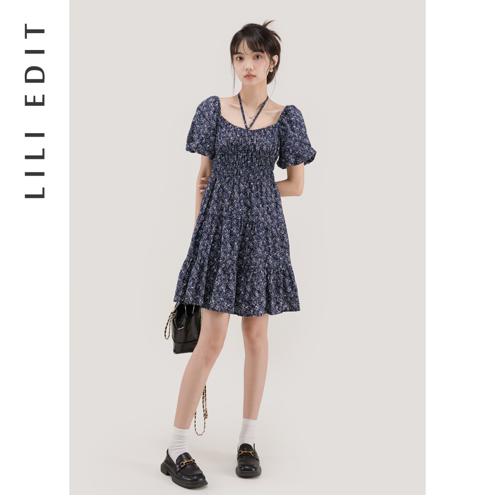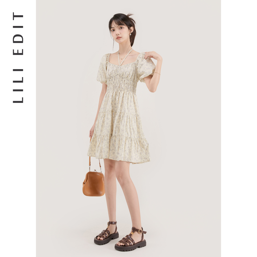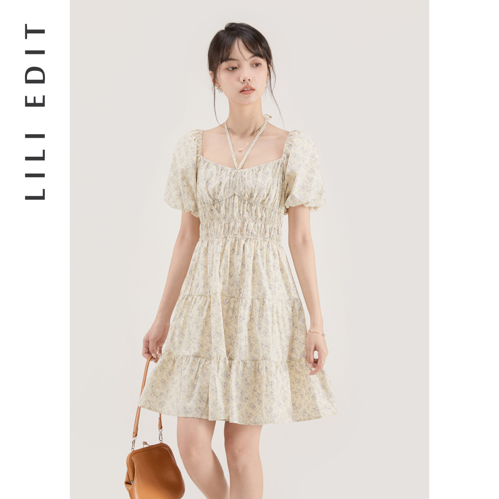 LILI EDIT/法式茶歇裙印花長裙夏季女方領復古感氣質碎花洋裝