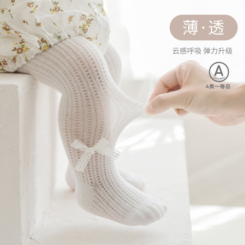 新生儿宝宝打底裤夏季超薄镂空网眼蝴蝶结公主女童白色舞蹈连裤袜
