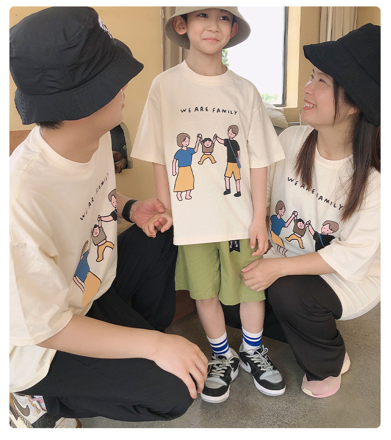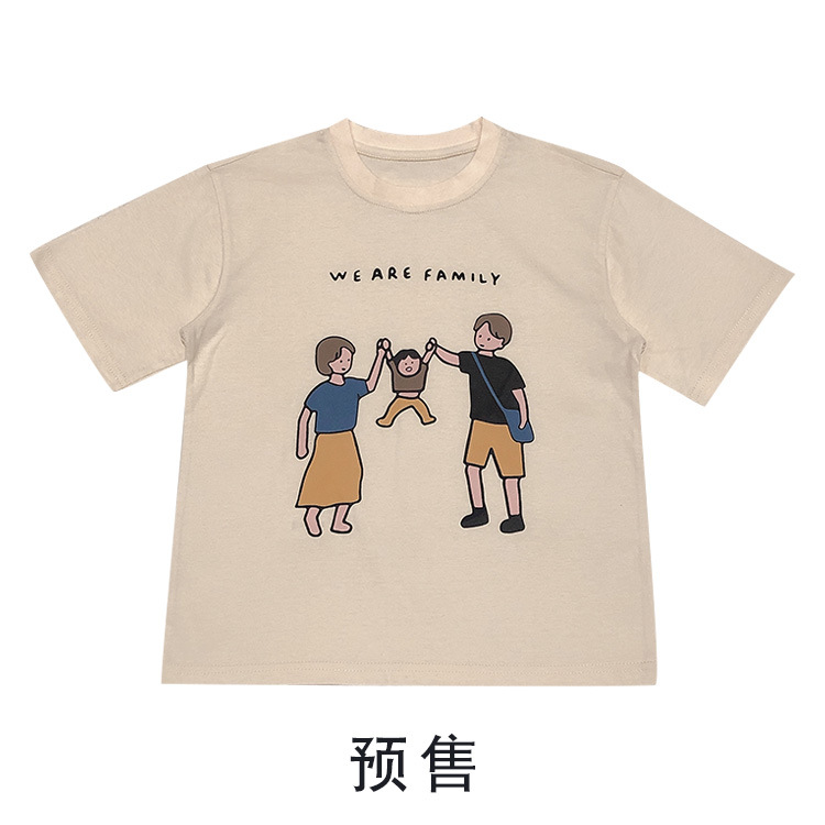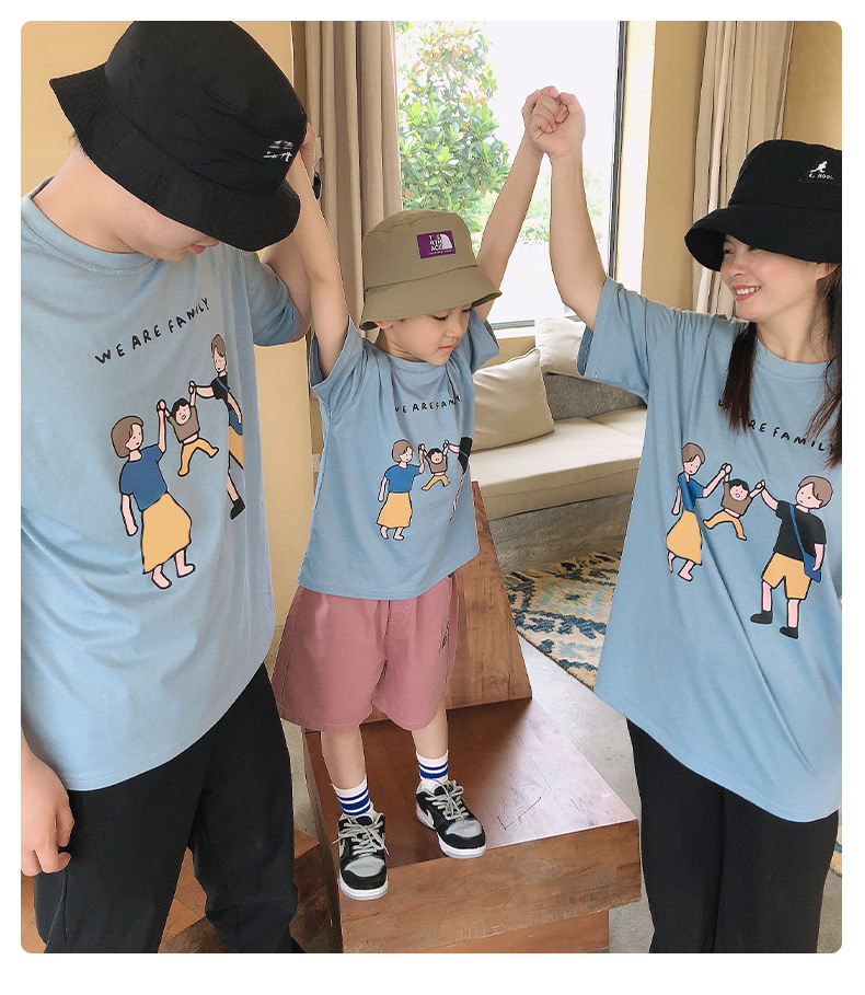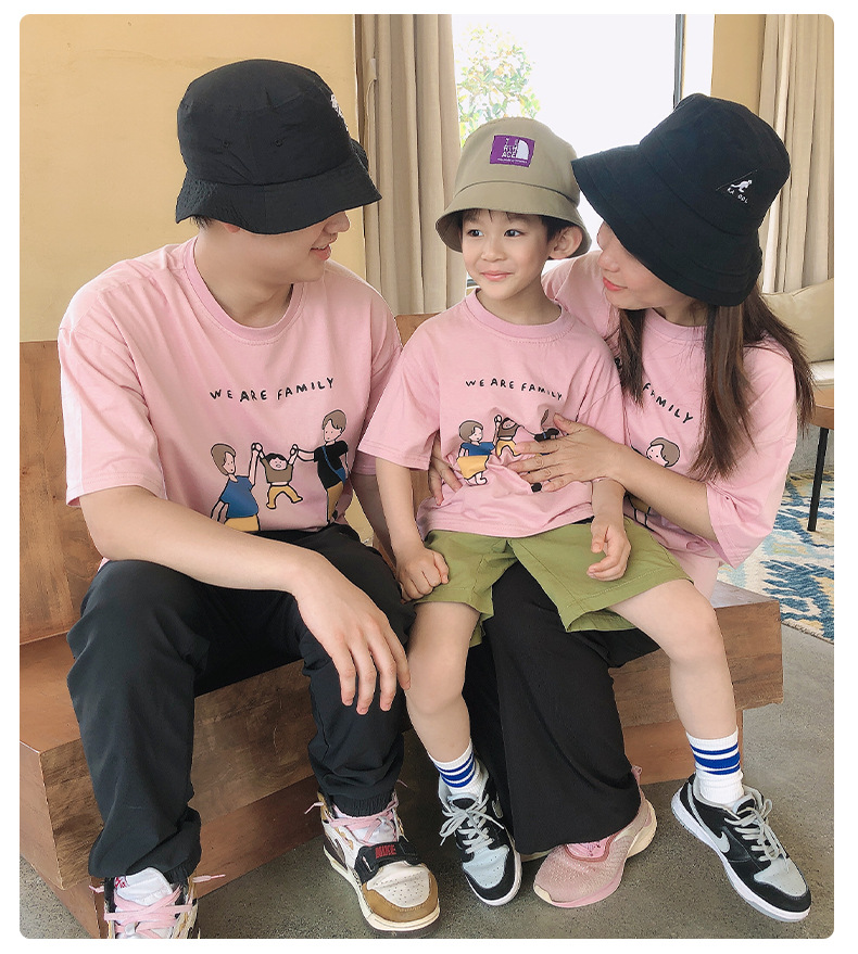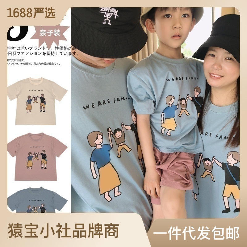 亲子装夏装2022新款一家三口短袖T恤日系旅游家庭装厂家一件代发