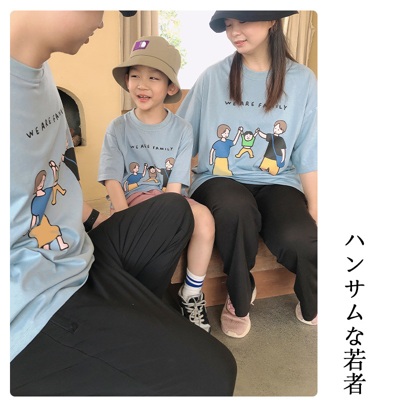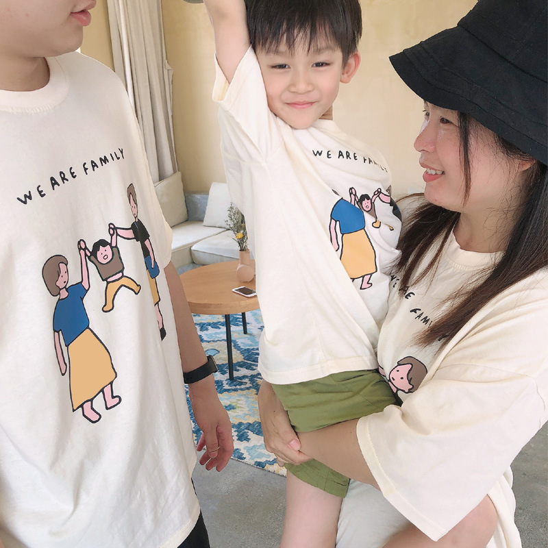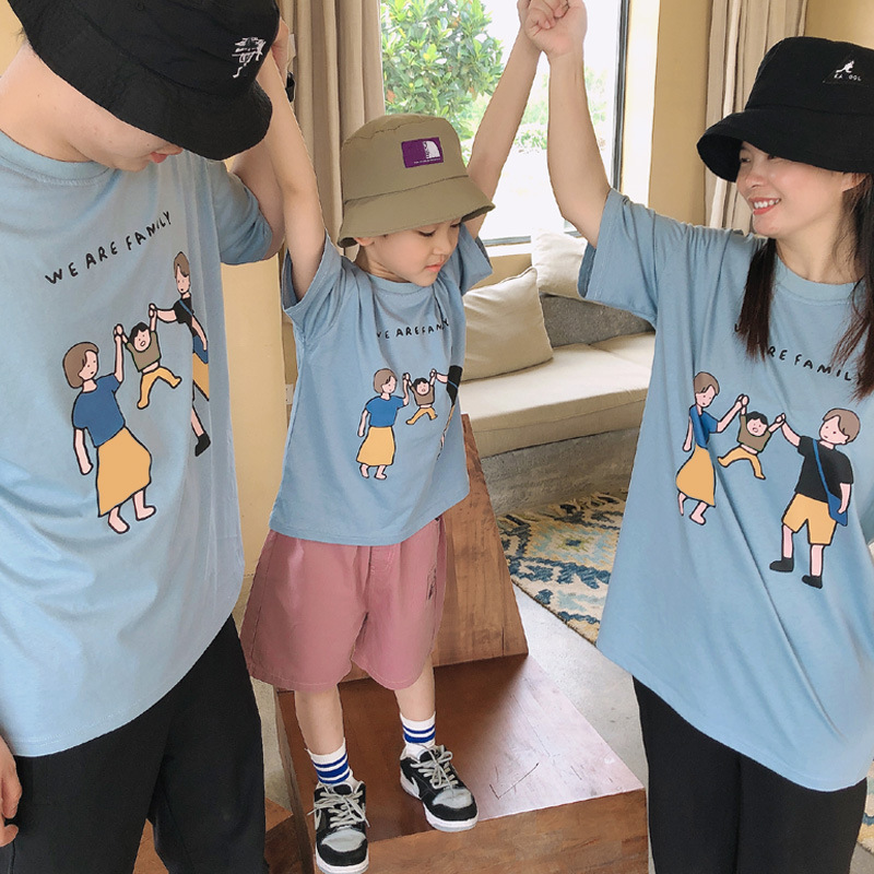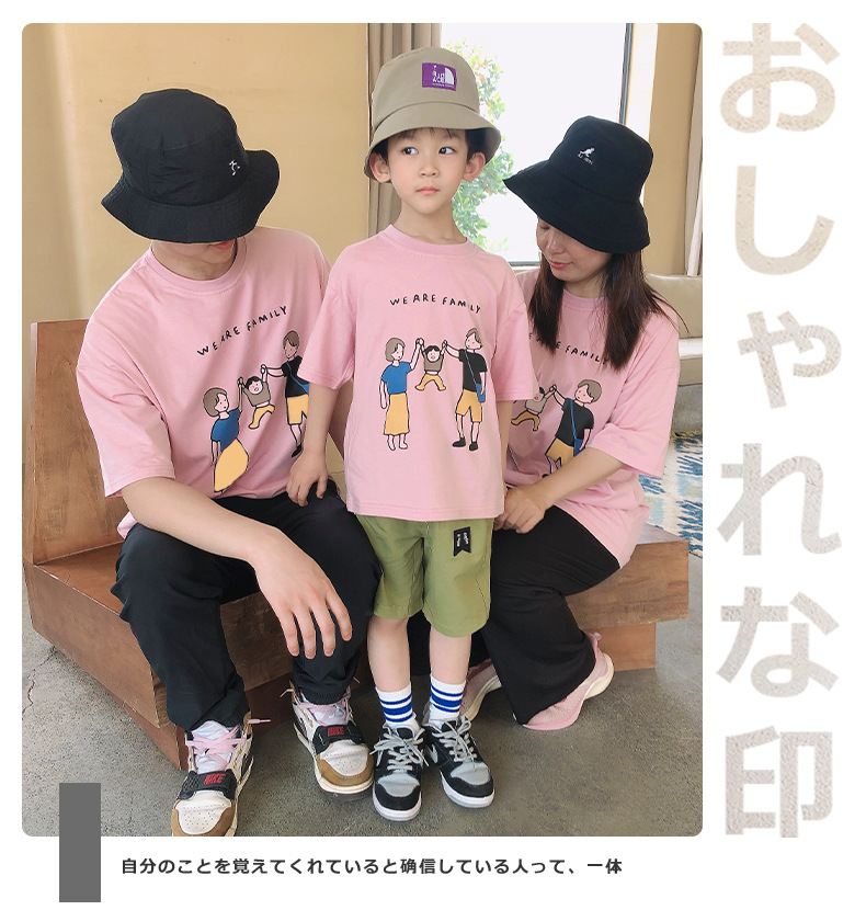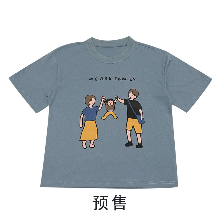 亲子装夏装2022新款一家三口短袖T恤日系旅游家庭装厂家一件代发