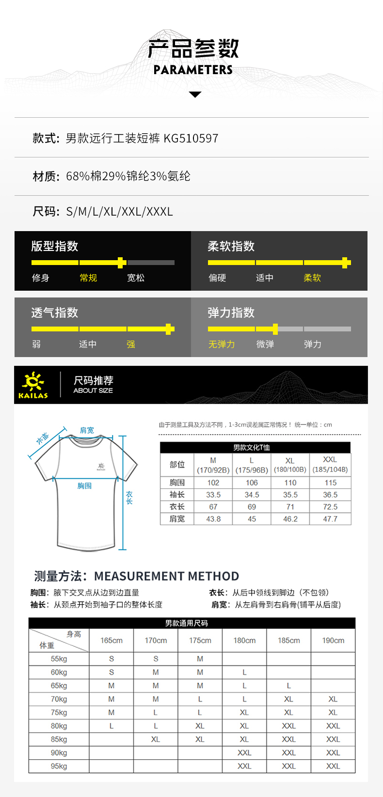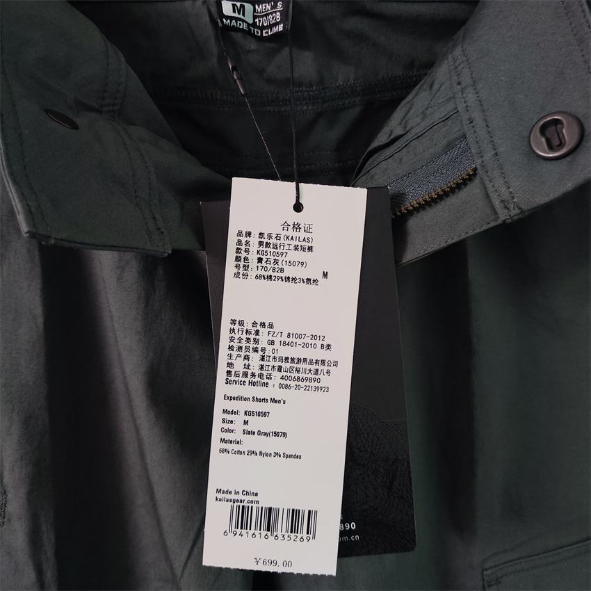 KAILAS/凱樂石戶外運動男款遠行工裝短褲透氣休閒短褲KG10597