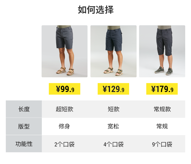 迪卡儂官方旗艦店褲子男夏季戶外休閒褲透氣彈力速乾大尺碼短褲ODT2