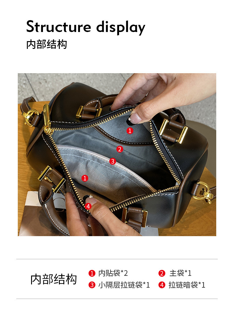包内部结构 拉链暗袋,手机袋,证件袋,夹层拉链袋