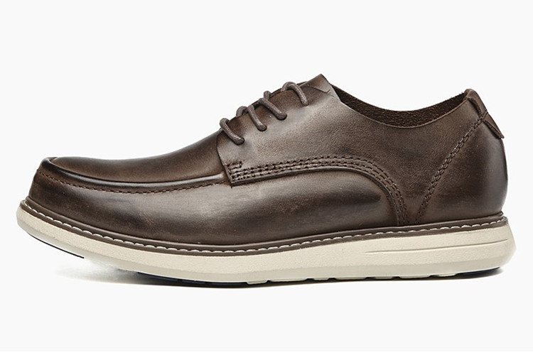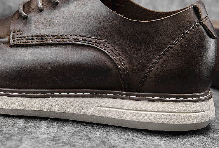 做旧擦色复古风格、强烈的皮质感、耐磨橡胶(鞋底蓝色部分)+EVA发泡组合大底、