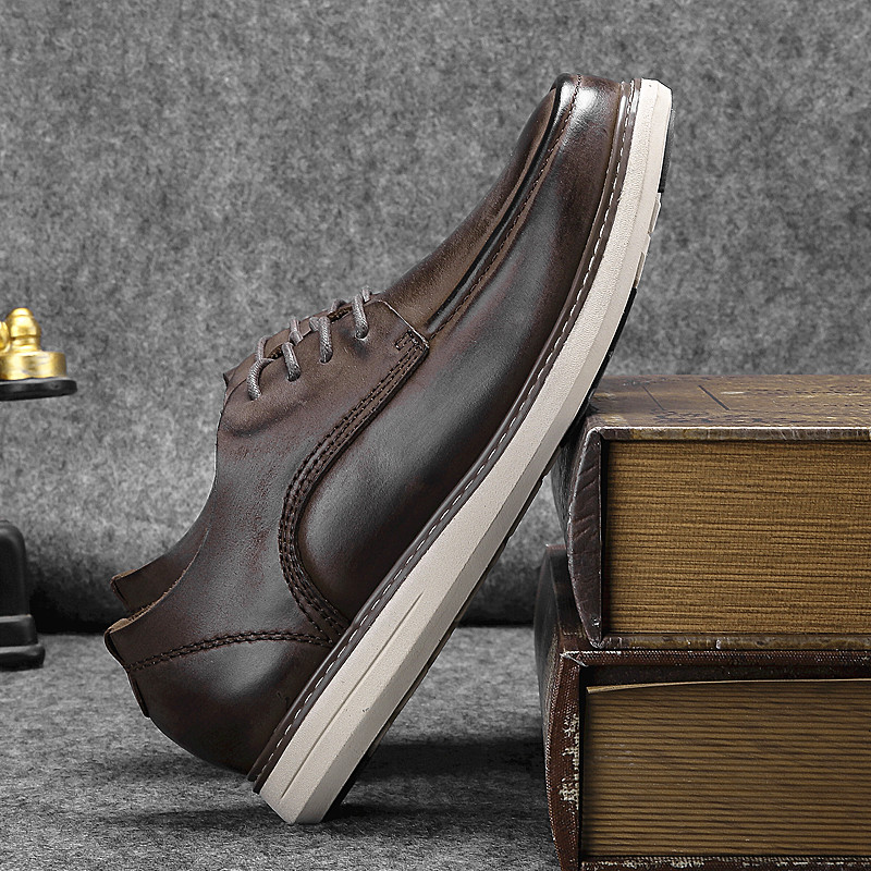 外貿尾單中低幫男鞋春秋真皮英倫擦色商務休閒鞋帆船鞋工裝鞋板鞋