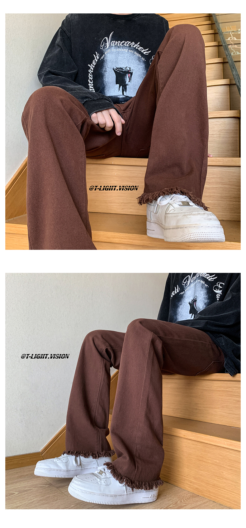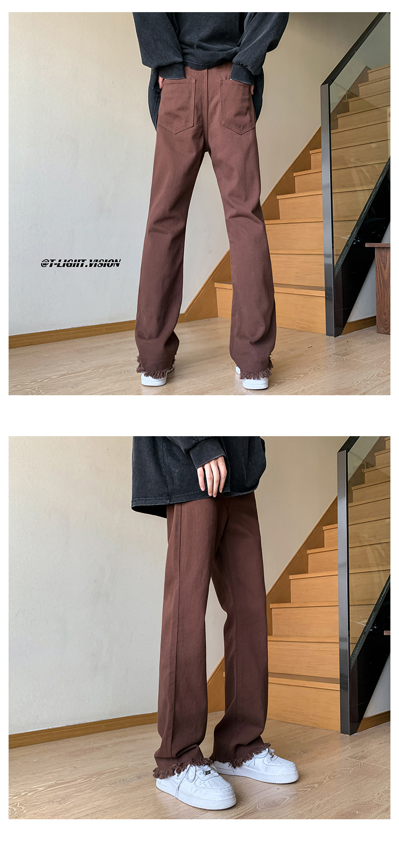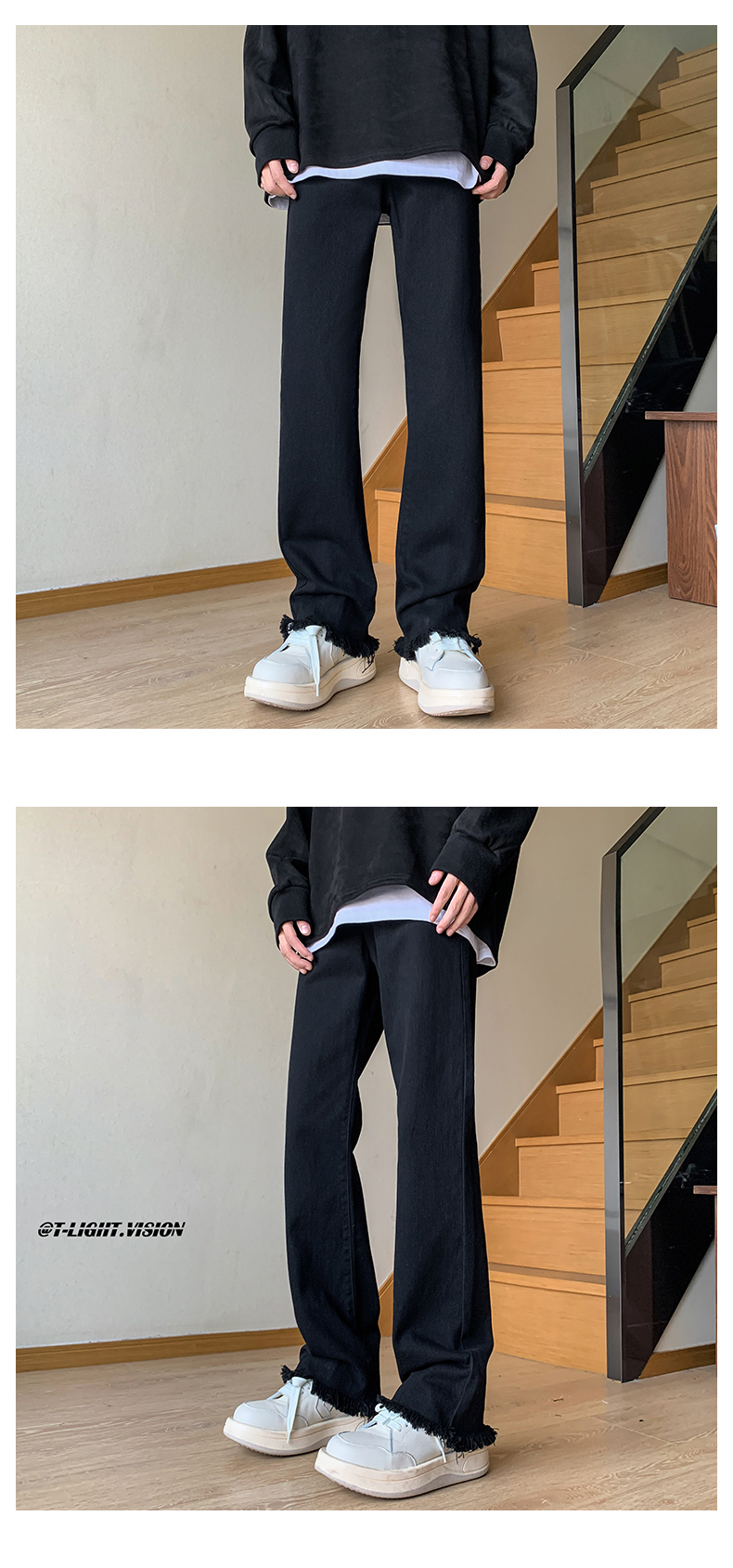 歐美hiphop褲子設計感純黑色毛邊牛仔褲美式高街vibe修身微喇叭褲潮