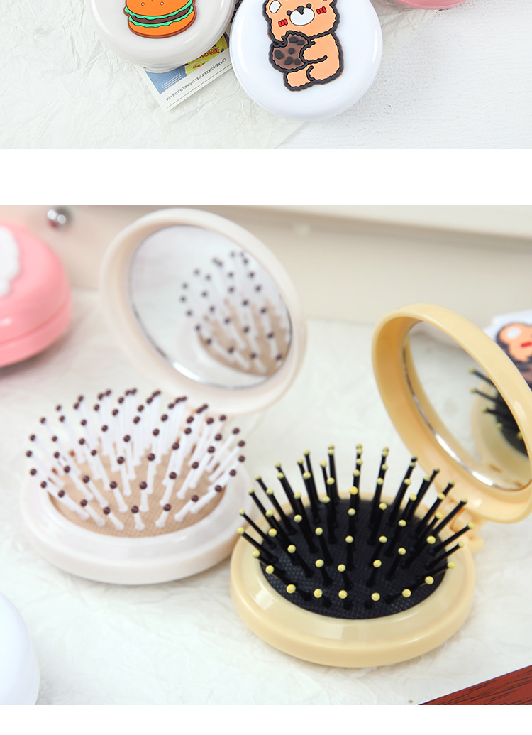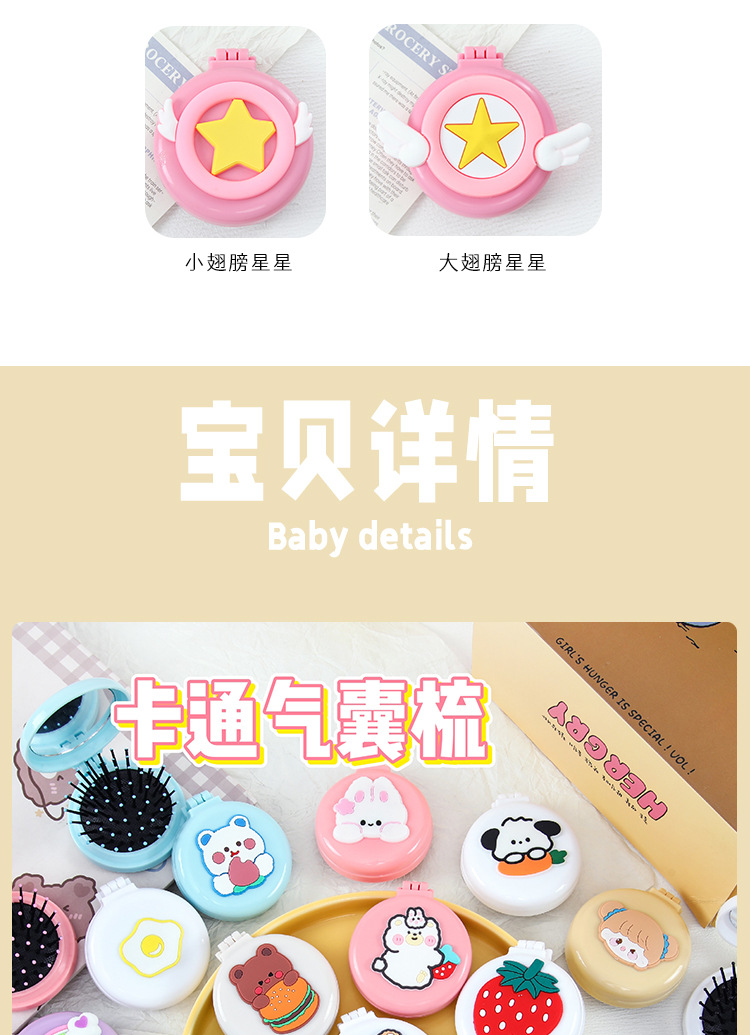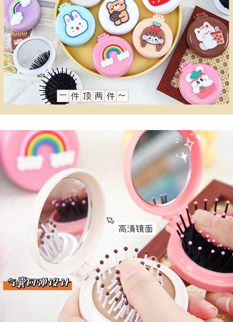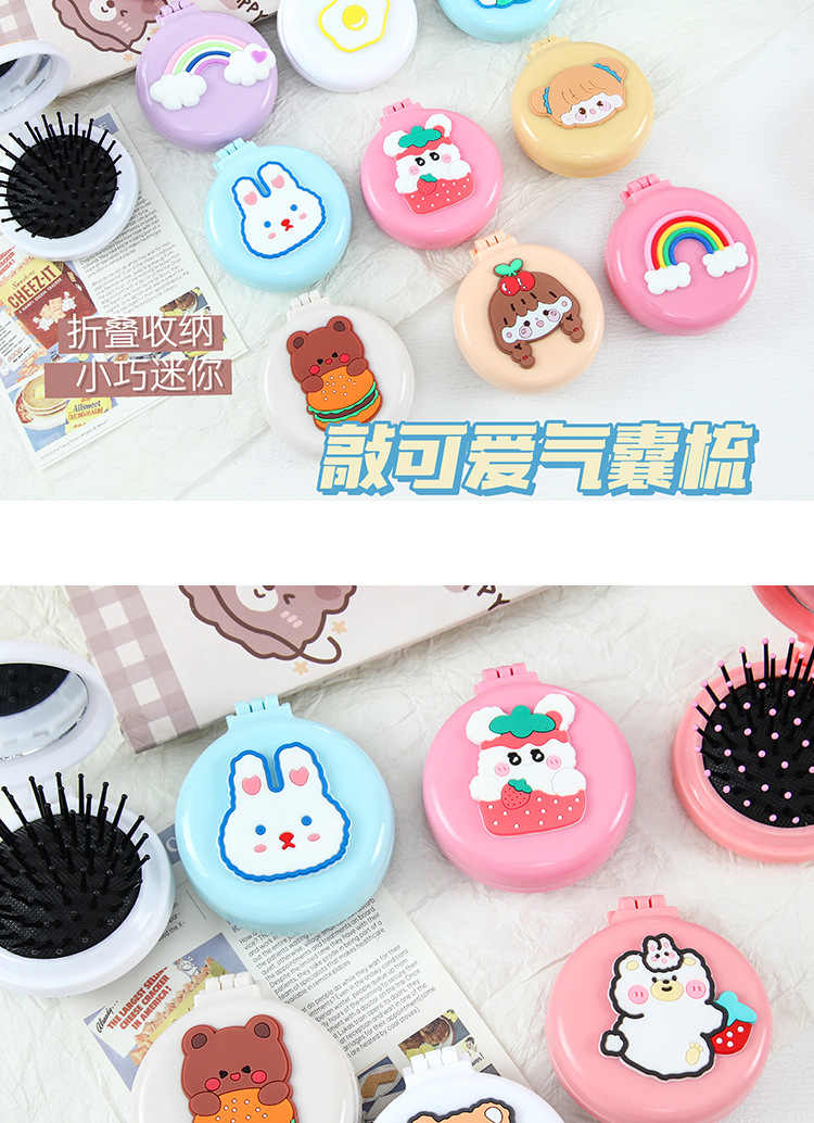 港升卡通折叠气囊梳随身便携迷你气垫梳可爱小梳子按摩梳镜子一体