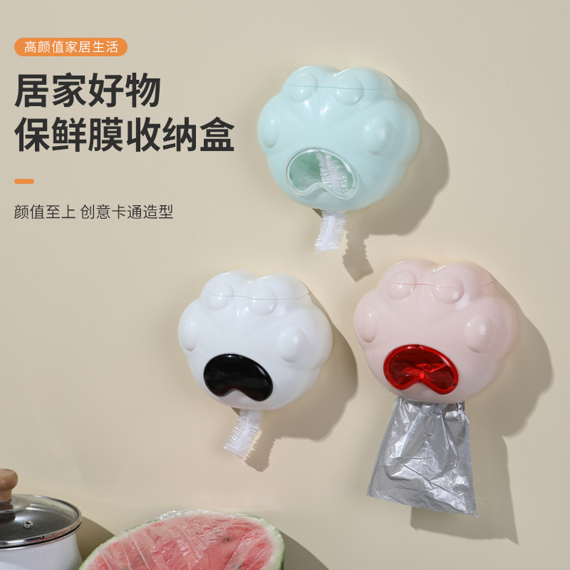 猫爪卡通保鲜膜套收纳盒壁挂式厨房置物架水槽过滤网鞋套整理盒