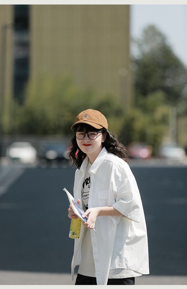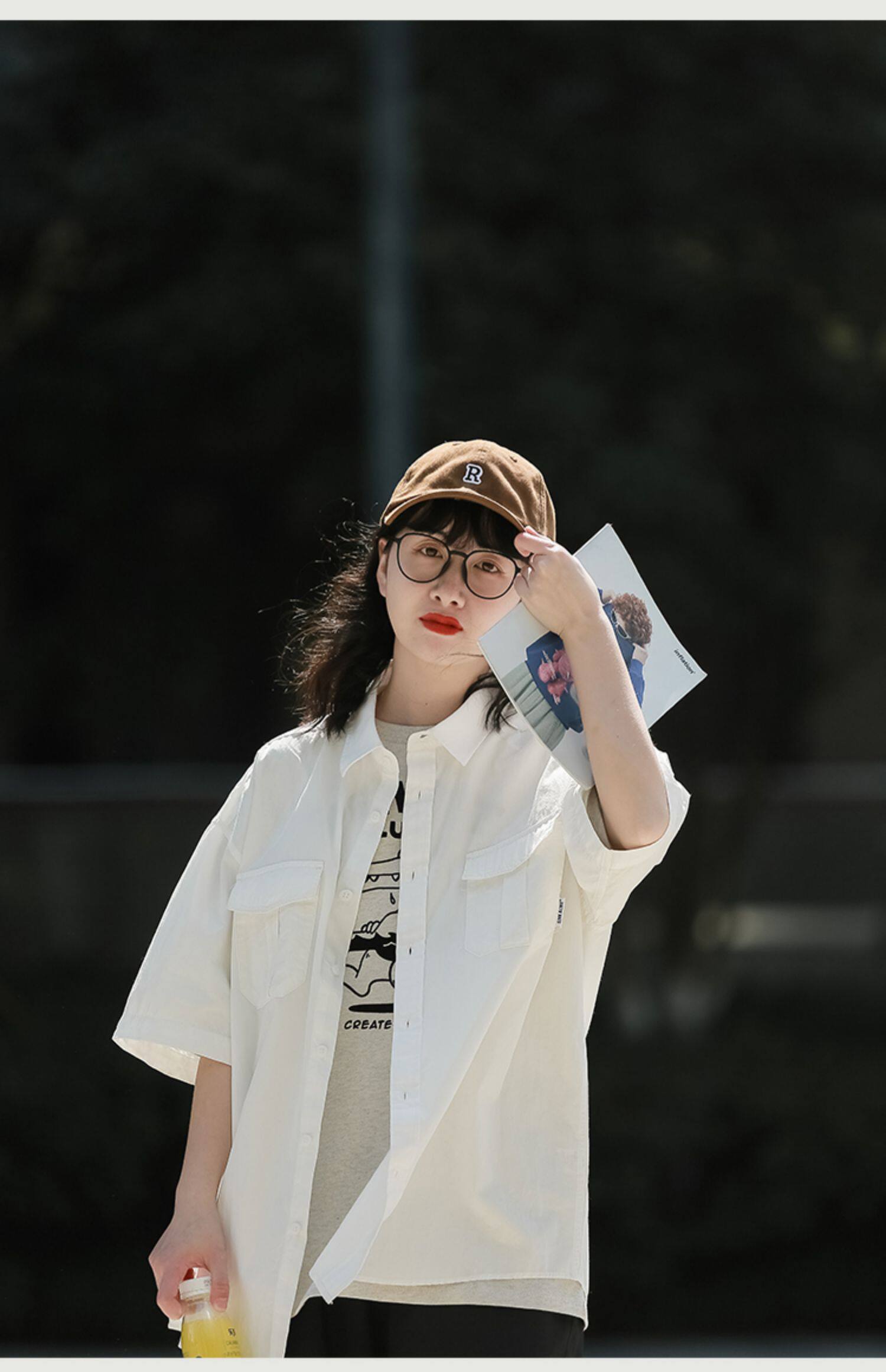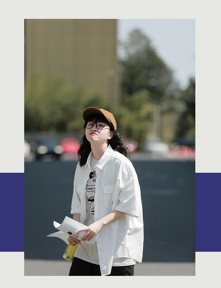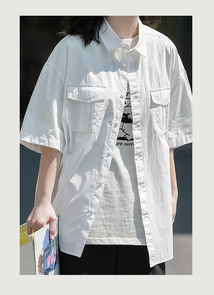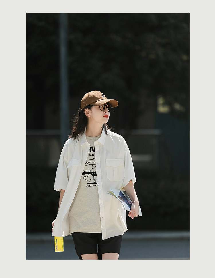 夏季短袖襯衫女日系cityboy復古休閒白襯衣潮流寬鬆工裝半袖上衣