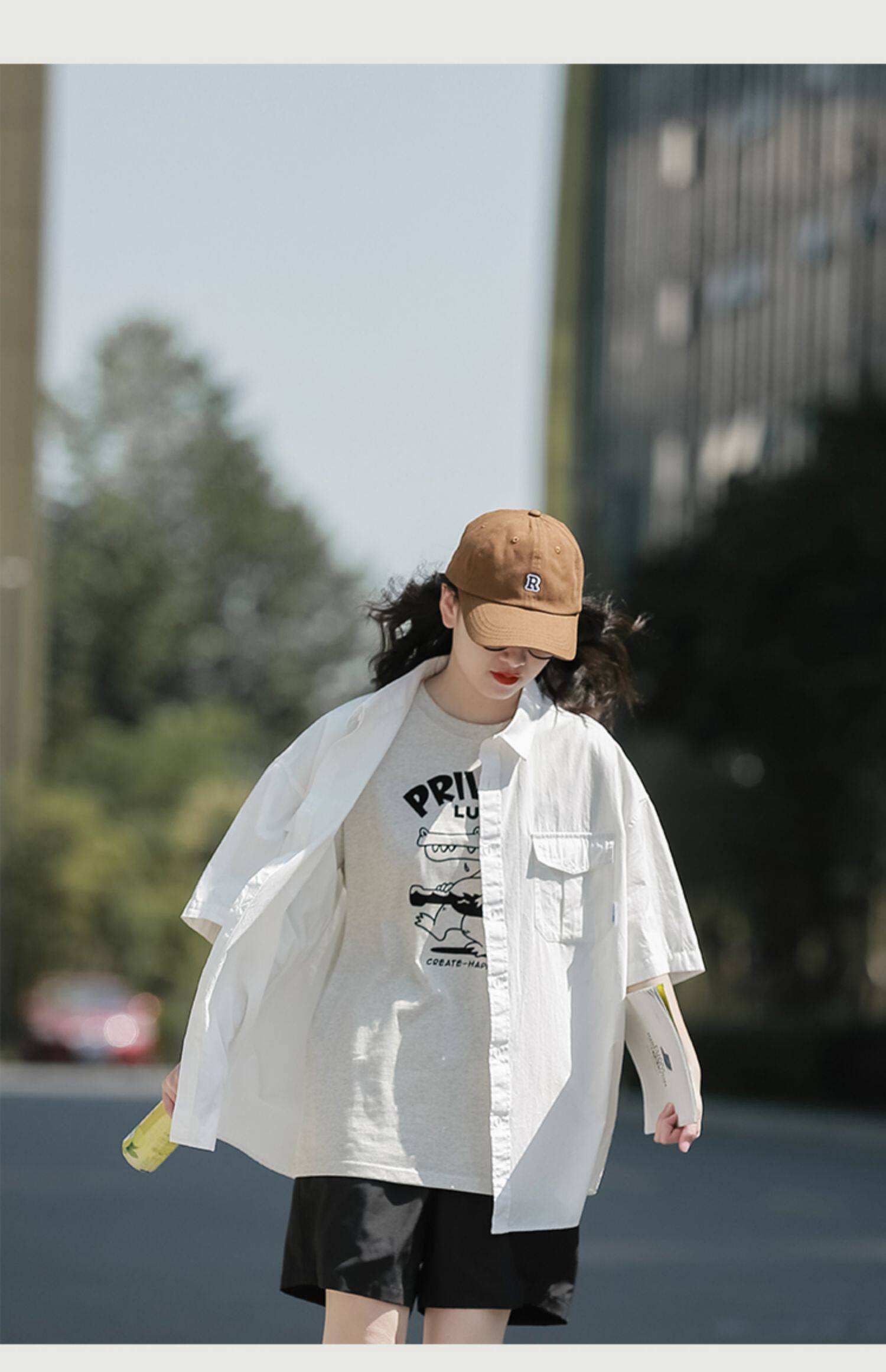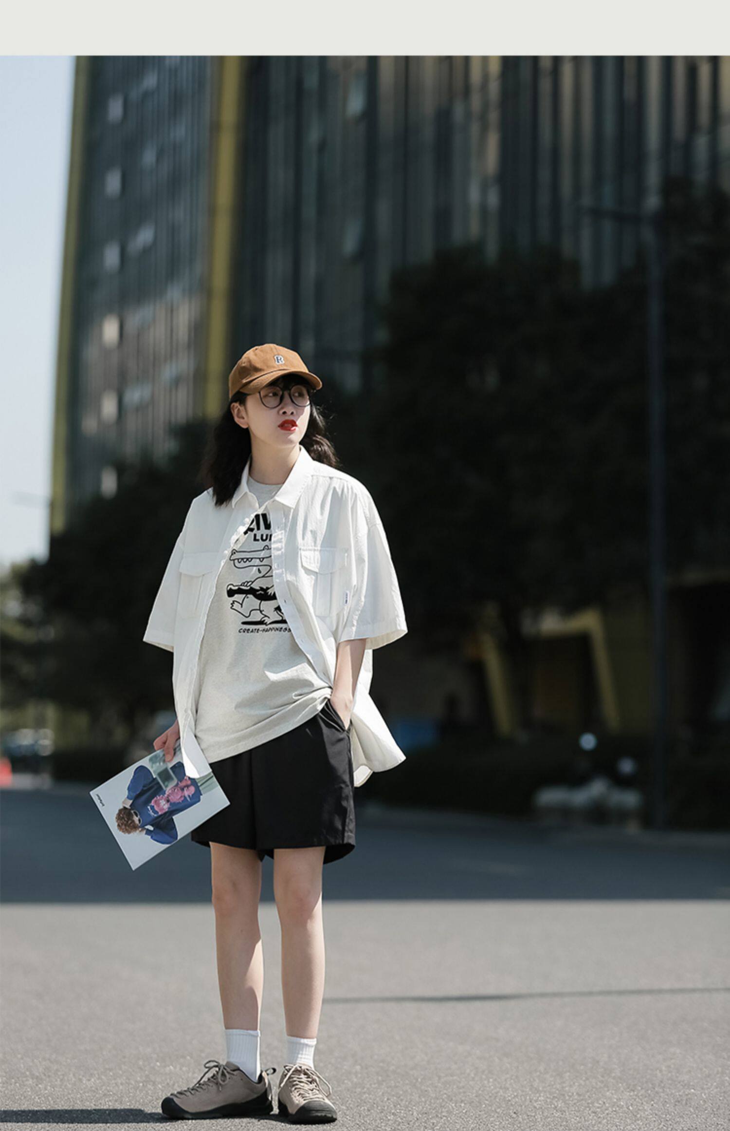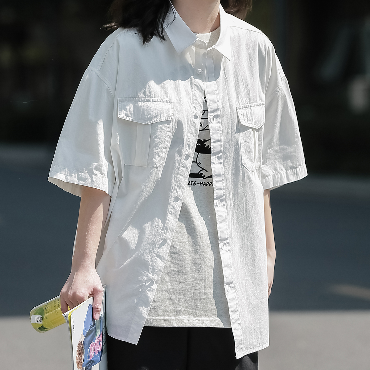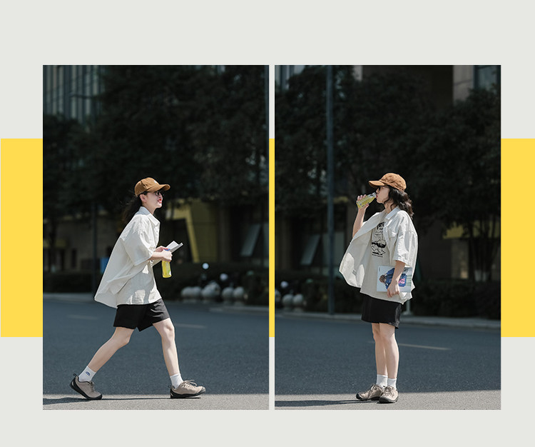 夏季短袖襯衫女日系cityboy復古休閒白襯衣潮流寬鬆工裝半袖上衣