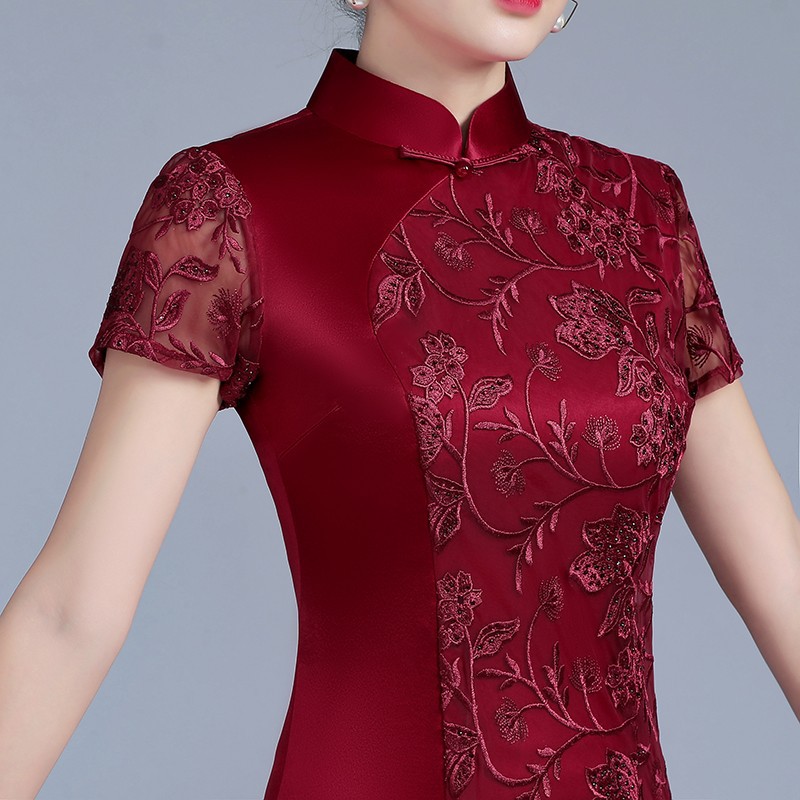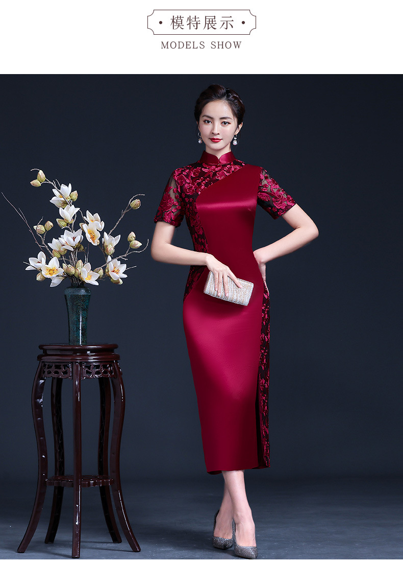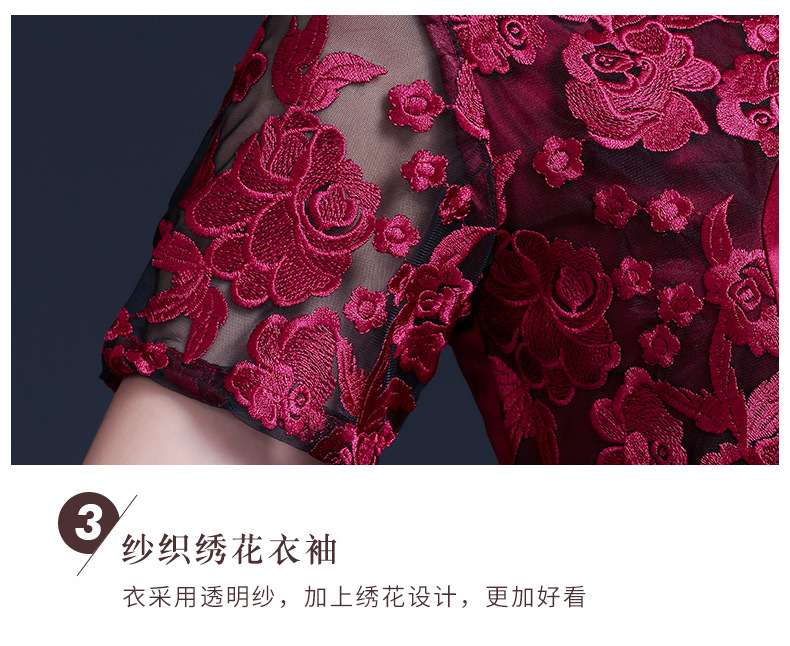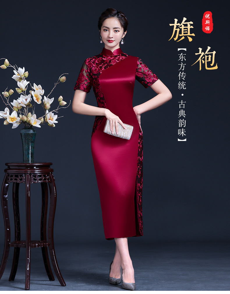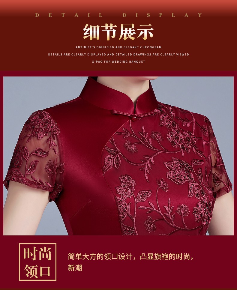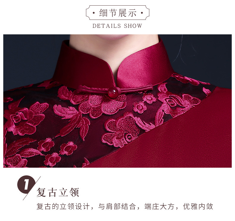 2023年新款复古改良旗袍 红色连衣裙长款妈妈装婚宴中式礼服 旗袍