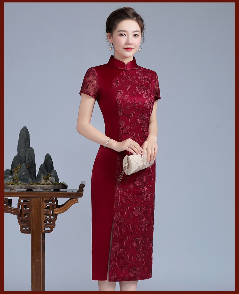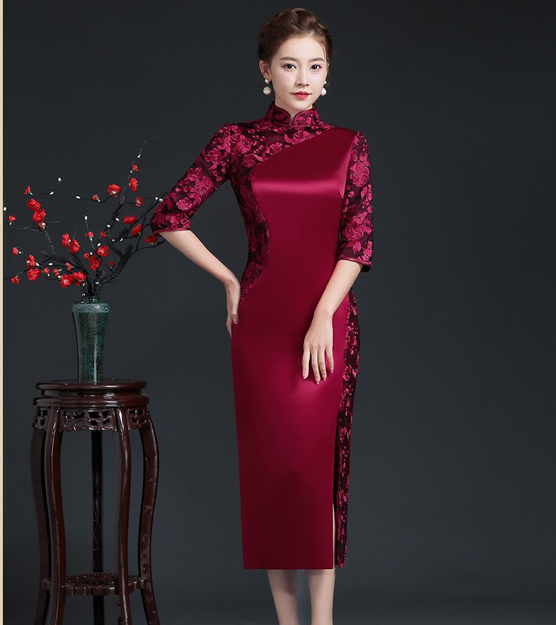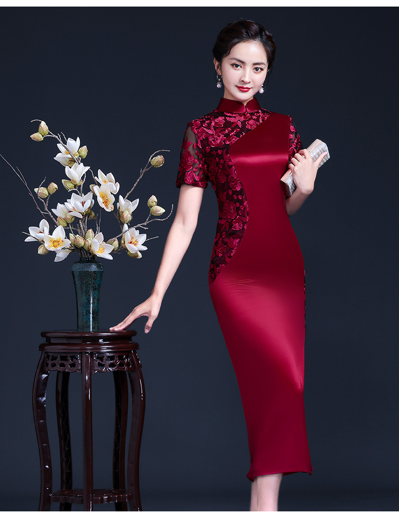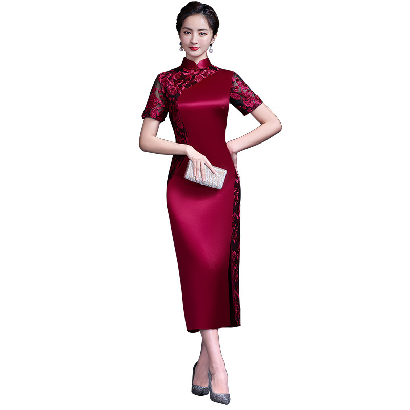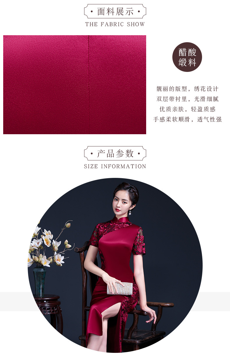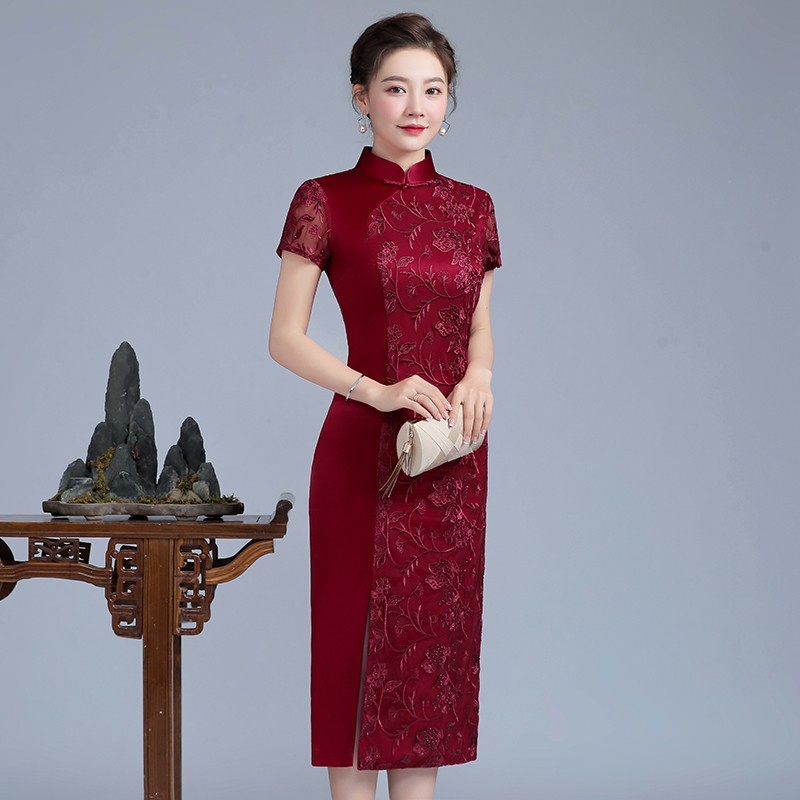 2023年新款复古改良旗袍 红色连衣裙长款妈妈装婚宴中式礼服 旗袍