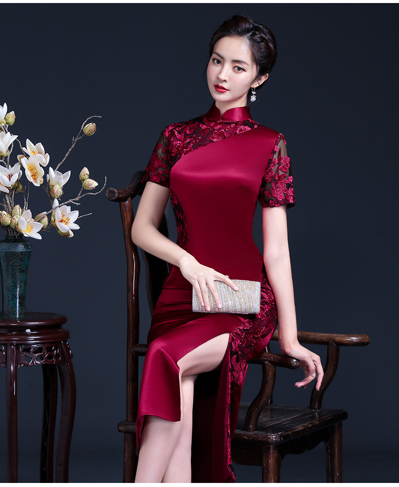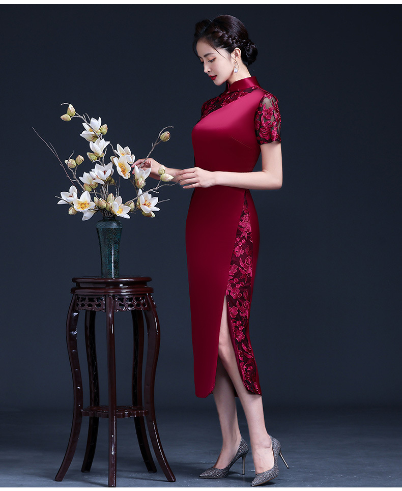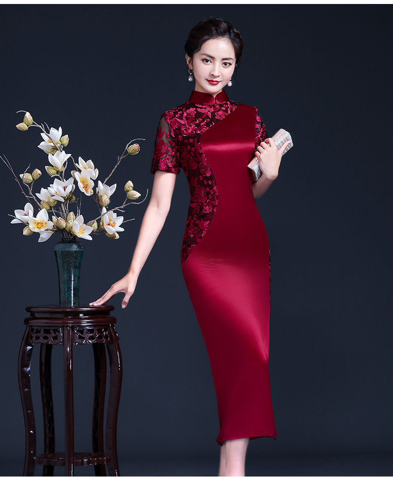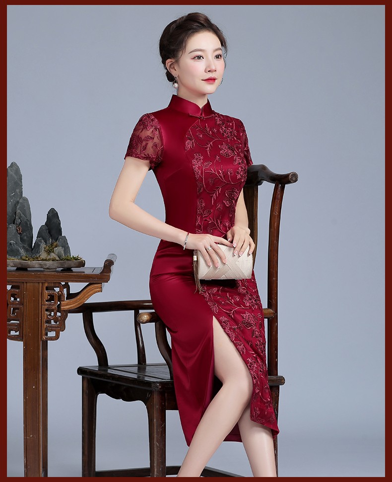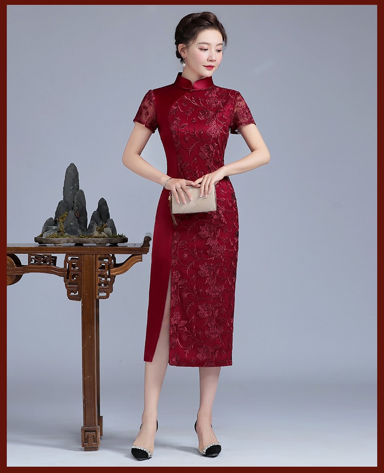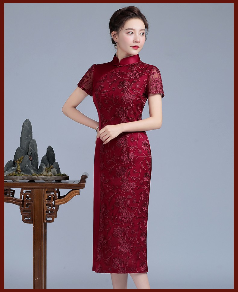 2023年新款复古改良旗袍 红色连衣裙长款妈妈装婚宴中式礼服 旗袍