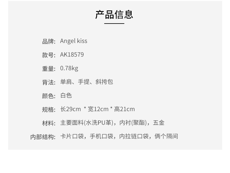 包内部结构 拉链暗袋,手机袋,证件袋,夹层拉链袋