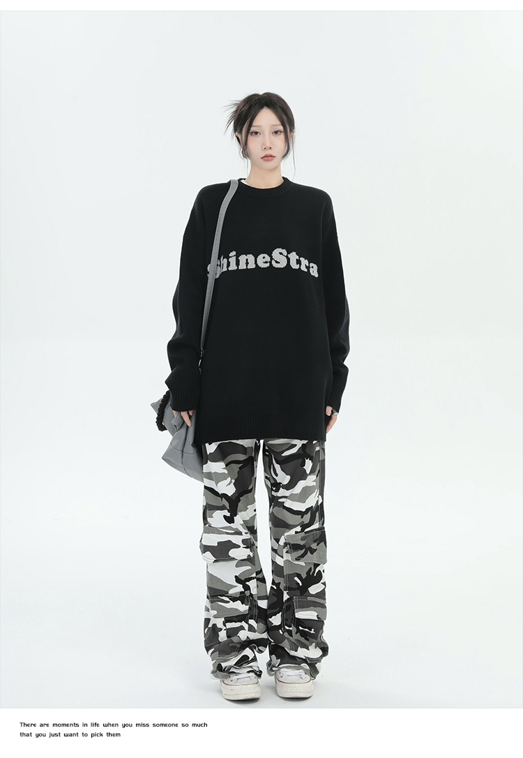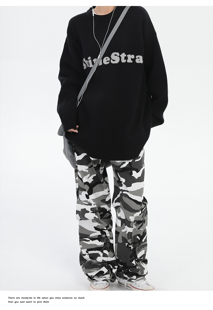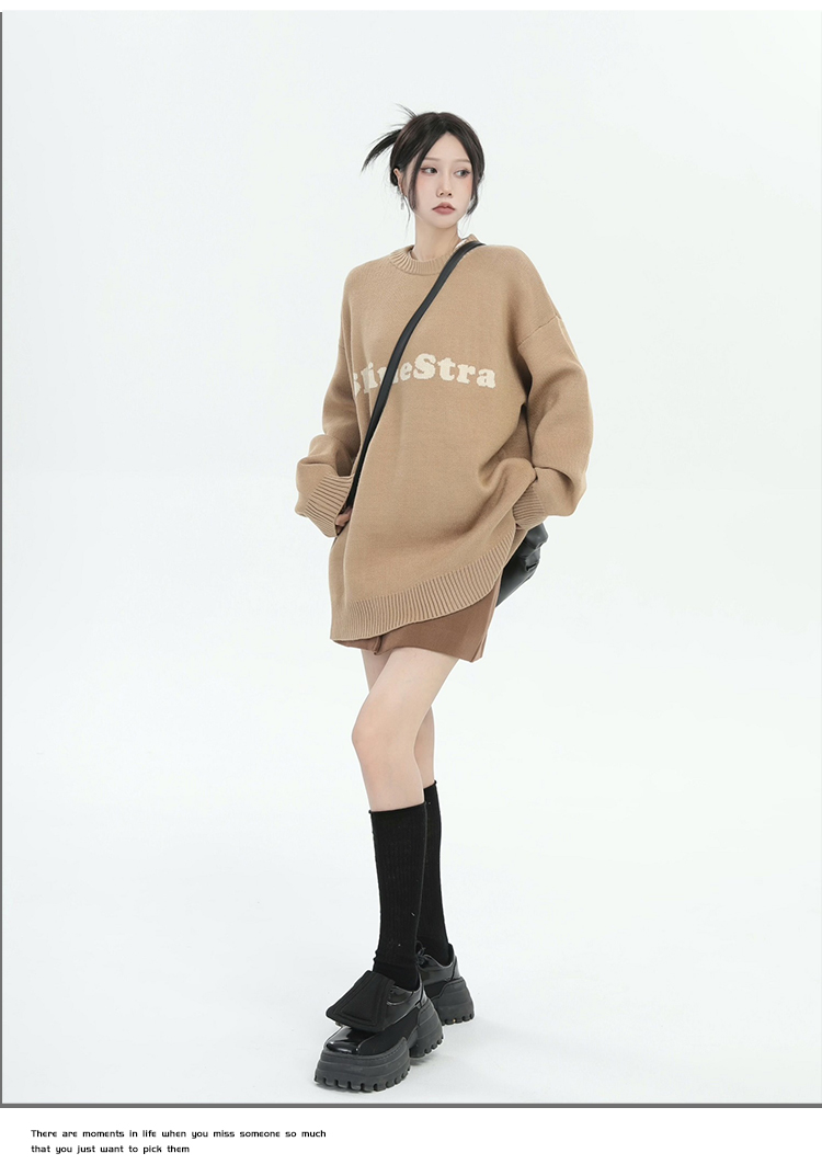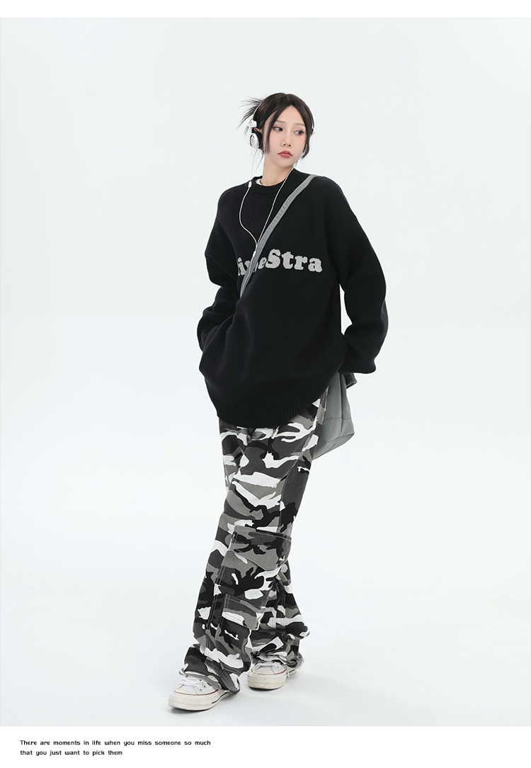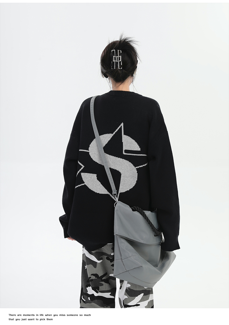 ZHL STUDIO美式復古字母刺繡圓領毛衣男女秋季街頭寬鬆針織衫上衣