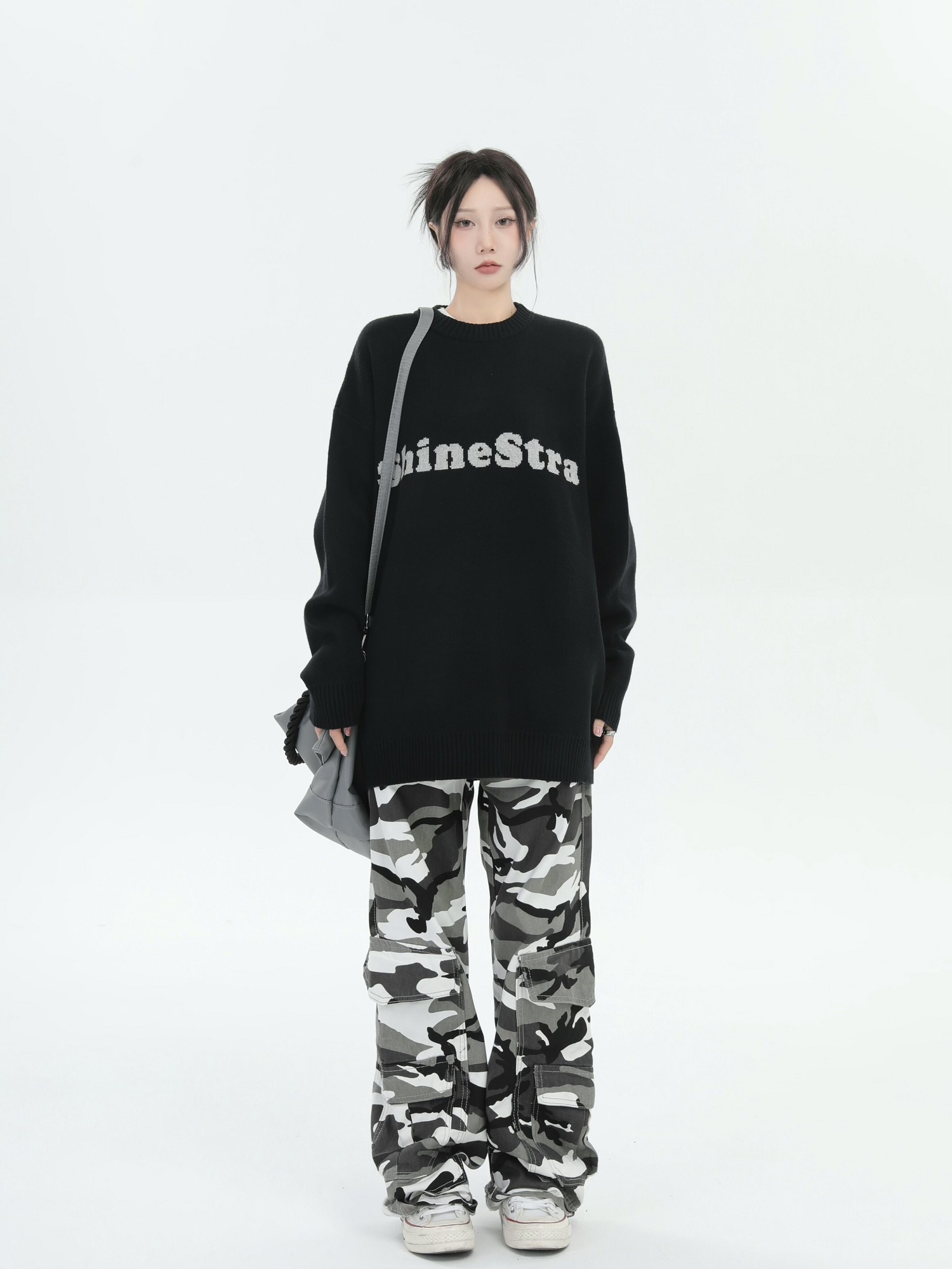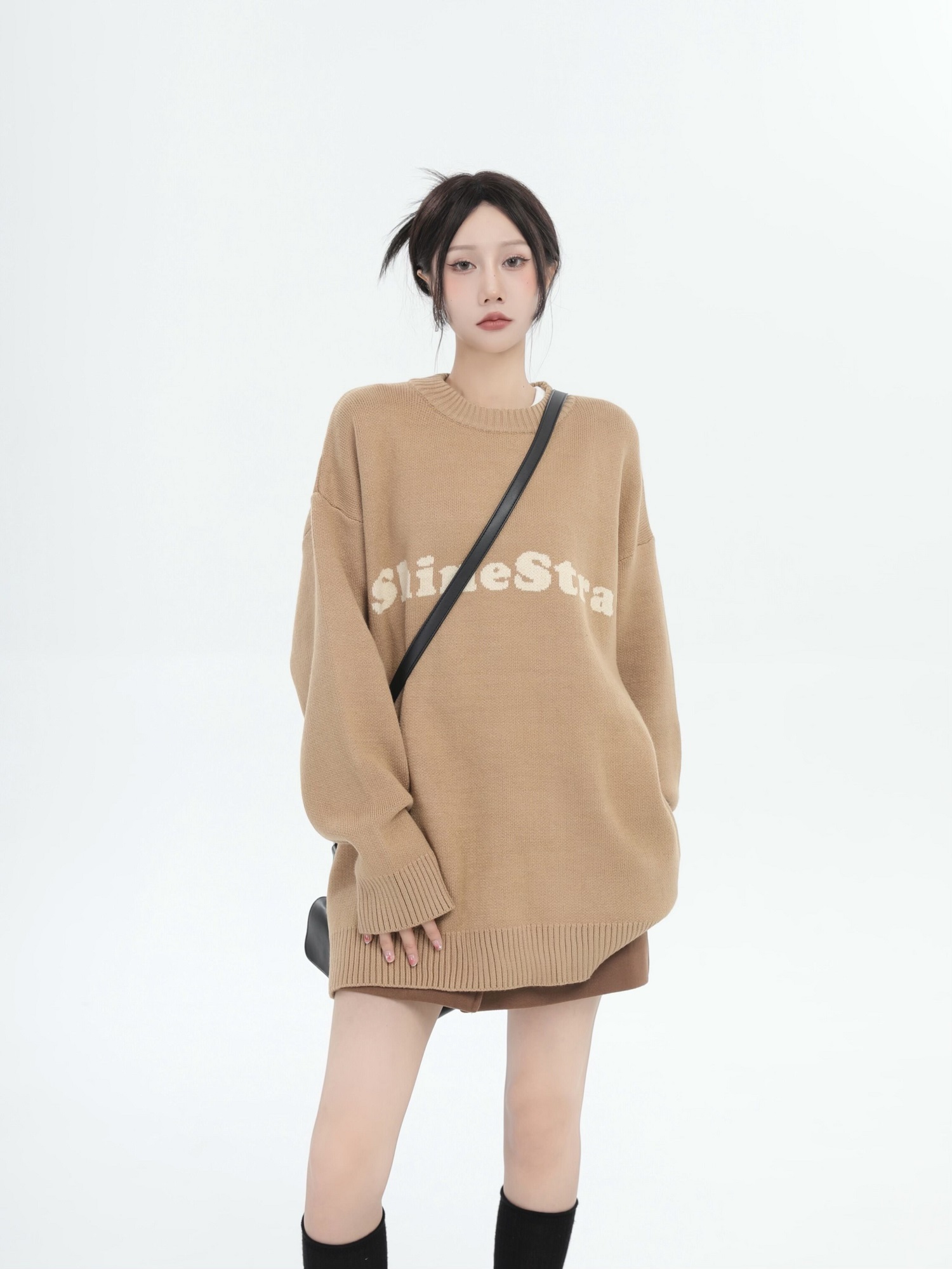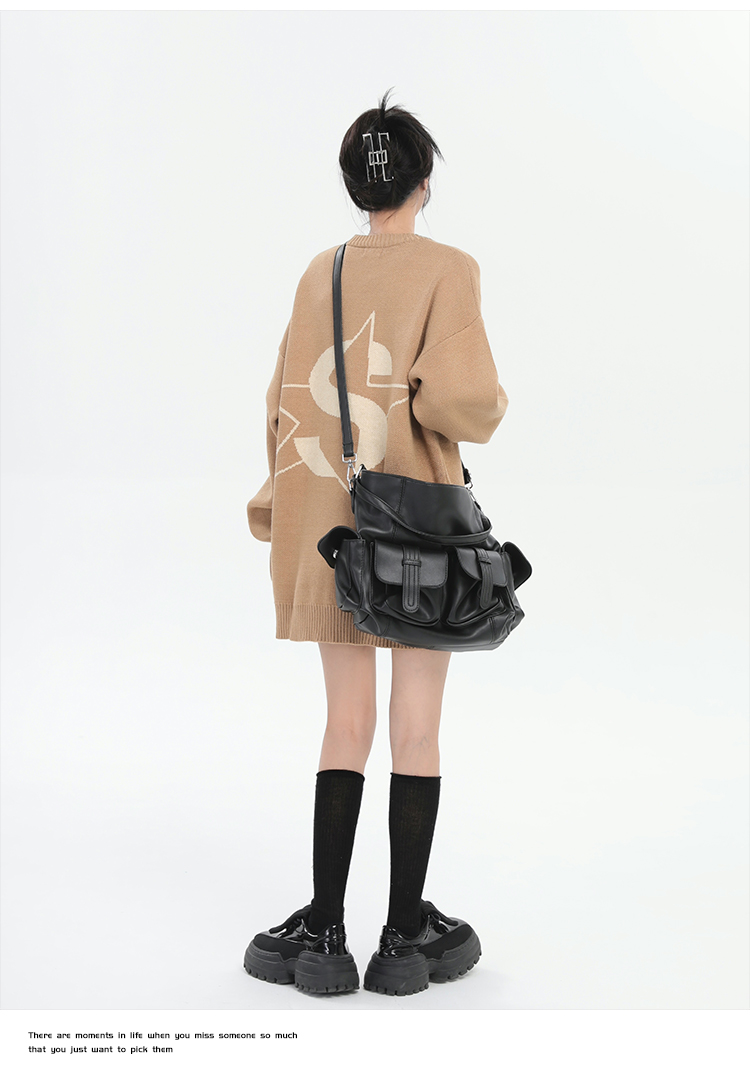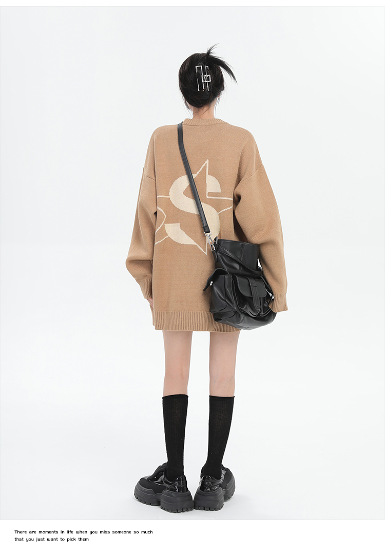 ZHL STUDIO美式復古字母刺繡圓領毛衣男女秋季街頭寬鬆針織衫上衣
